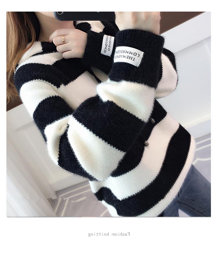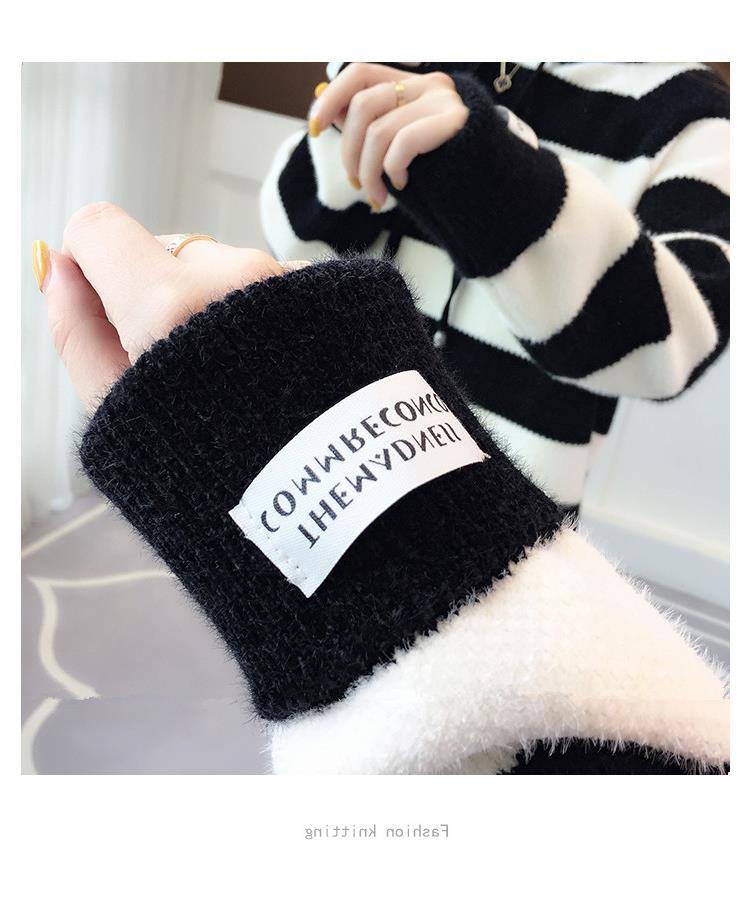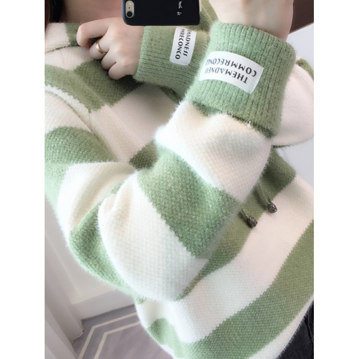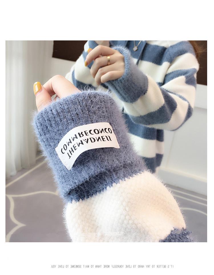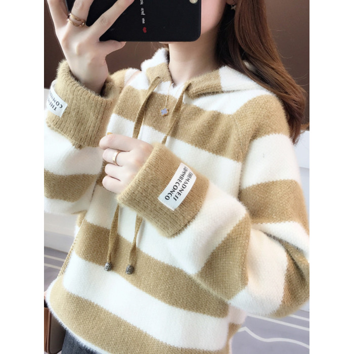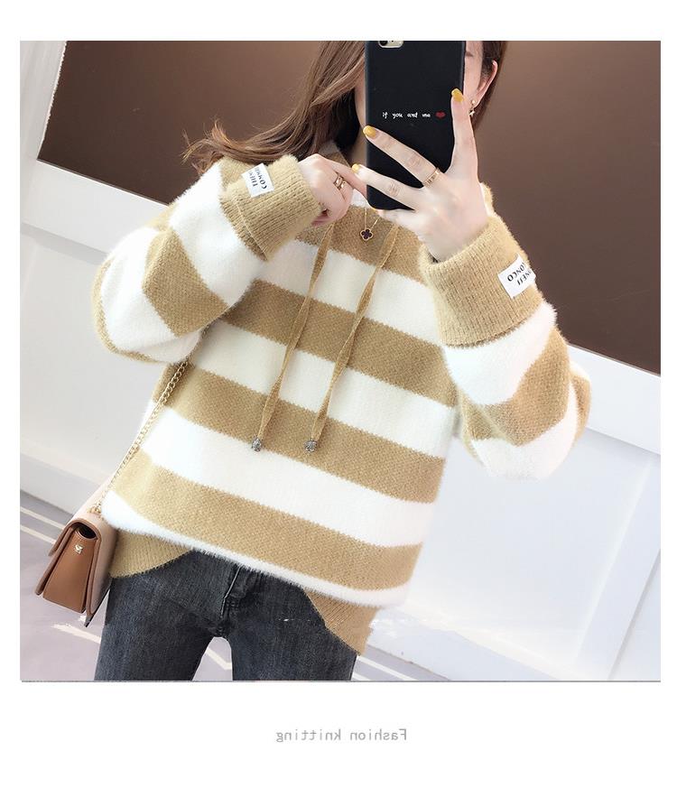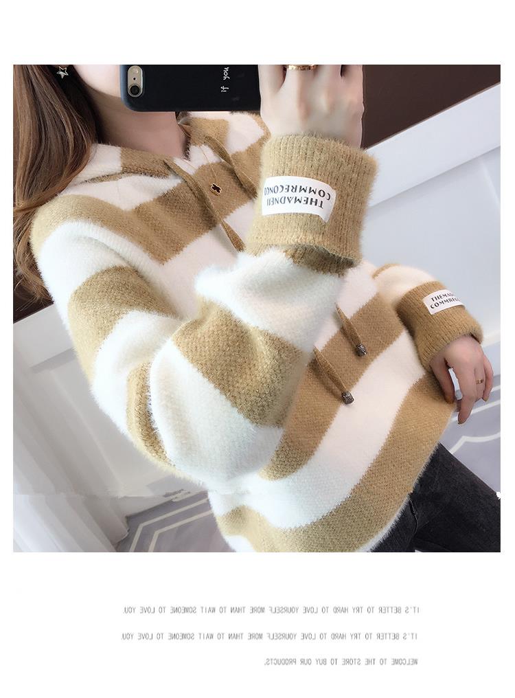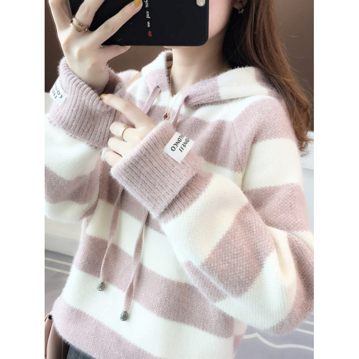 條紋連帽毛衣外套女秋冬季大童13嵗15高中11初中學生12針織打底衫