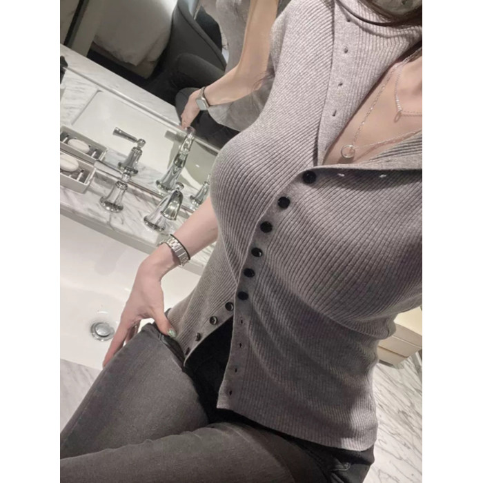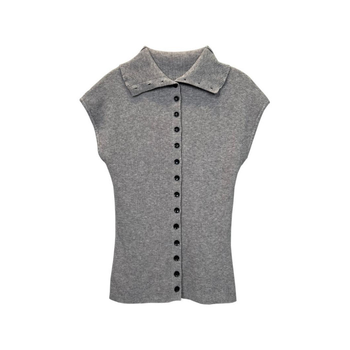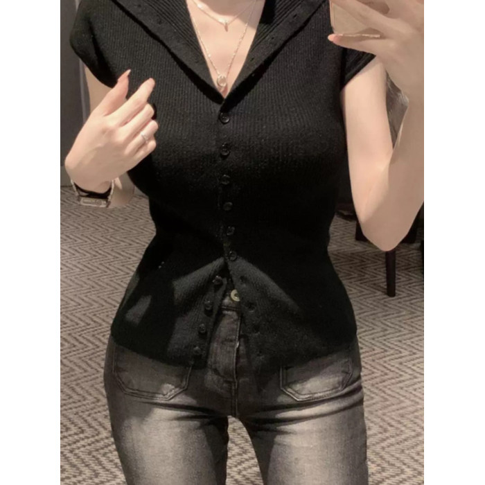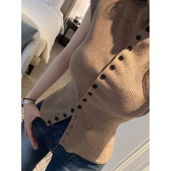 韓國新品氣質百搭顯身材女人味高領單排釦無袖針織背心打底衫上衣