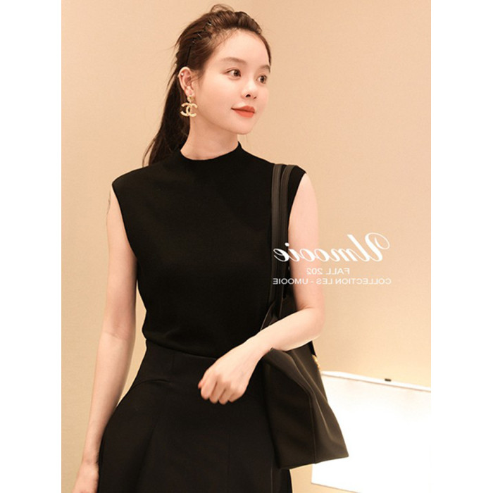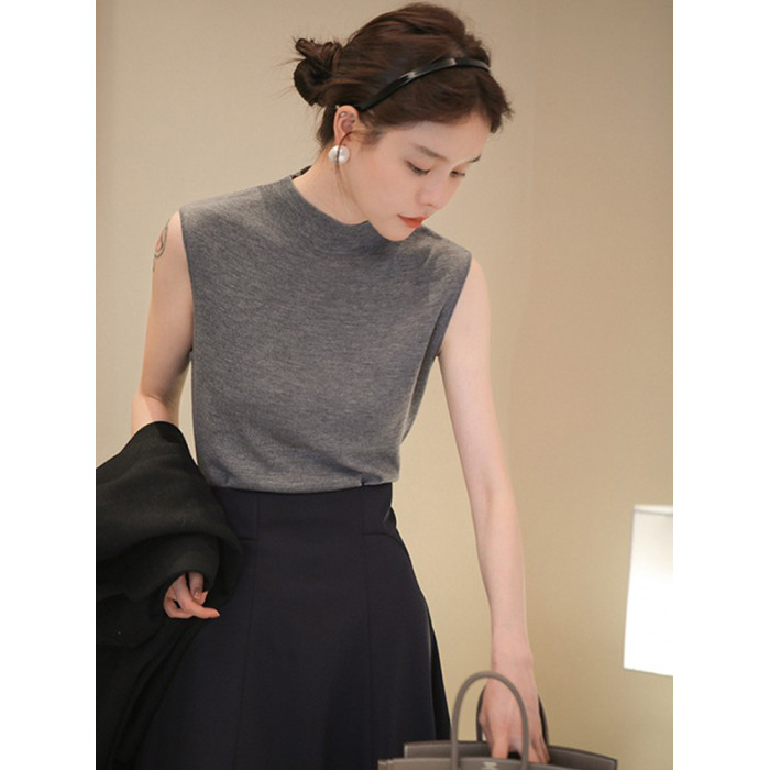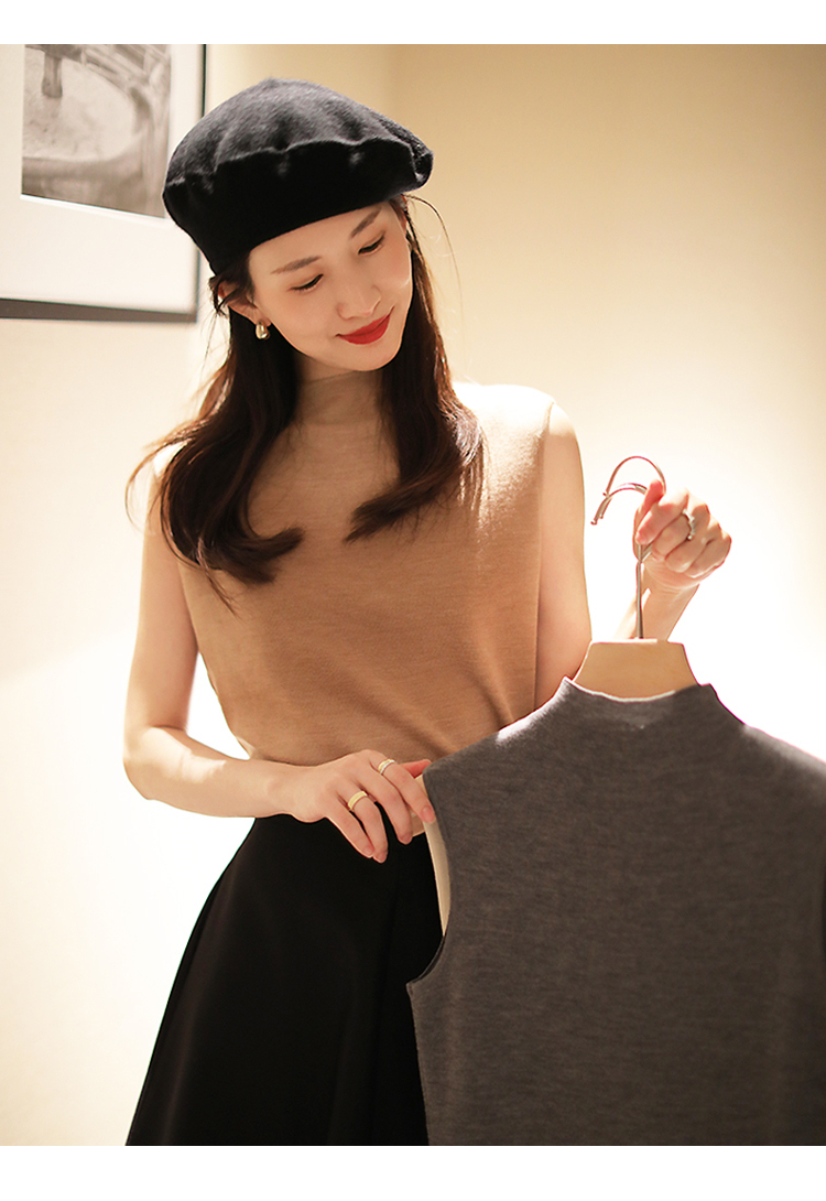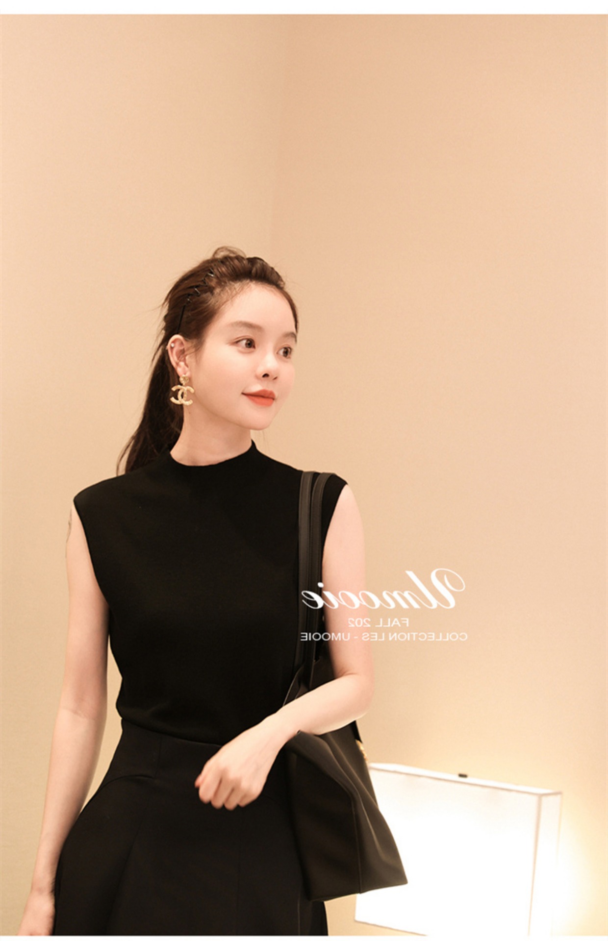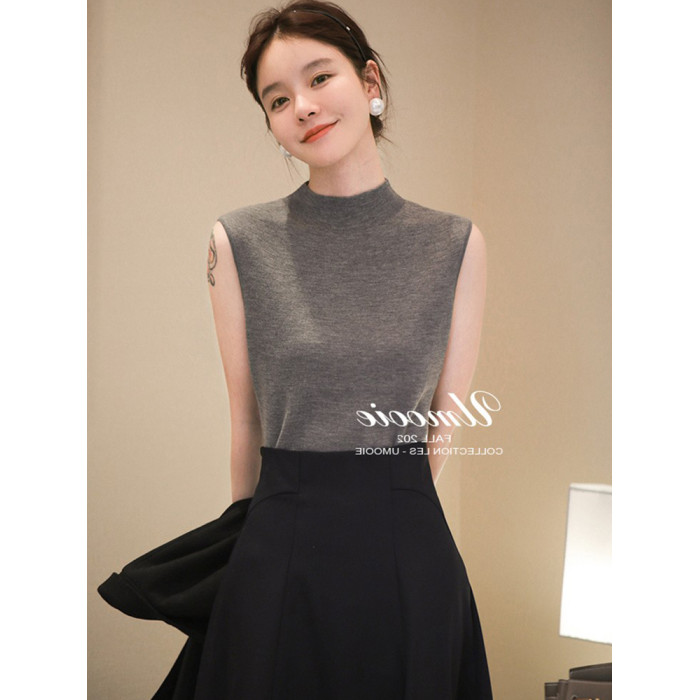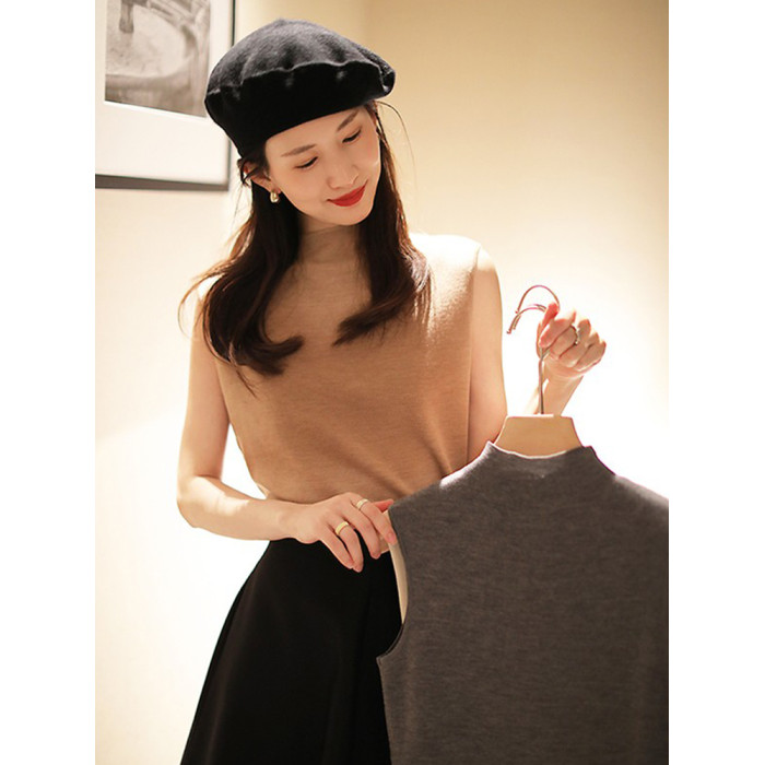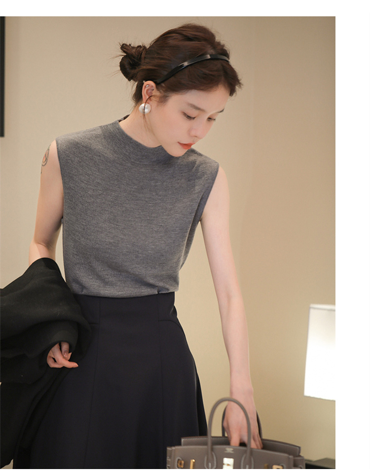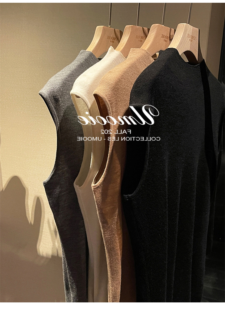 法式小香顯瘦敭子紗純羊毛背心女氣質百搭針織打底衫無袖內搭上衣