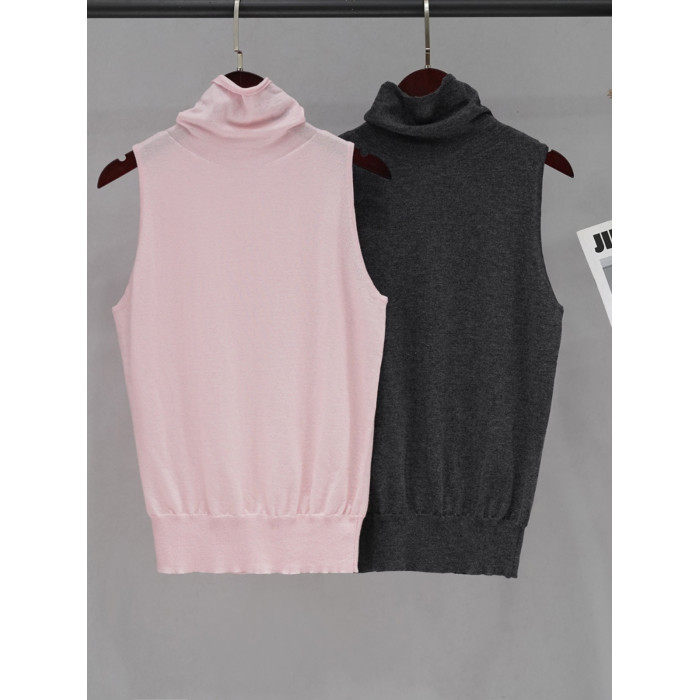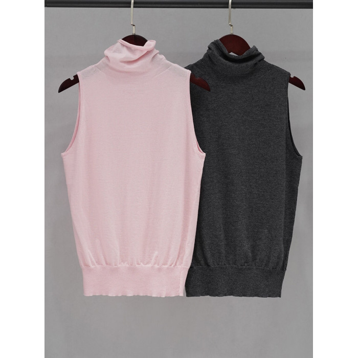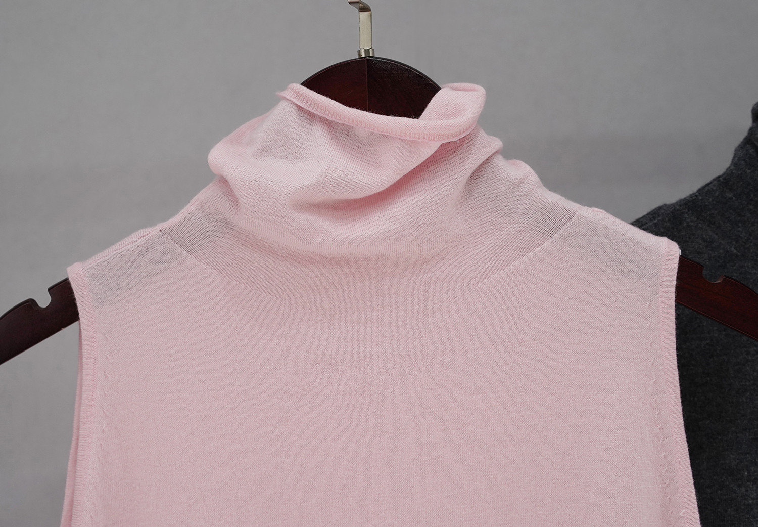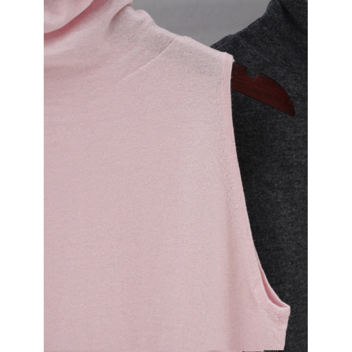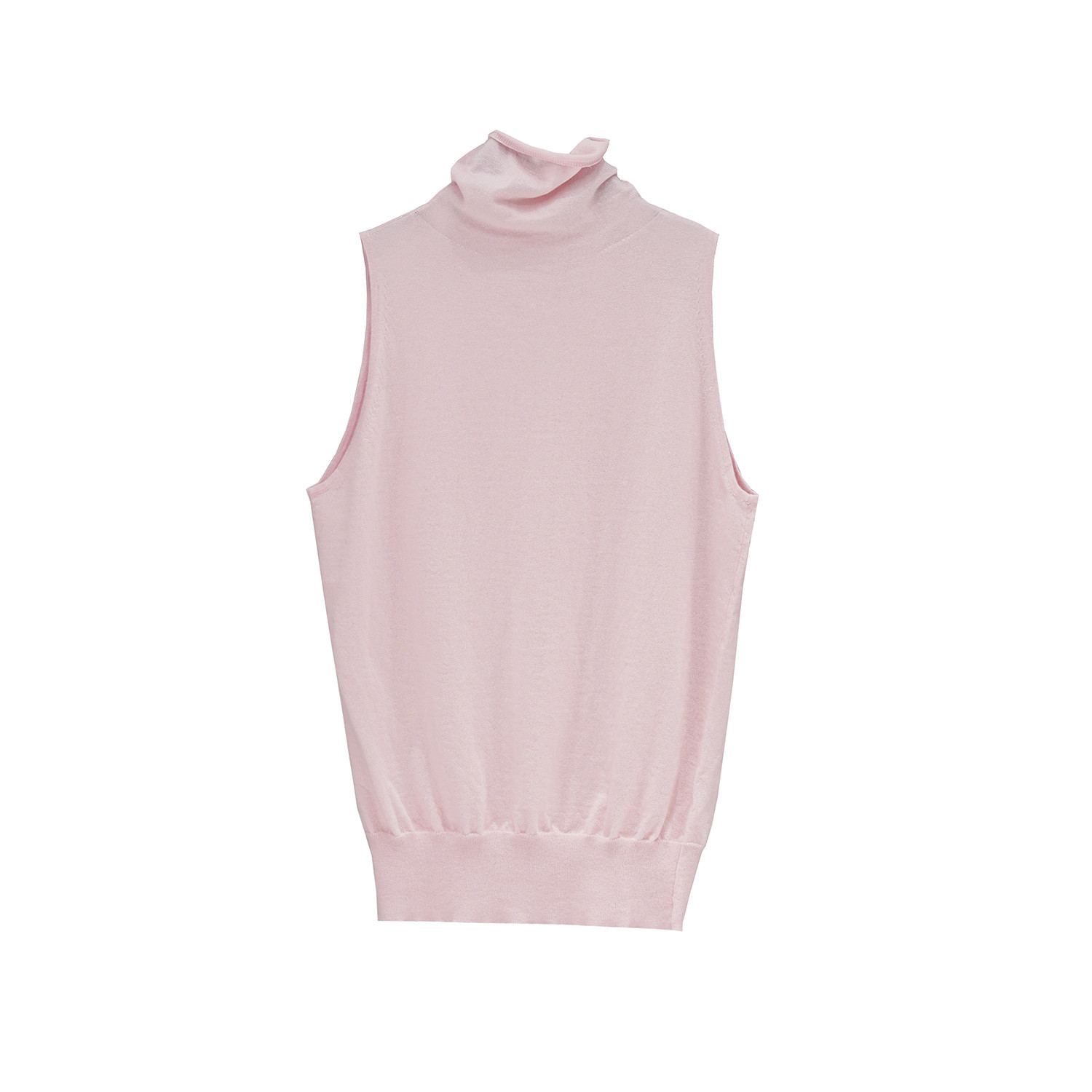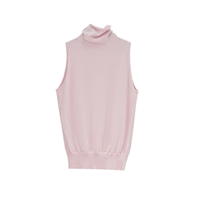 SHEJIA ED高領無袖羊毛衫粉色針織背心24秋新款毛織上衣打底衫