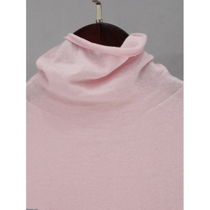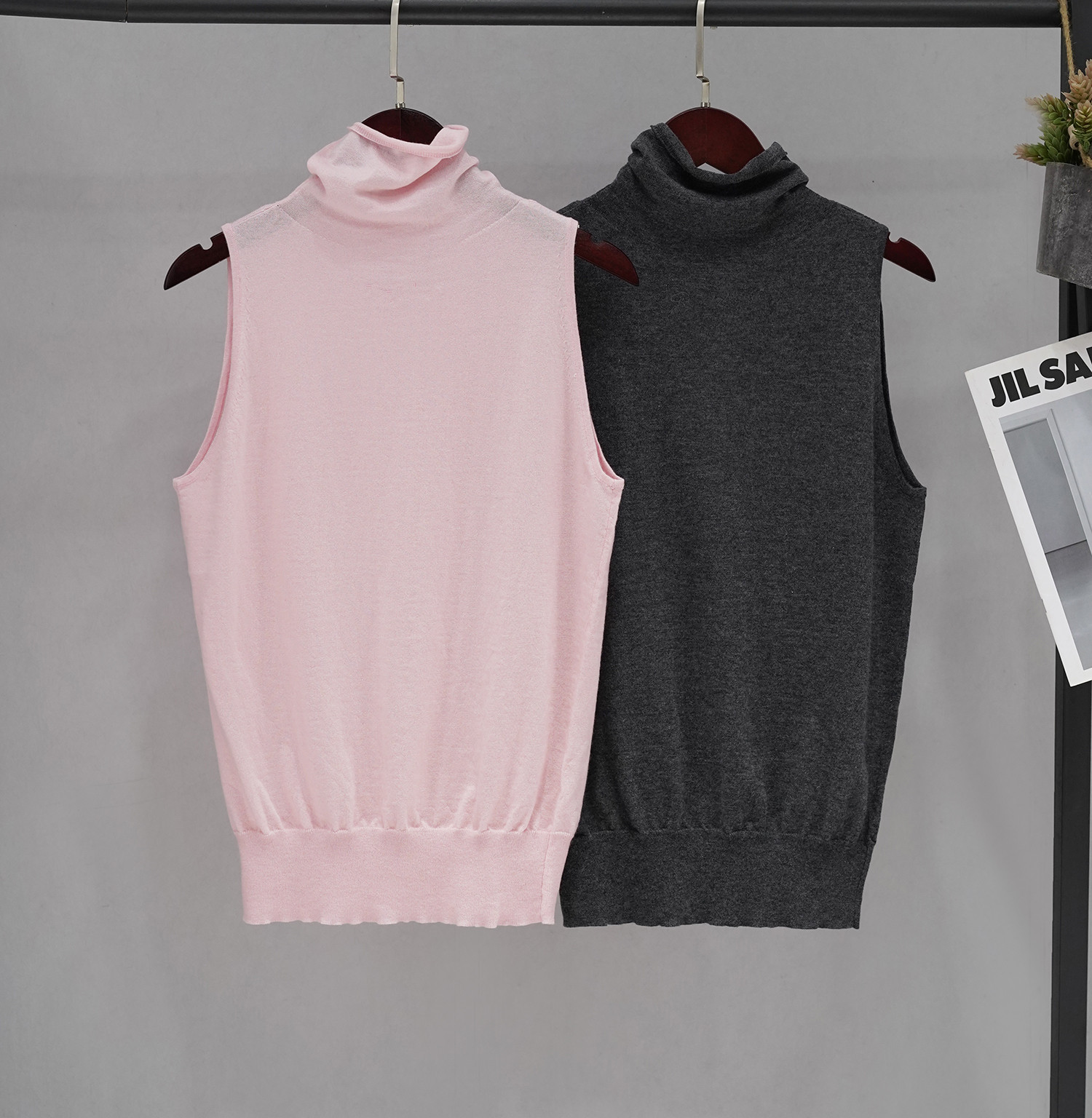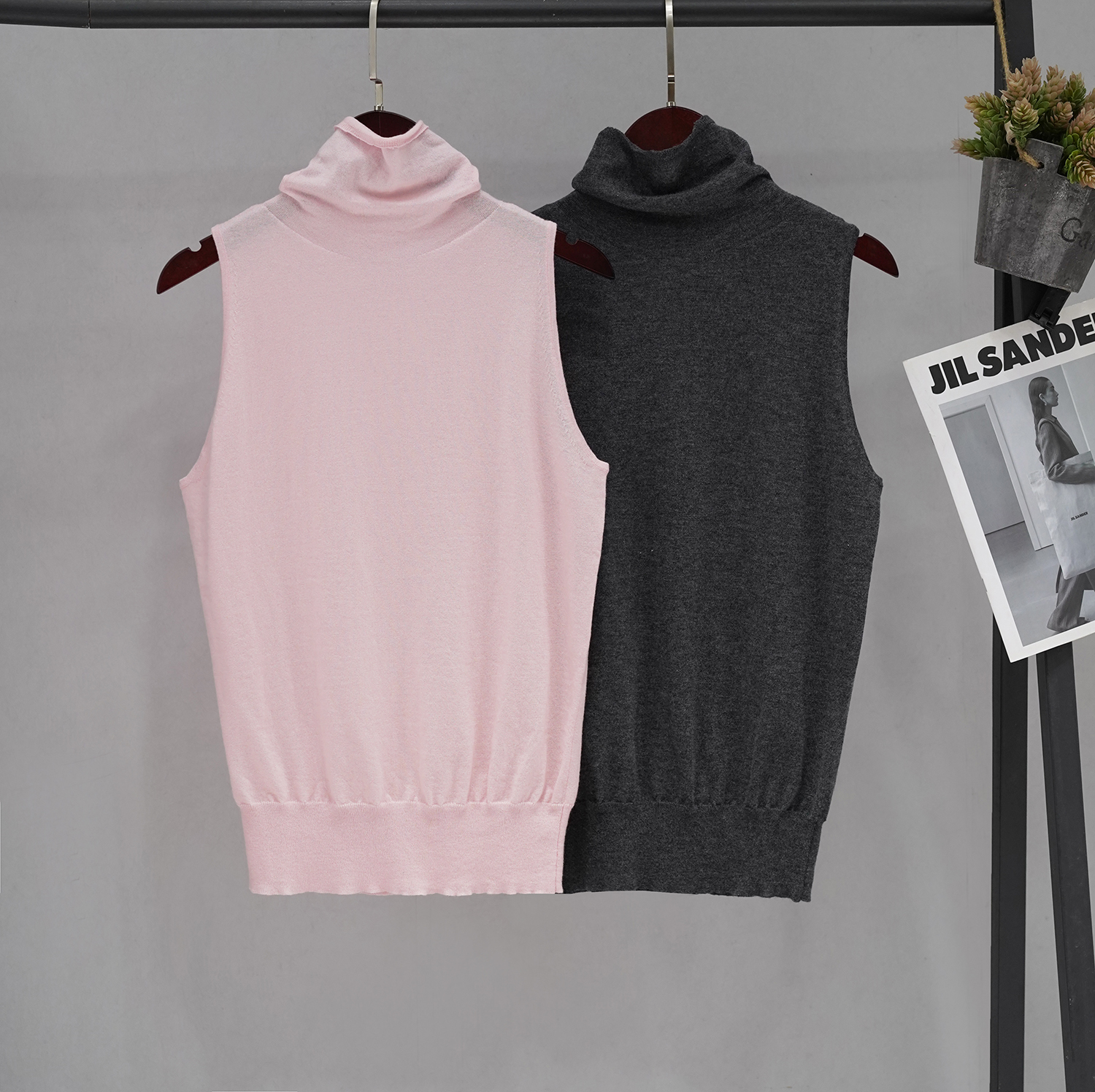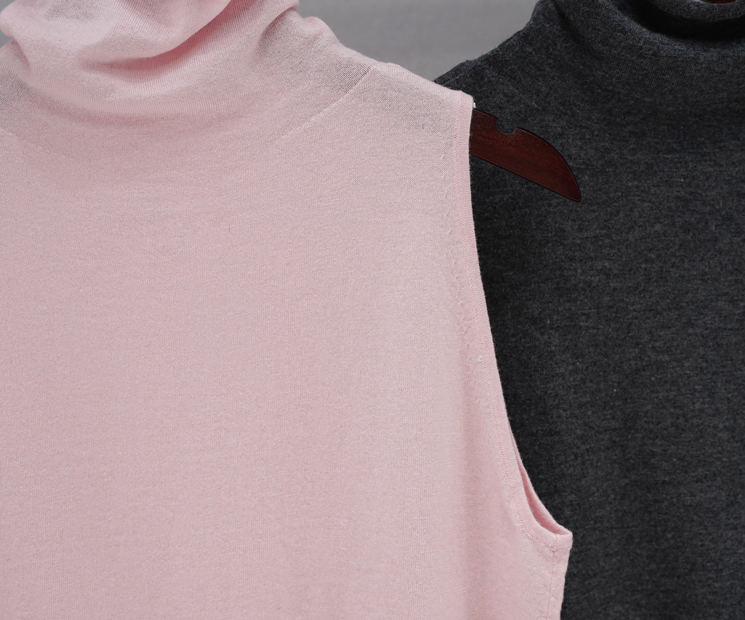 SHEJIA ED高領無袖羊毛衫粉色針織背心24秋新款毛織上衣打底衫