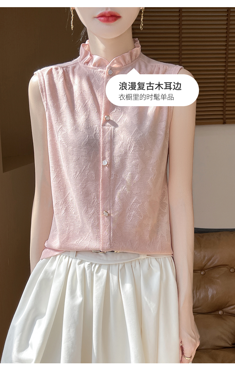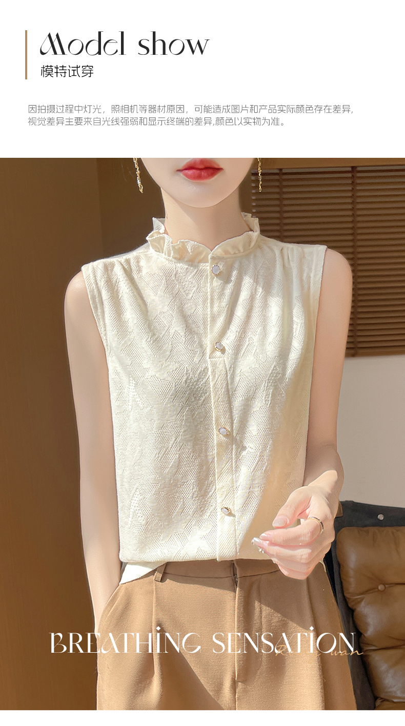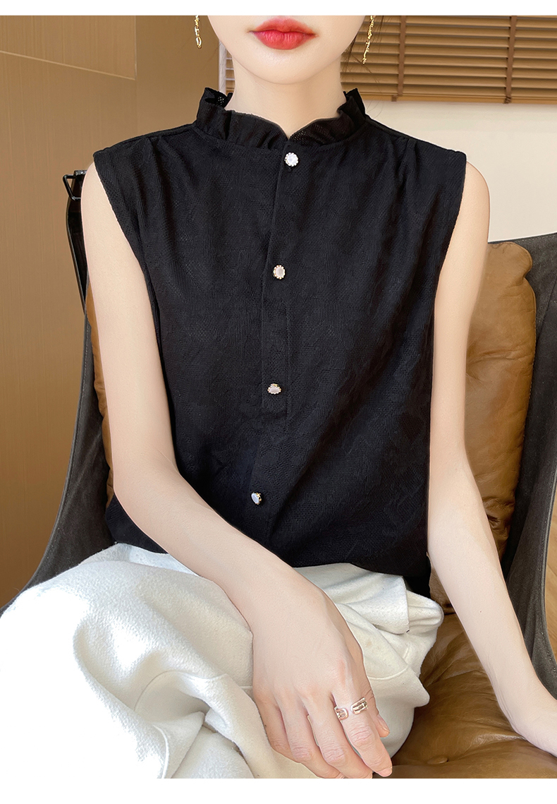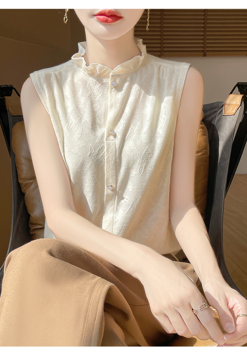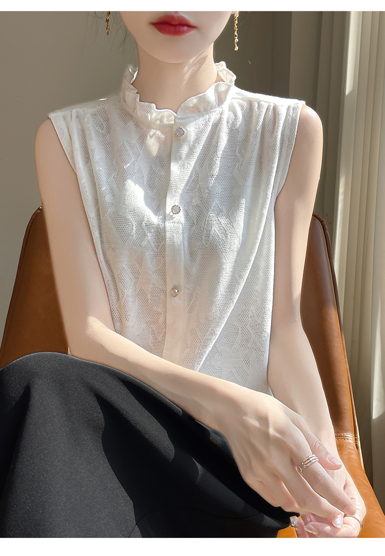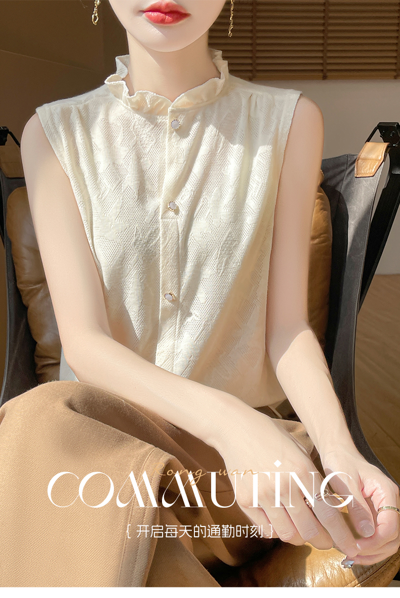 法式無袖夏季新款木耳邊打底衫女寬松春秋內搭荷葉領高級感背心