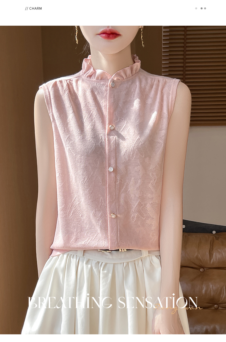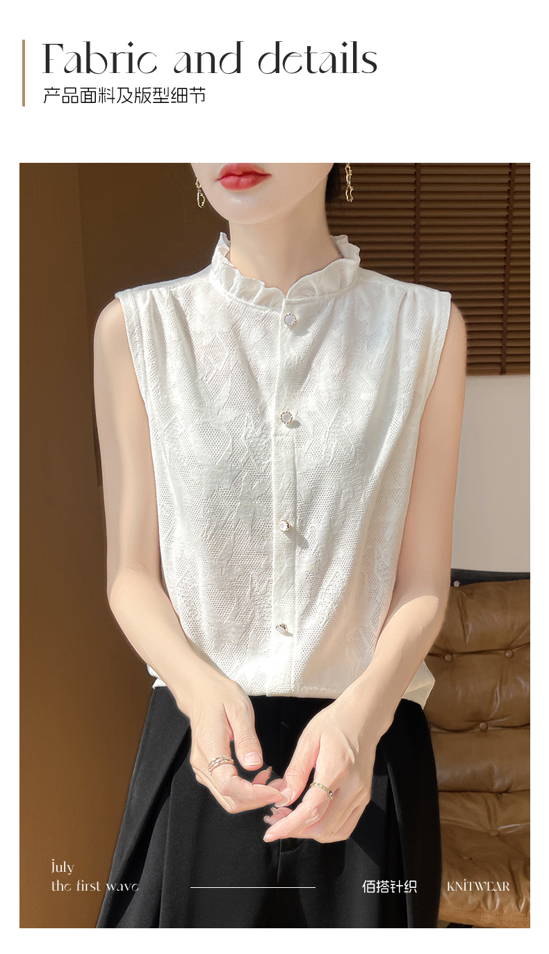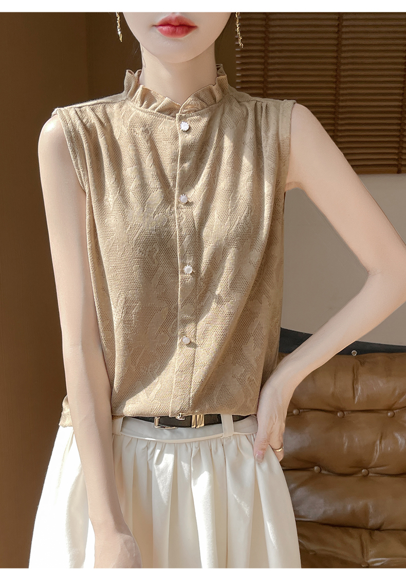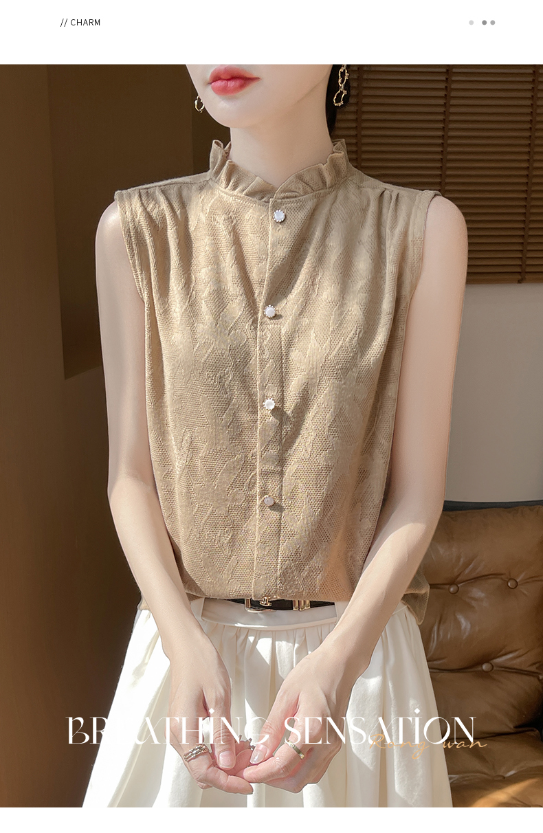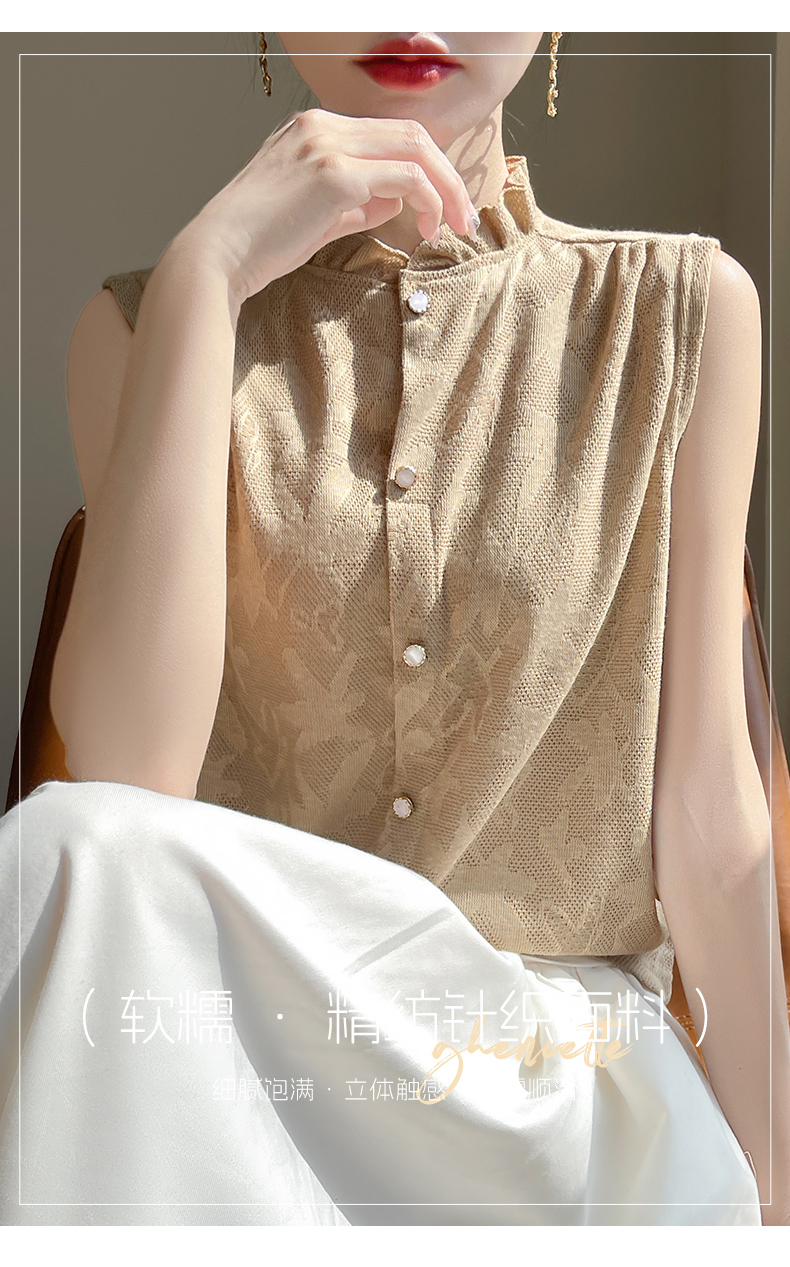 法式無袖夏季新款木耳邊打底衫女寬松春秋內搭荷葉領高級感背心
