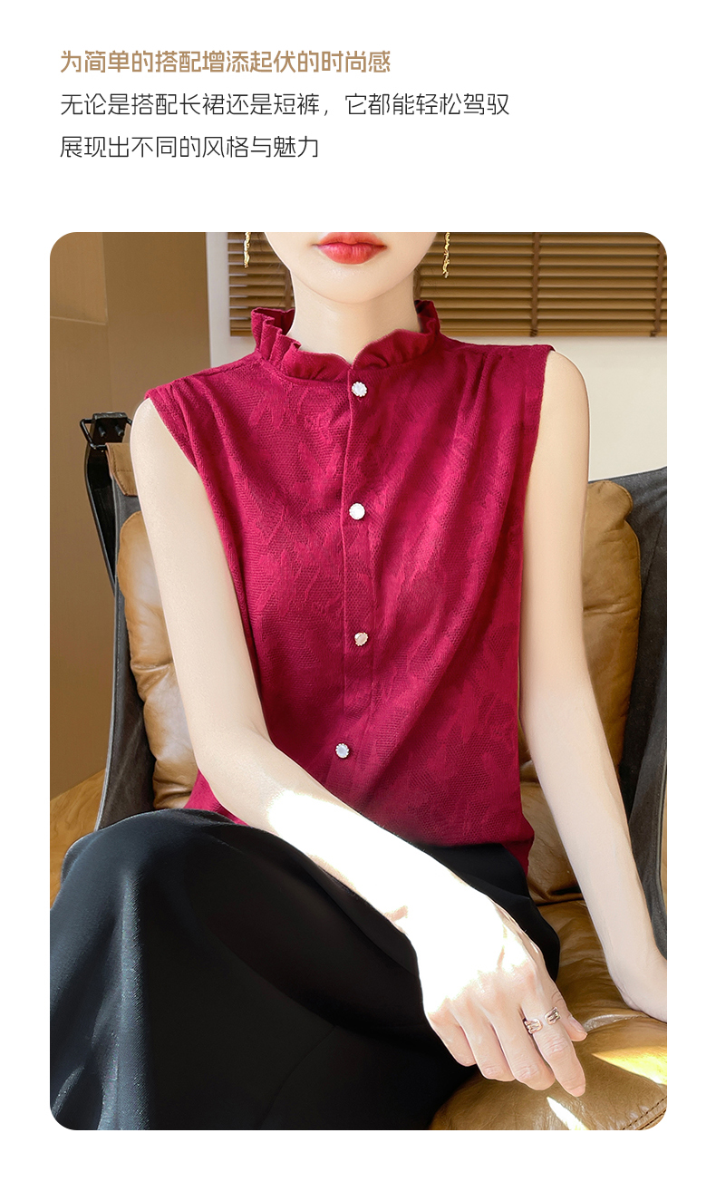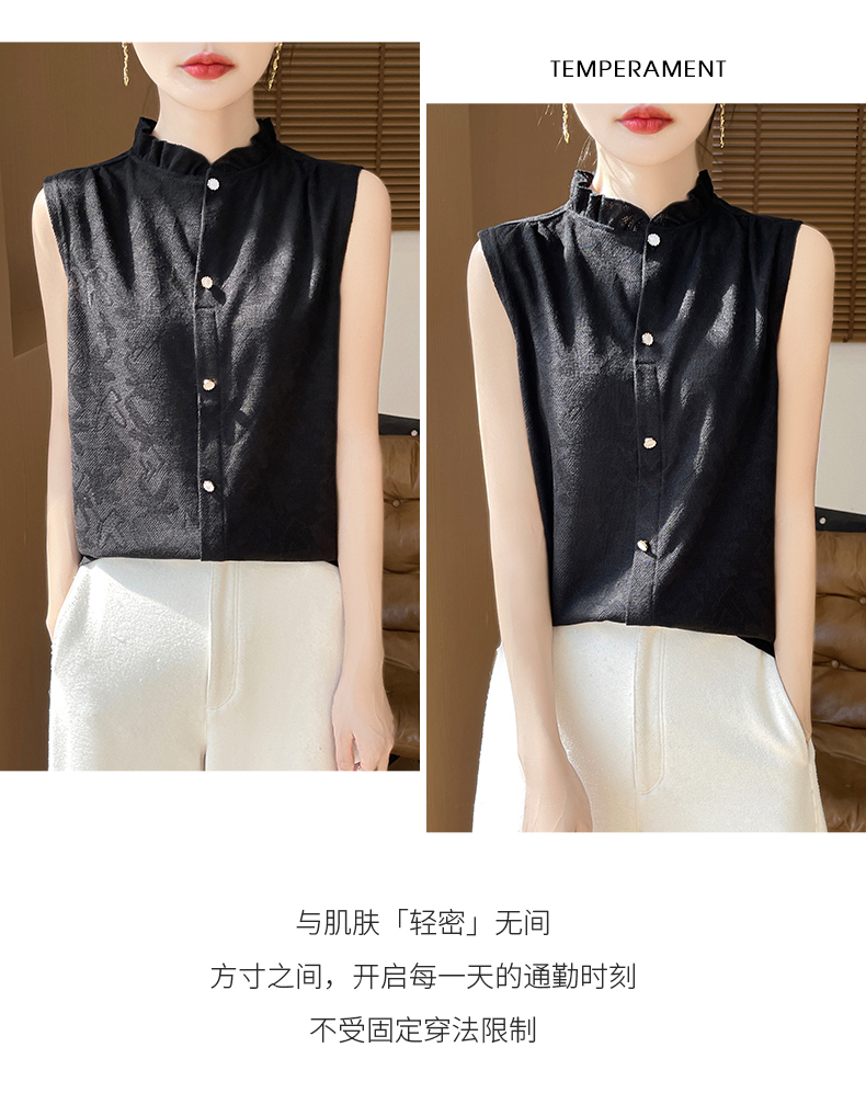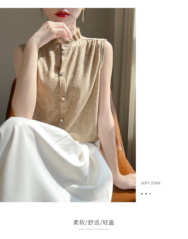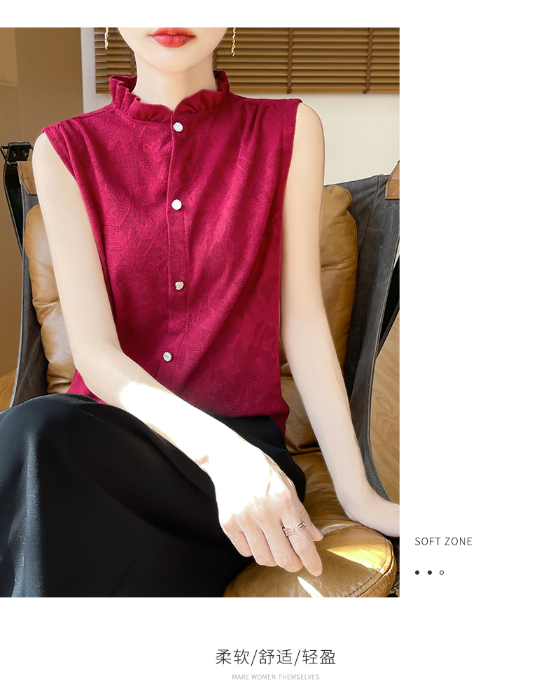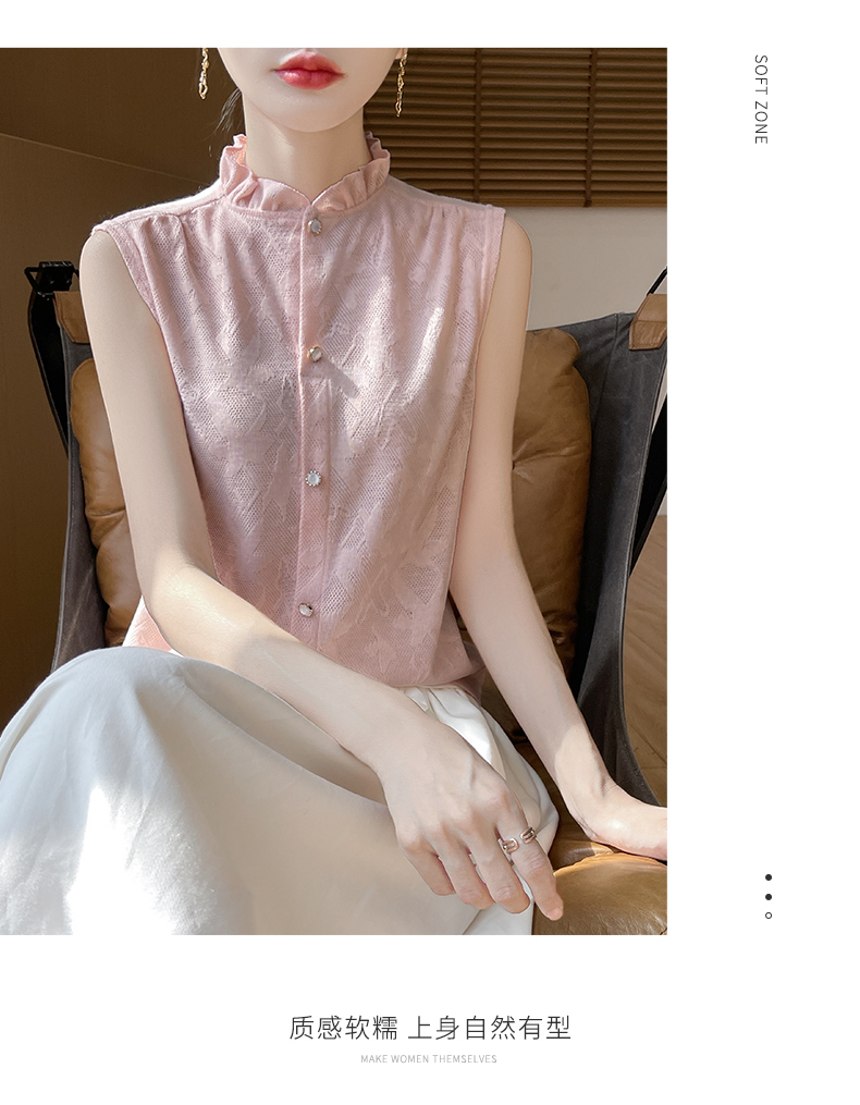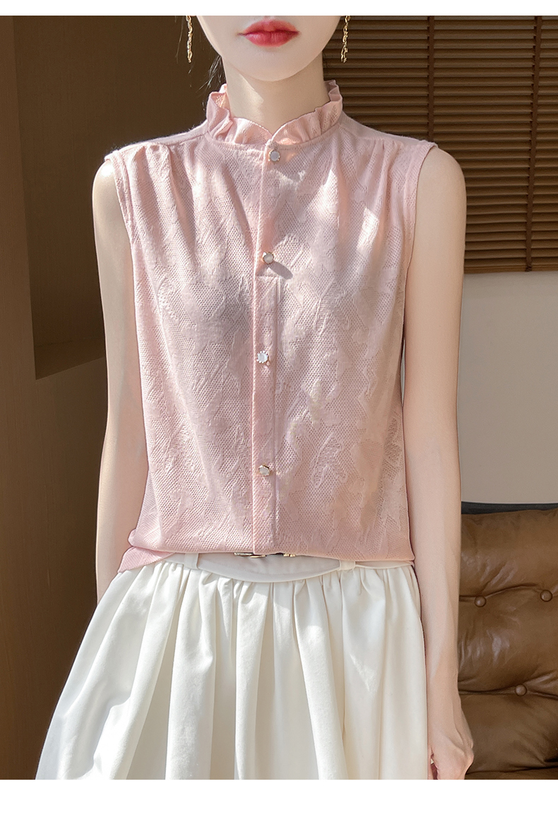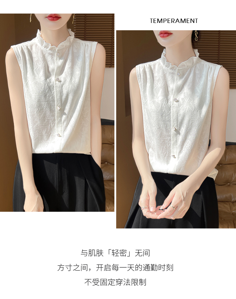 法式無袖夏季新款木耳邊打底衫女寬松春秋內搭荷葉領高級感背心