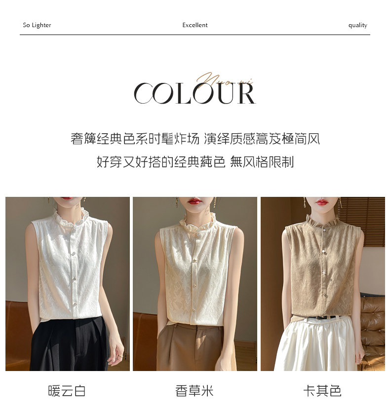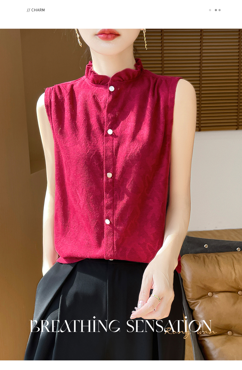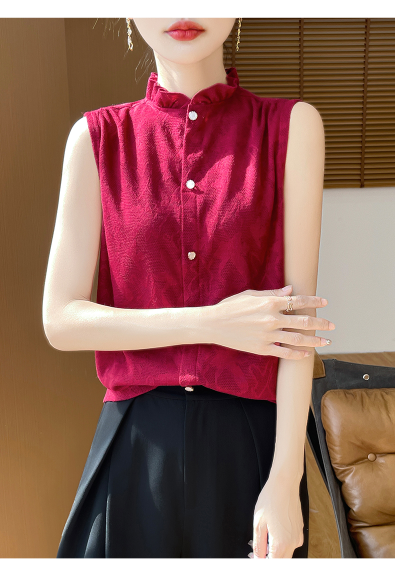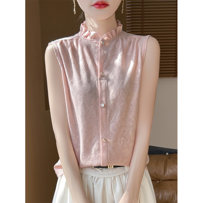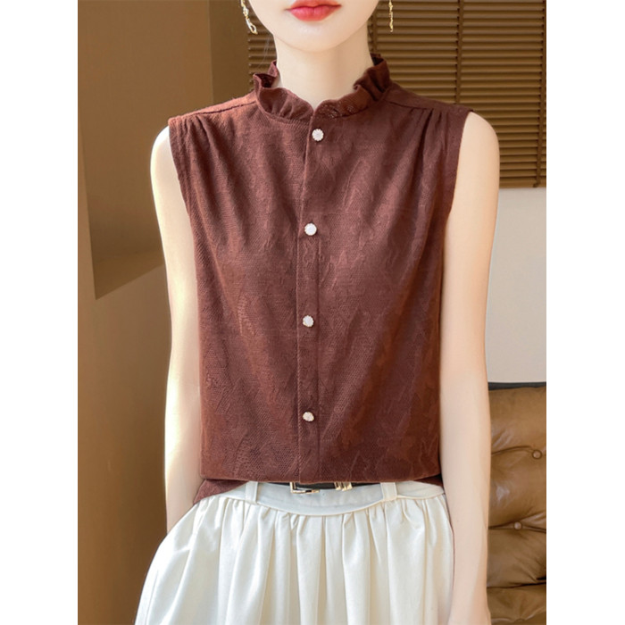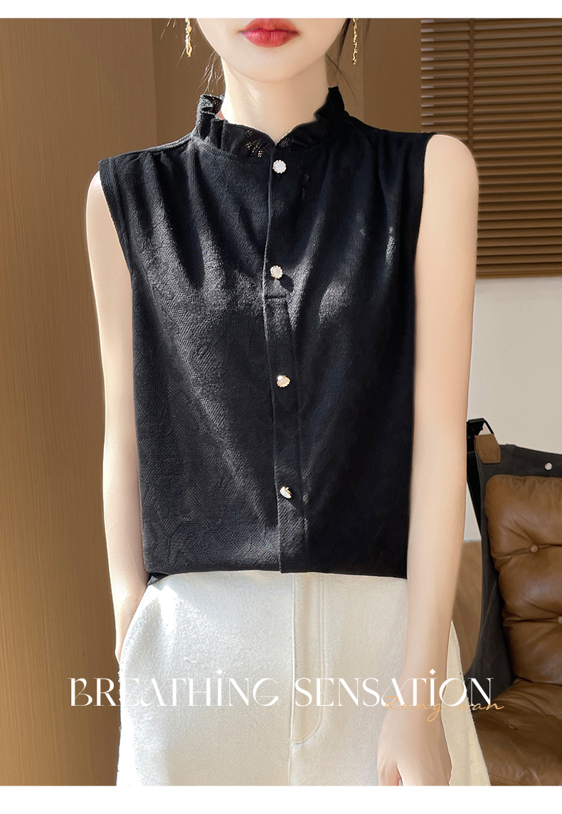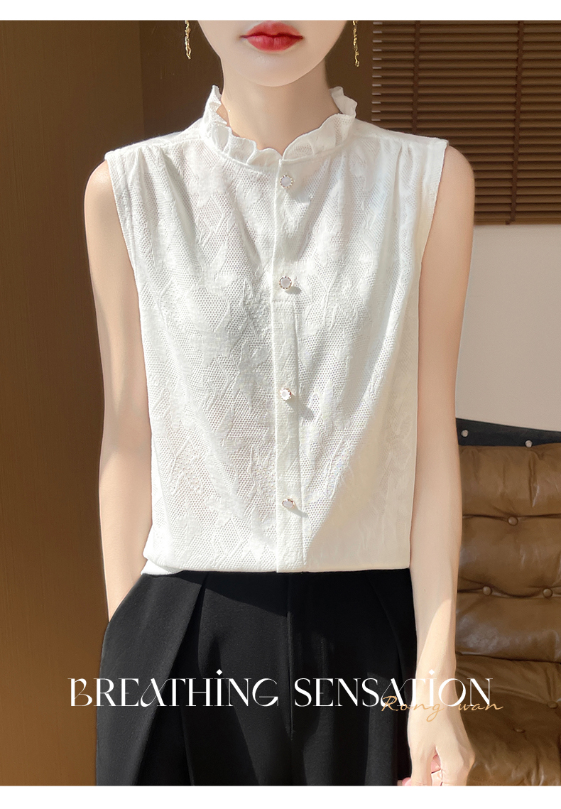 法式無袖夏季新款木耳邊打底衫女寬松春秋內搭荷葉領高級感背心