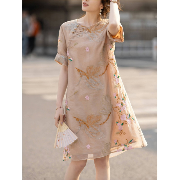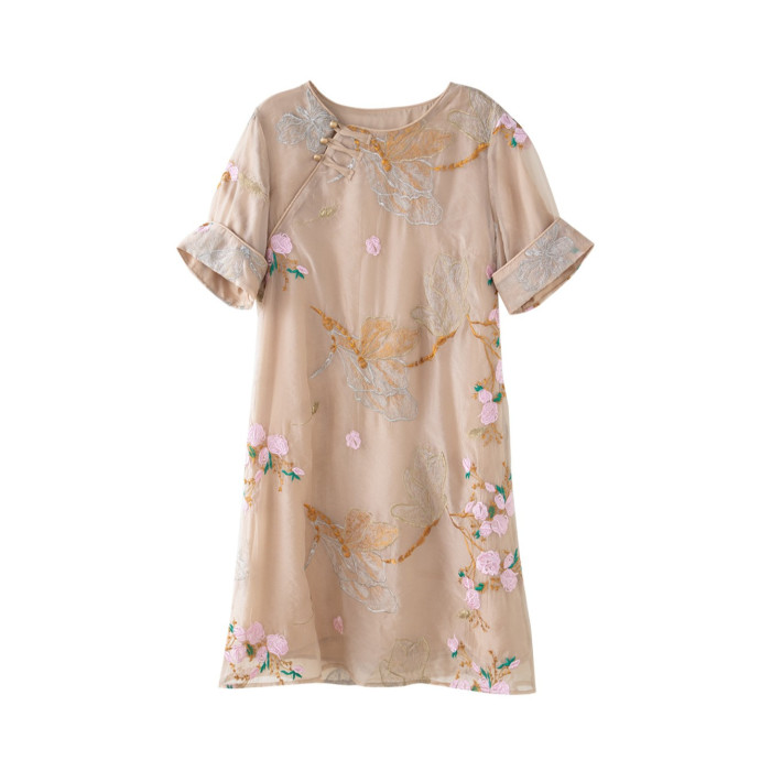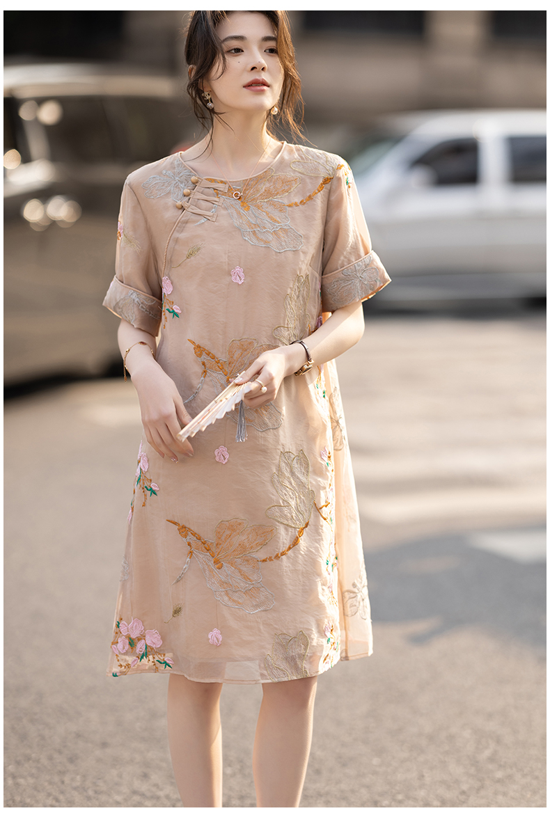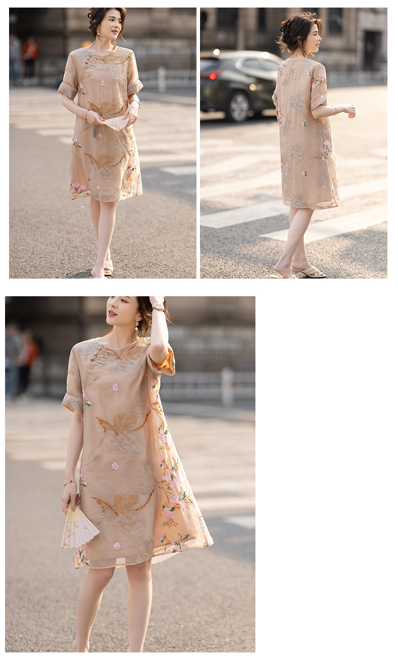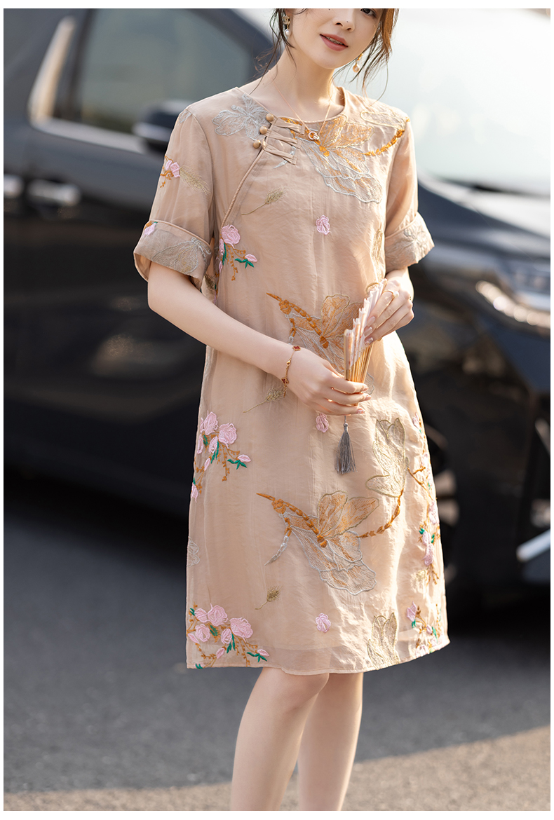 九月陌墨新中式重工刺綉短袖連衣裙2025夏裝新款國風優雅氣質裙子