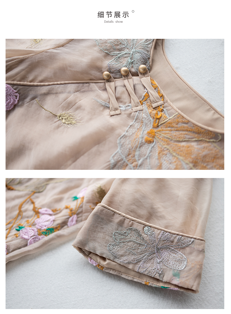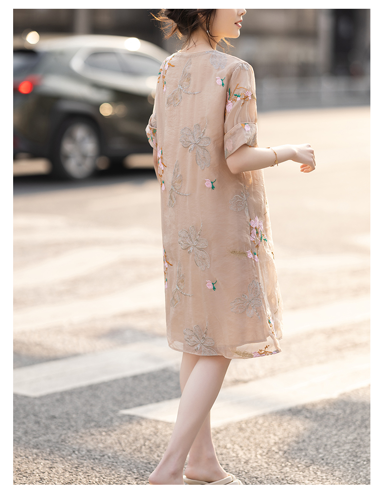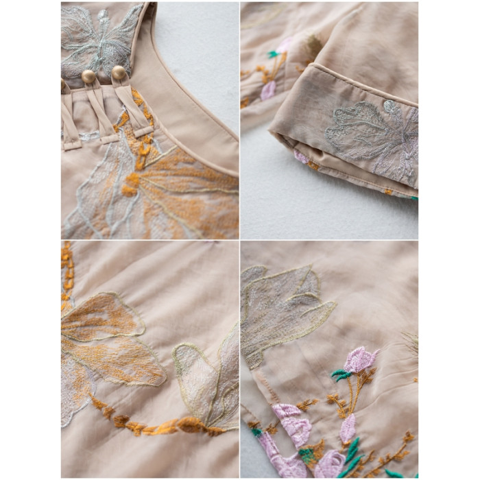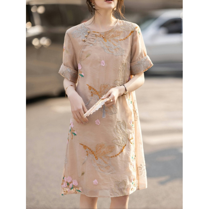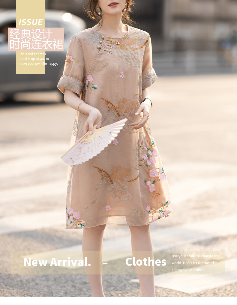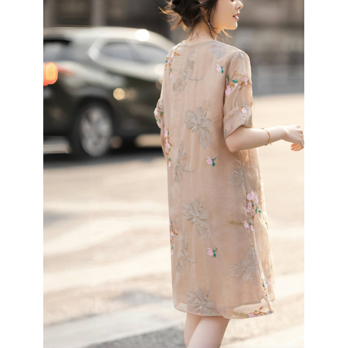 九月陌墨新中式重工刺綉短袖連衣裙2025夏裝新款國風優雅氣質裙子