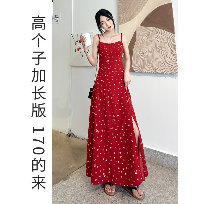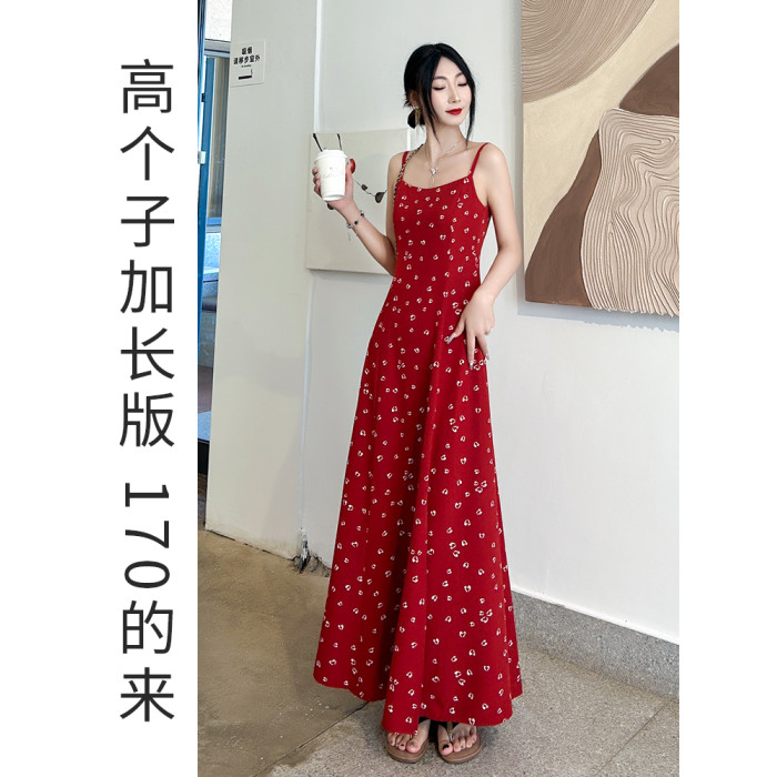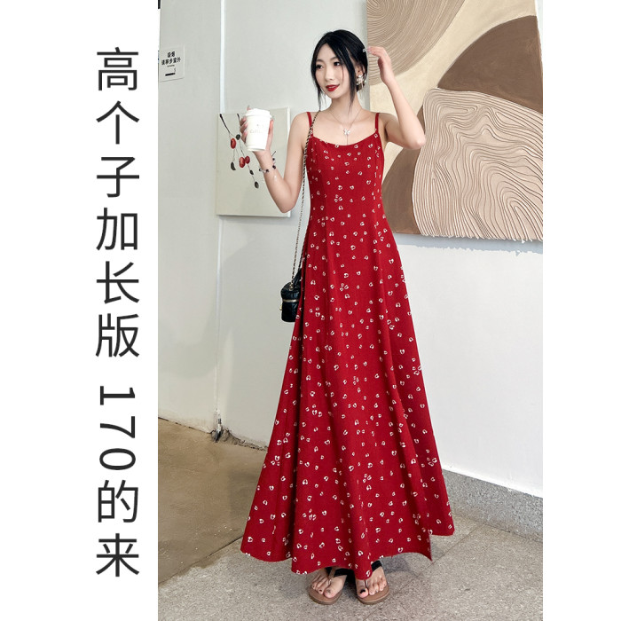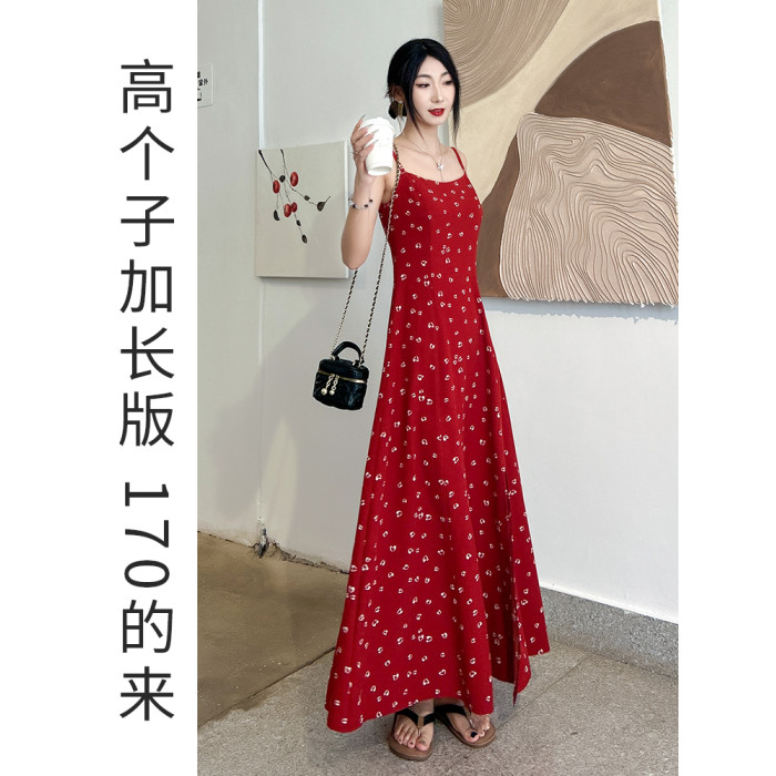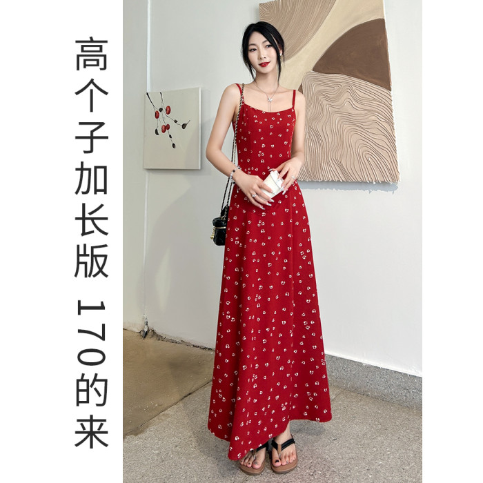 高個子175法式紅色吊帶波點連衣裙輕奢高級感長款收腰小衆不撞款