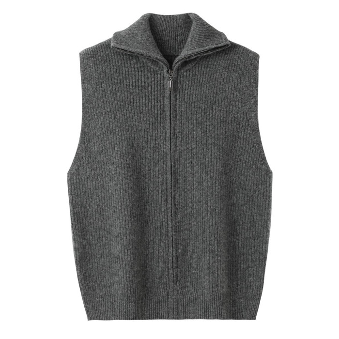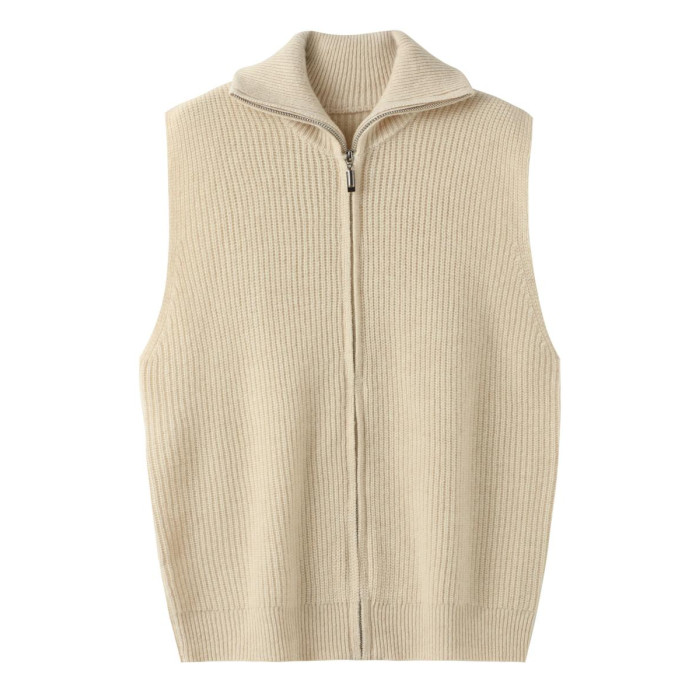 秋冬保暖寬松羊絨馬甲女新款無袖純色抽條高領拉鍊羊毛針織打底衫