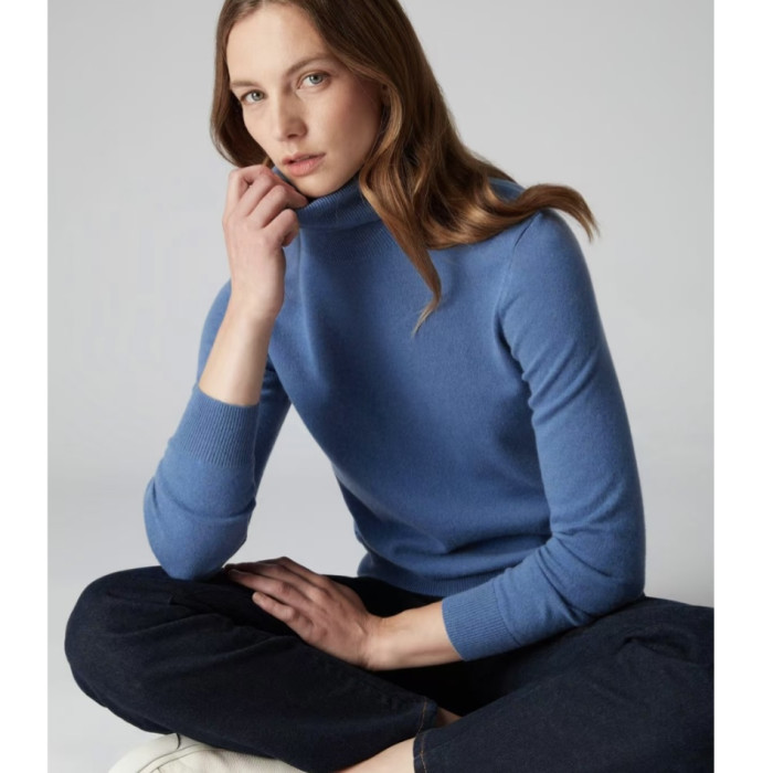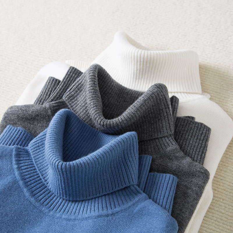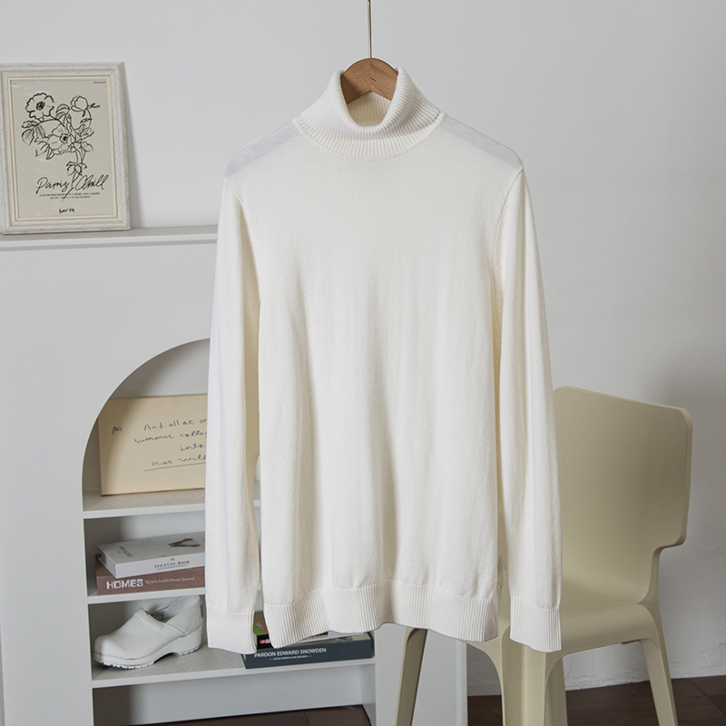 100%綿羊毛!純色翻領長袖羊毛針織衫女高領羊絨衫秋冬內搭打底衫