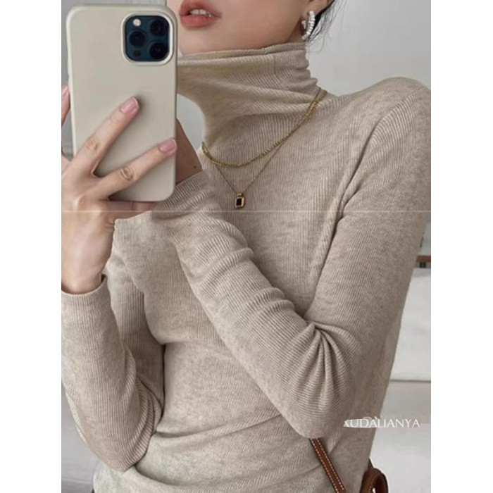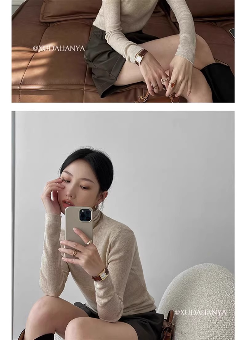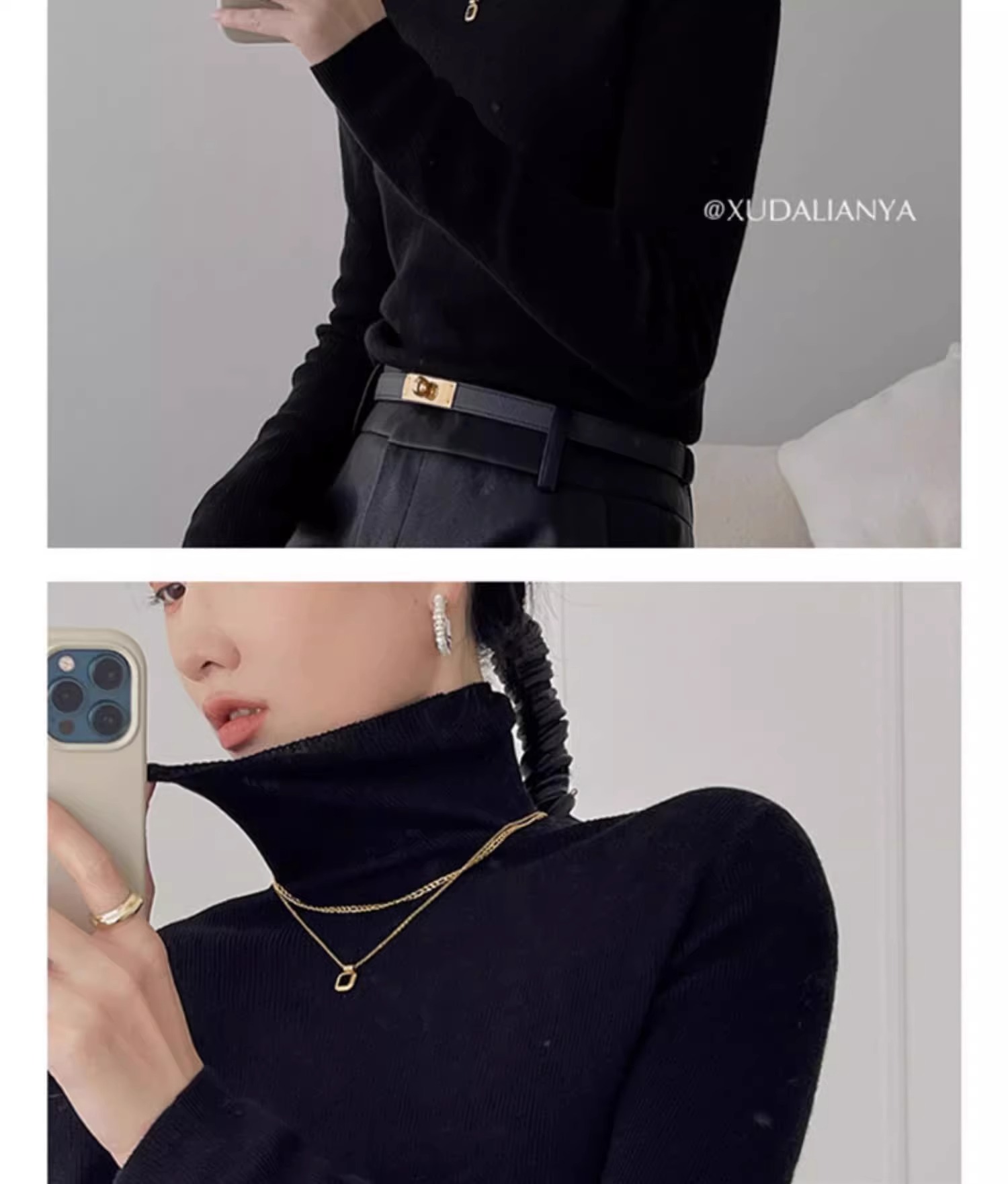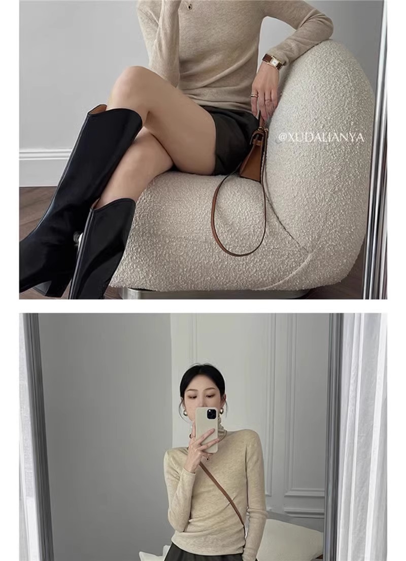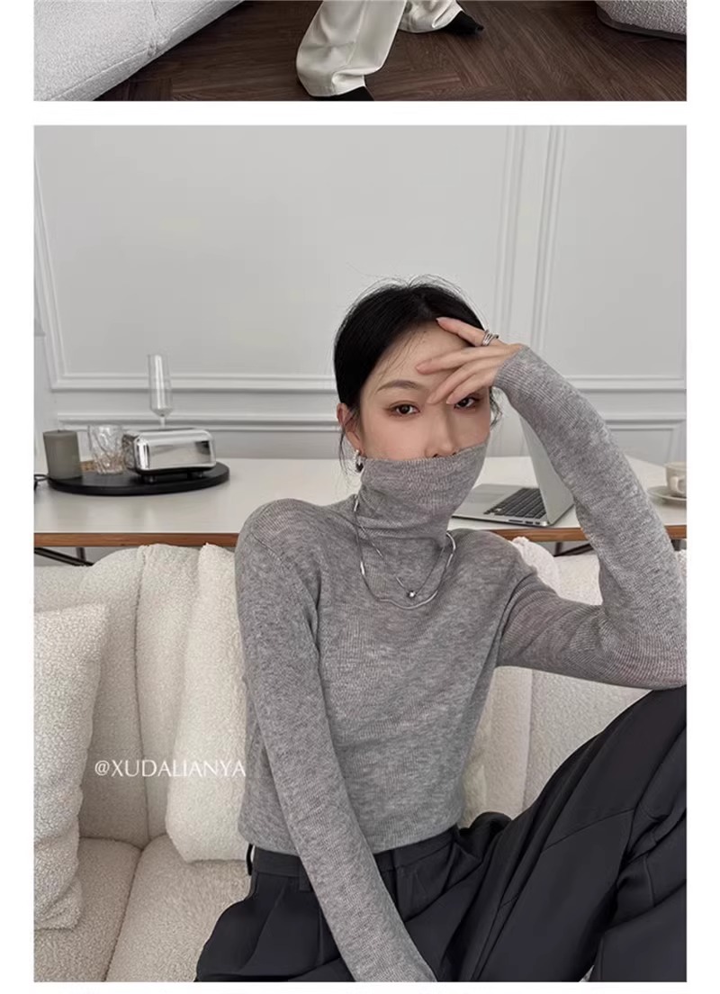 美麗諾精紡羊毛針織高領內搭打底衫女秋冬薄款修身顯瘦堆堆領毛衣