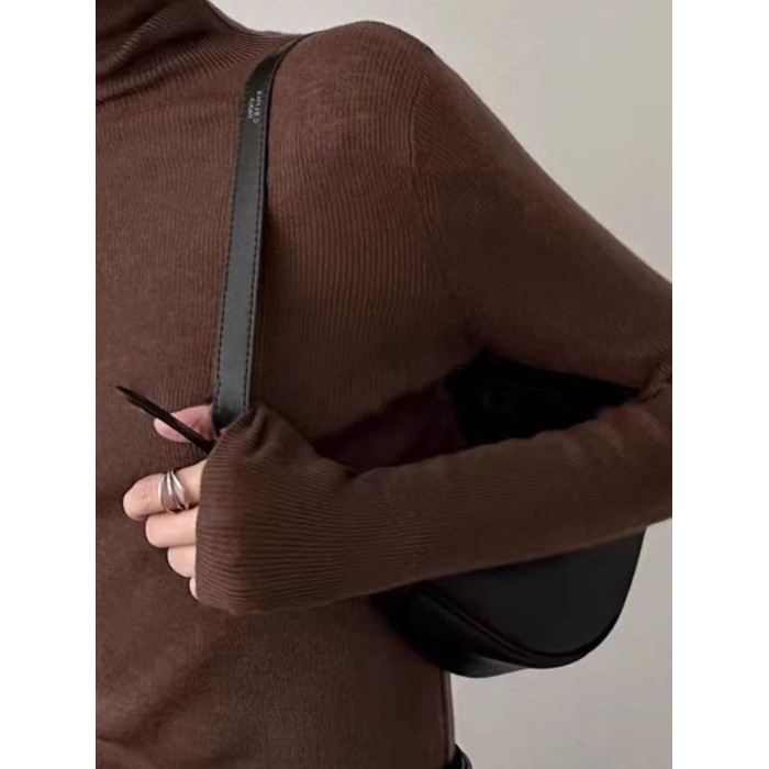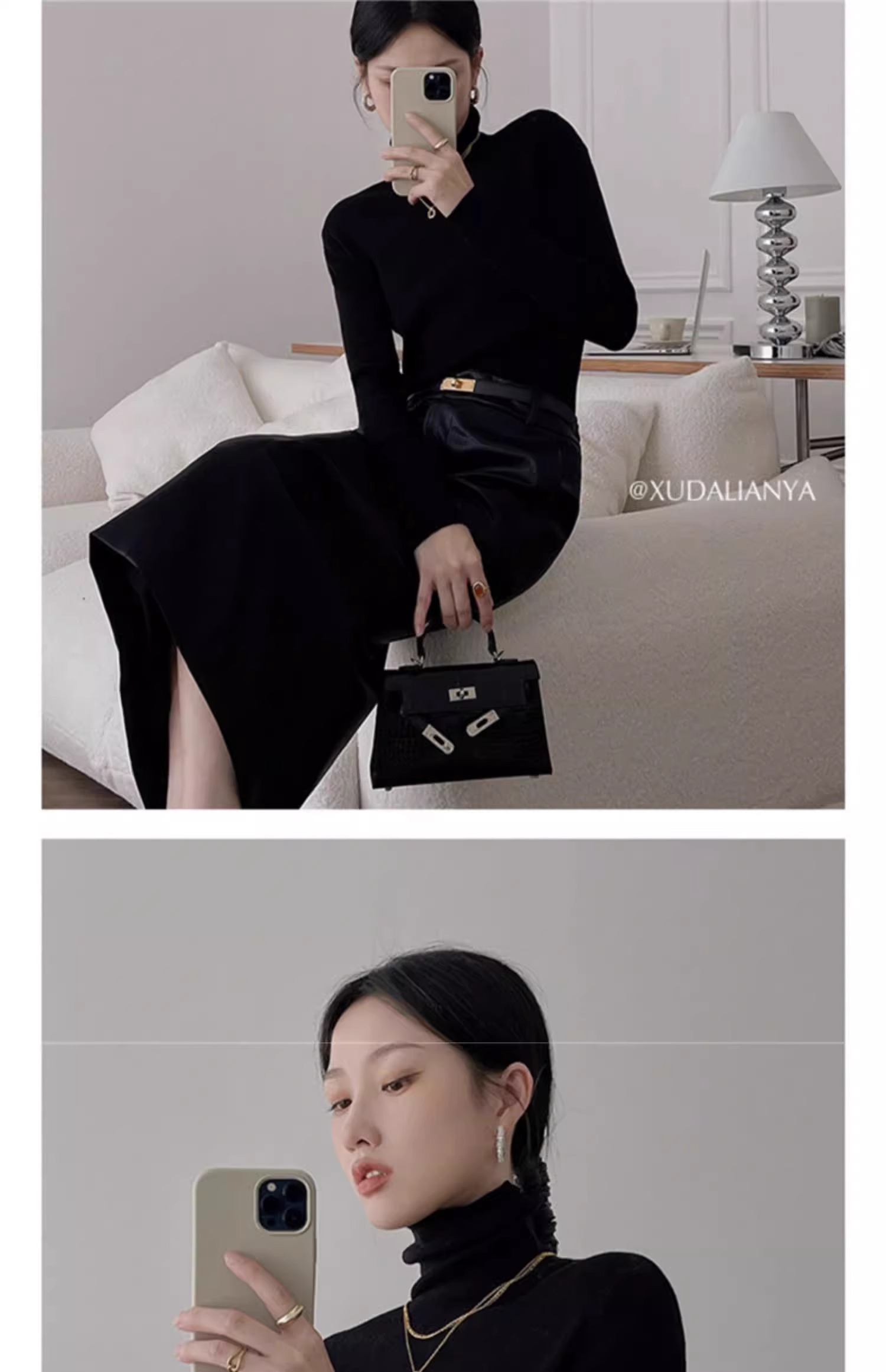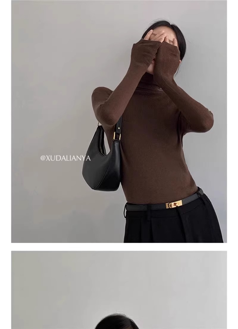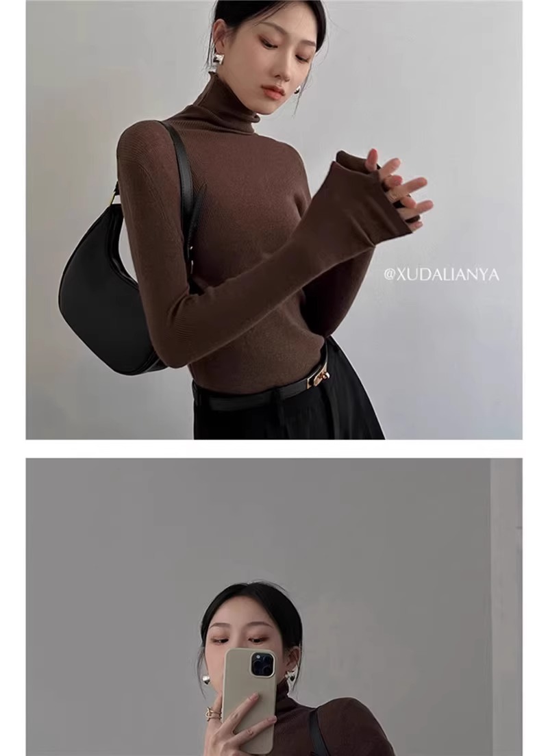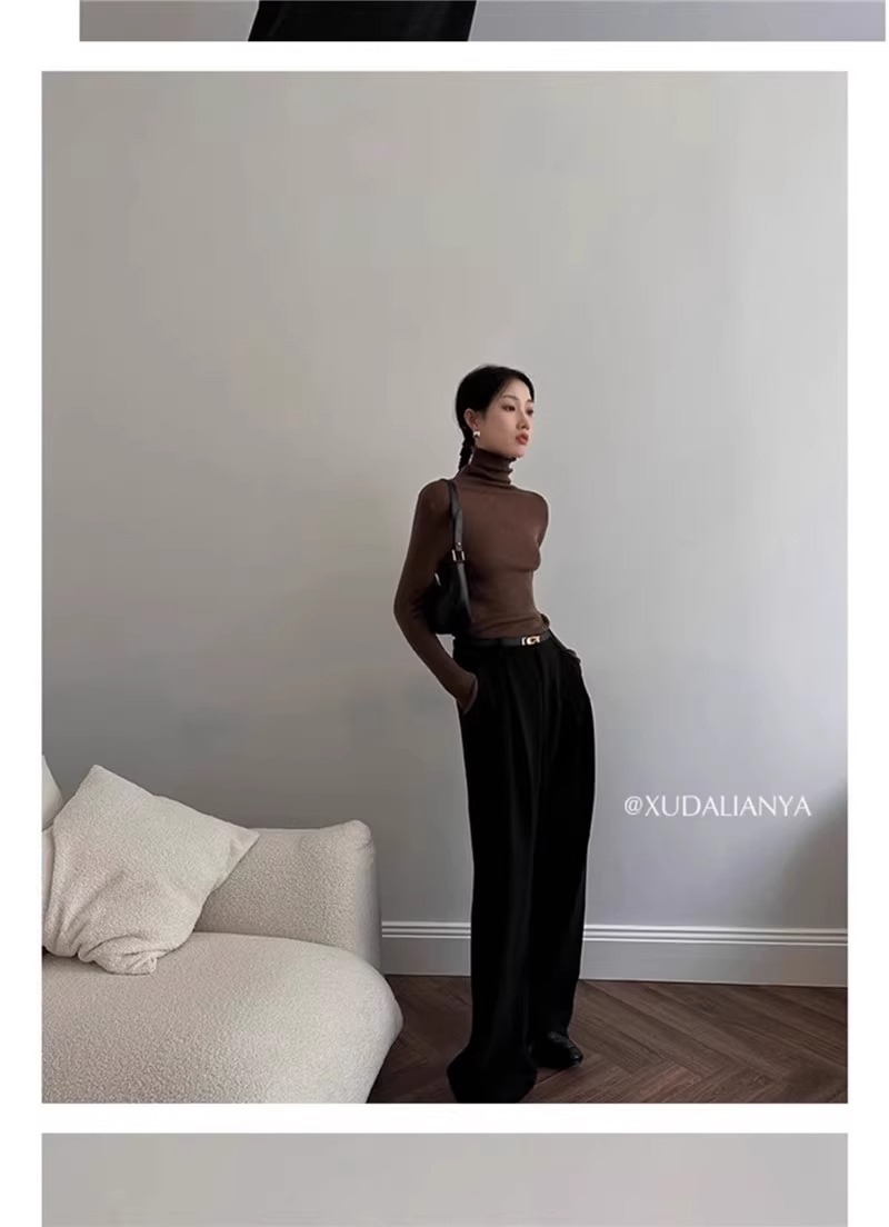 美麗諾精紡羊毛針織高領內搭打底衫女秋冬薄款修身顯瘦堆堆領毛衣