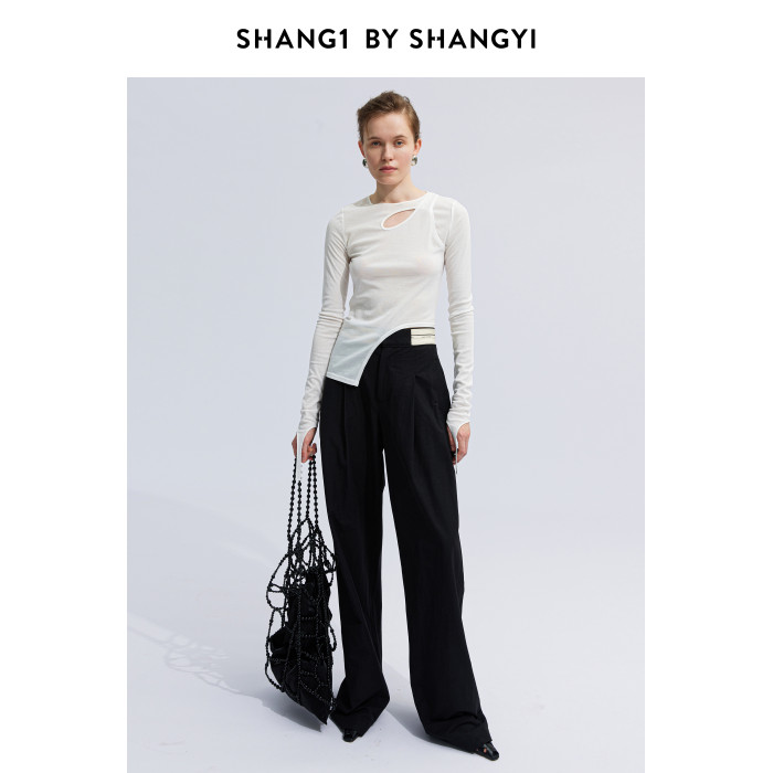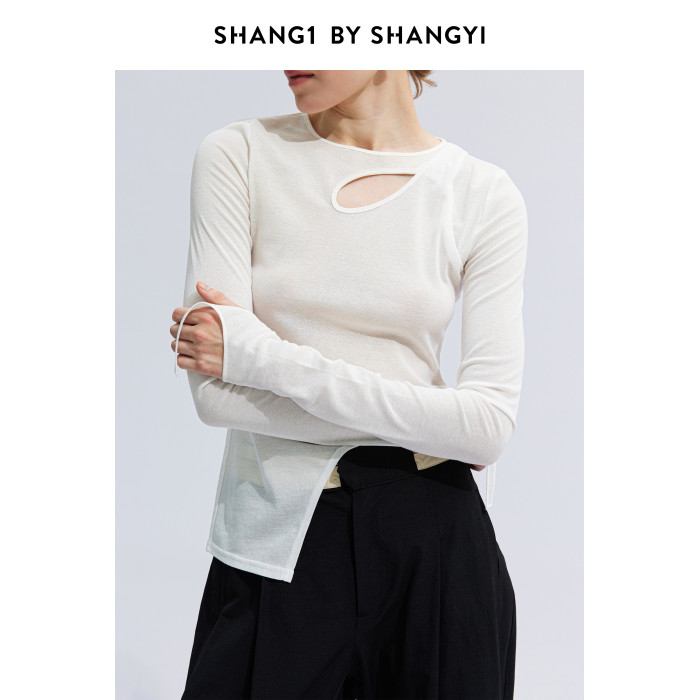 SHANG1 BY SHANGYI新款打底衫女24早春新款超薄修身解搆設計上衣