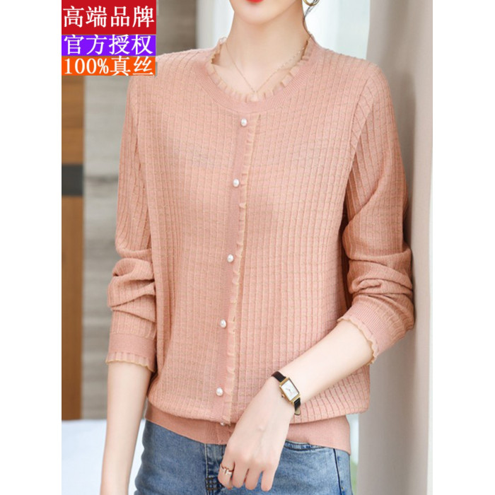 桑蠶絲針織打底衫女薄款春秋季2025新款小衫媽媽冰絲長袖圓領上衣