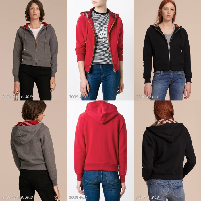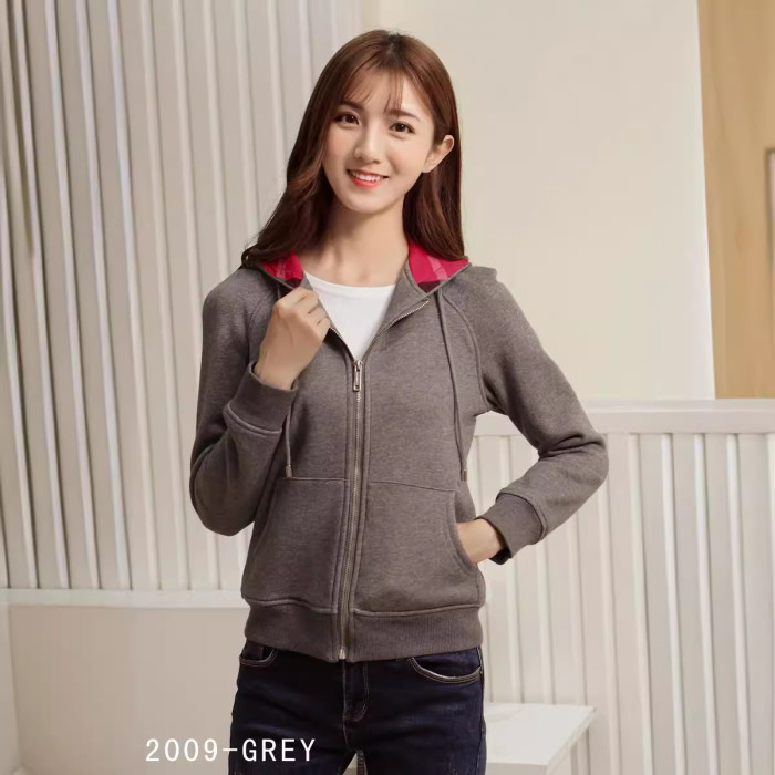 歐美經典英倫長袖運動連帽拉鍊女格子衛衣外套高品質原標S-XX