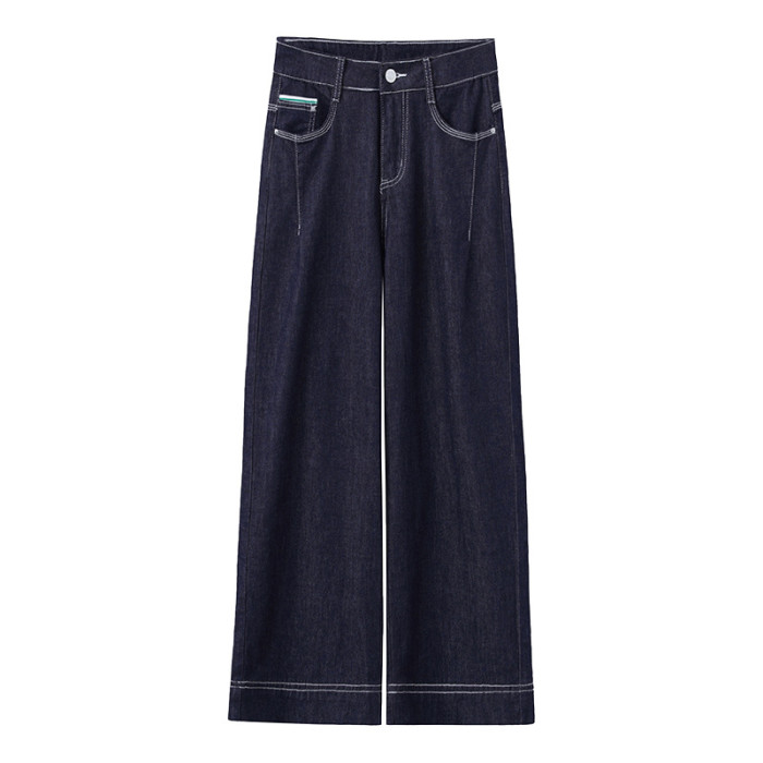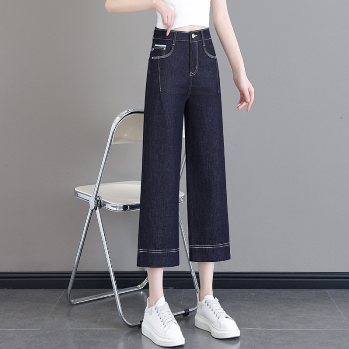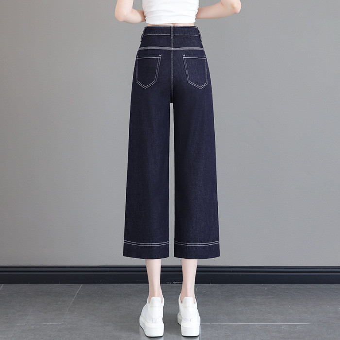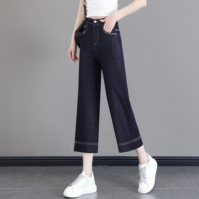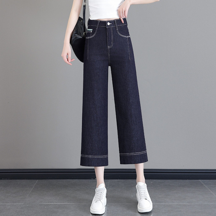 深藍色牛仔八分褲女2024夏季新款高腰顯瘦休閒大碼小個子九分直筒