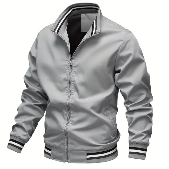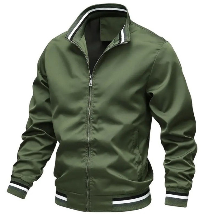 男士休閒運動夾克 新款立領拉鍊外套歐美拉鍊夾克