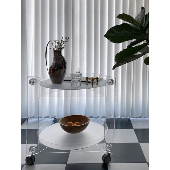 意大利guzzini家用客廳雙層置物可移動小推車 收納架咖啡桌小茶幾