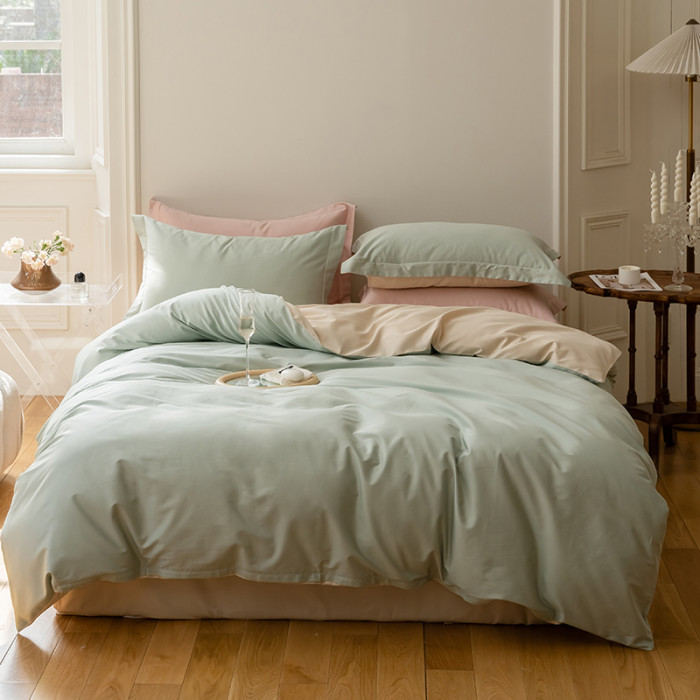 100支純棉貢緞床單被套枕套純色單件單人雙人春秋季素色1.8米2.0m