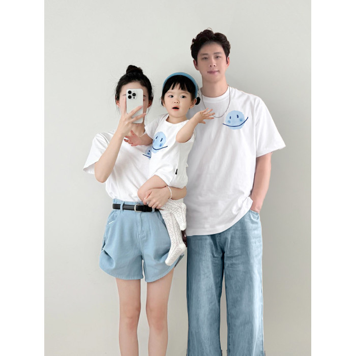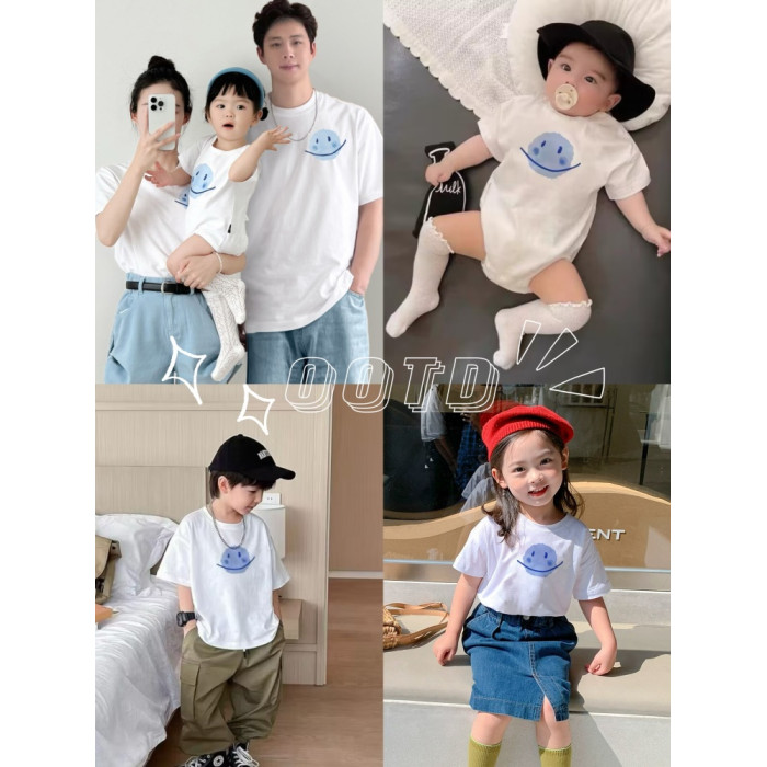 卡通親子裝夏季新款2025一家三口嬰兒爬服影樓拍照百搭T恤家庭裝