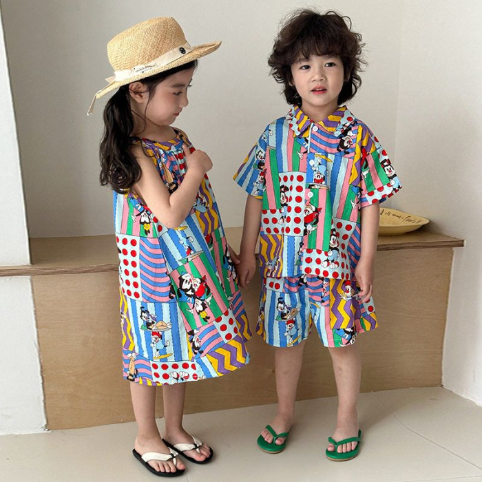 2025兄妹裝夏季兒童炸街親子裝男童短袖女童吊帶韓版卡通洋氣套裝
