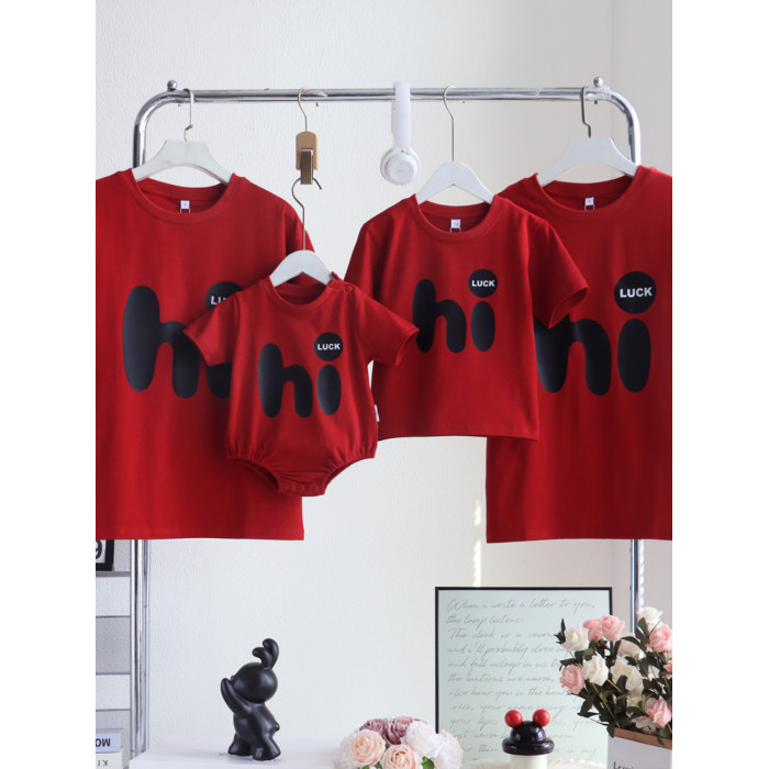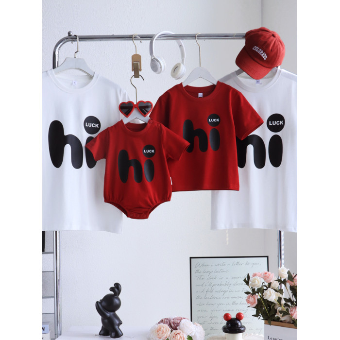 小月齡寶寶親子裝滿月百天拍照嬰兒爬服母子母女短袖T恤一家三口