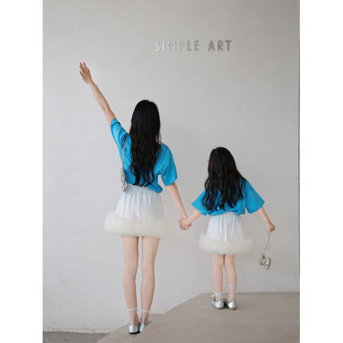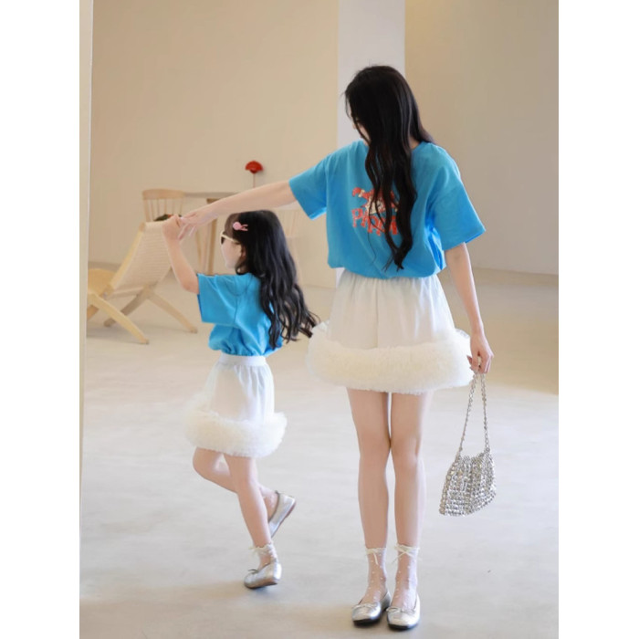 炸街親子裝夏季新款母女裝兒童卡通T恤多層裙擺紗裙半裙百搭紗裙
