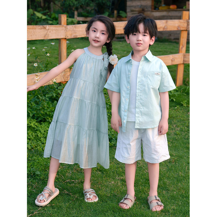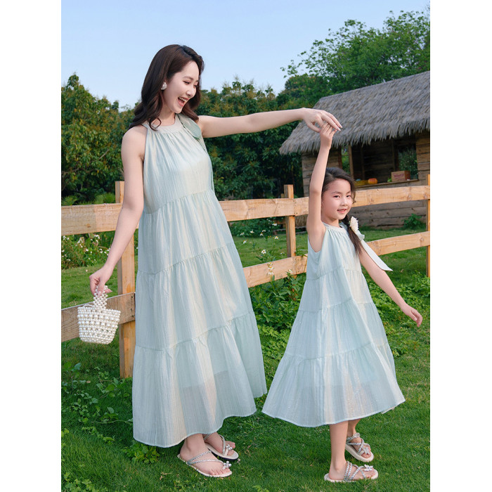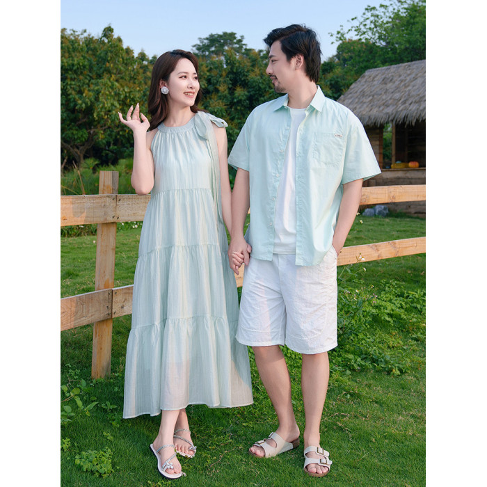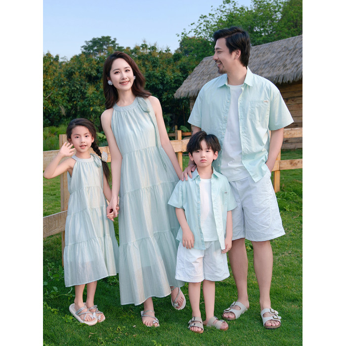 親子裝一家四口2025新款海邊度假沙灘裝母女裝連衣裙短袖親子上衣