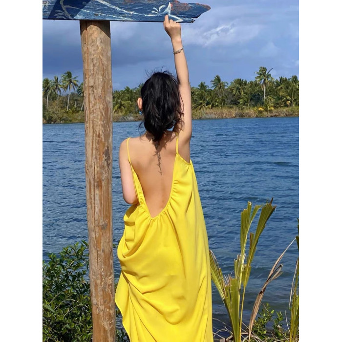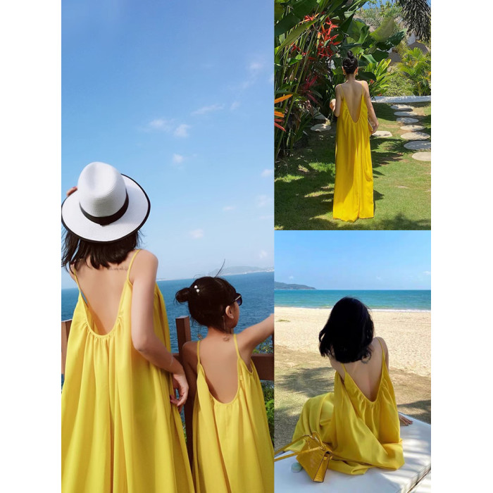 2025夏季海邊度假三亞沙灘裙親子裝母女裙長裙吊帶性感露背連衣裙