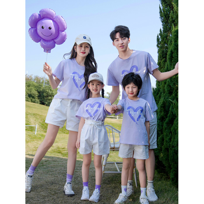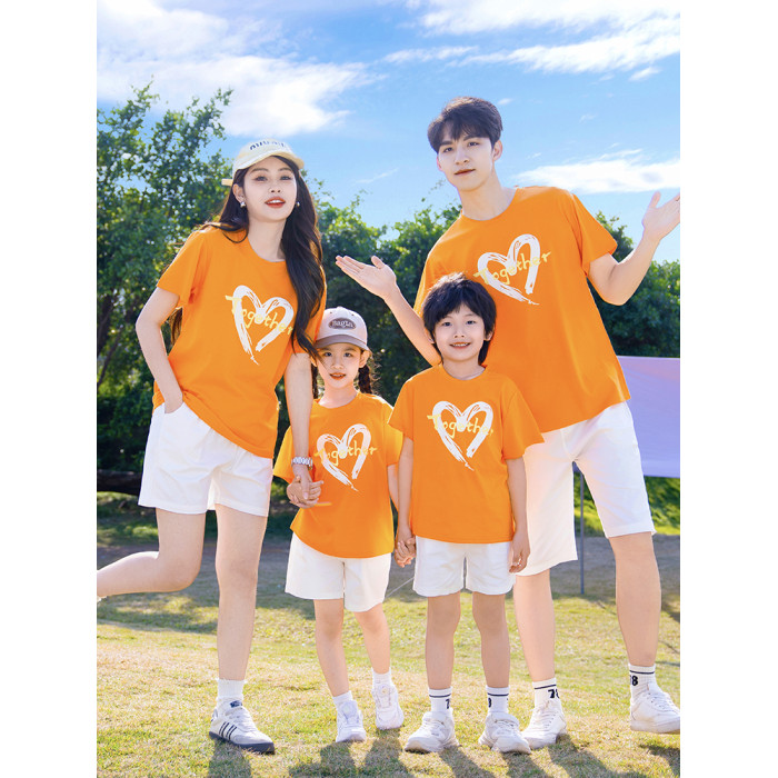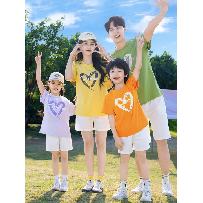 2025新款親子裝夏季家庭旅遊一家三口四口母女多巴胺短袖T恤套裝