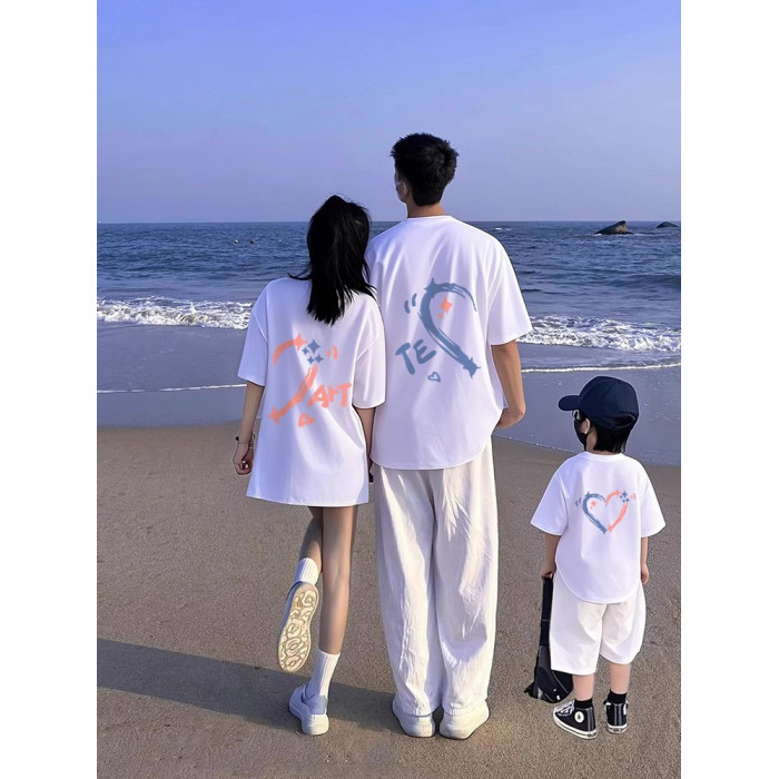 不一樣的親子裝T恤夏季一家三口母子裝2025新款網紅白色短袖上衣t