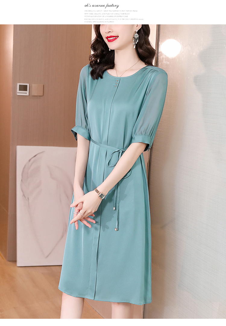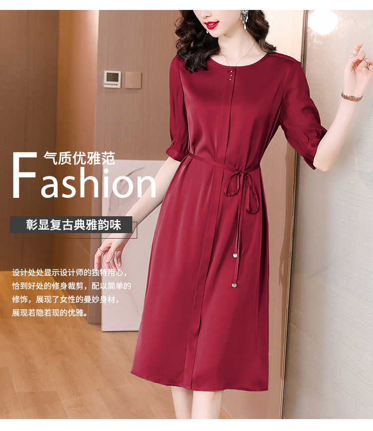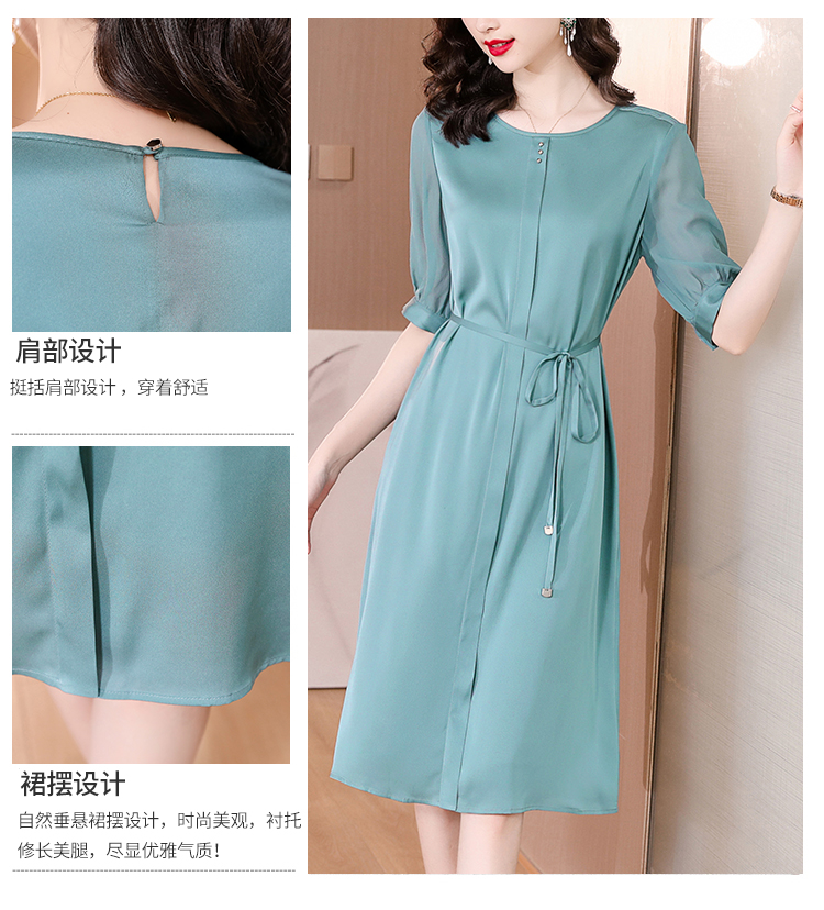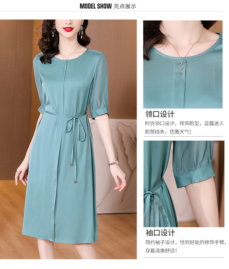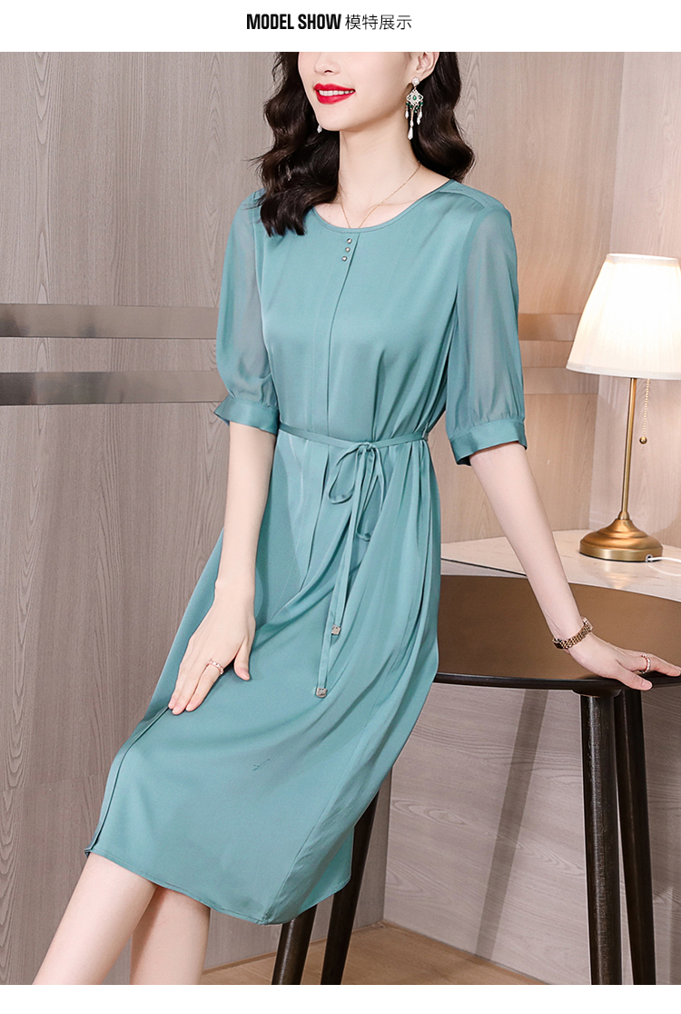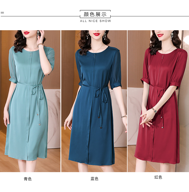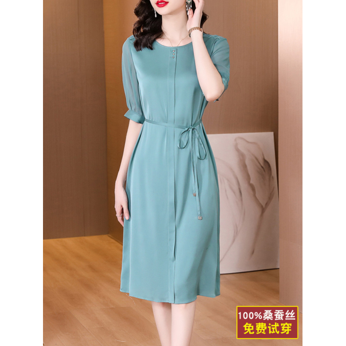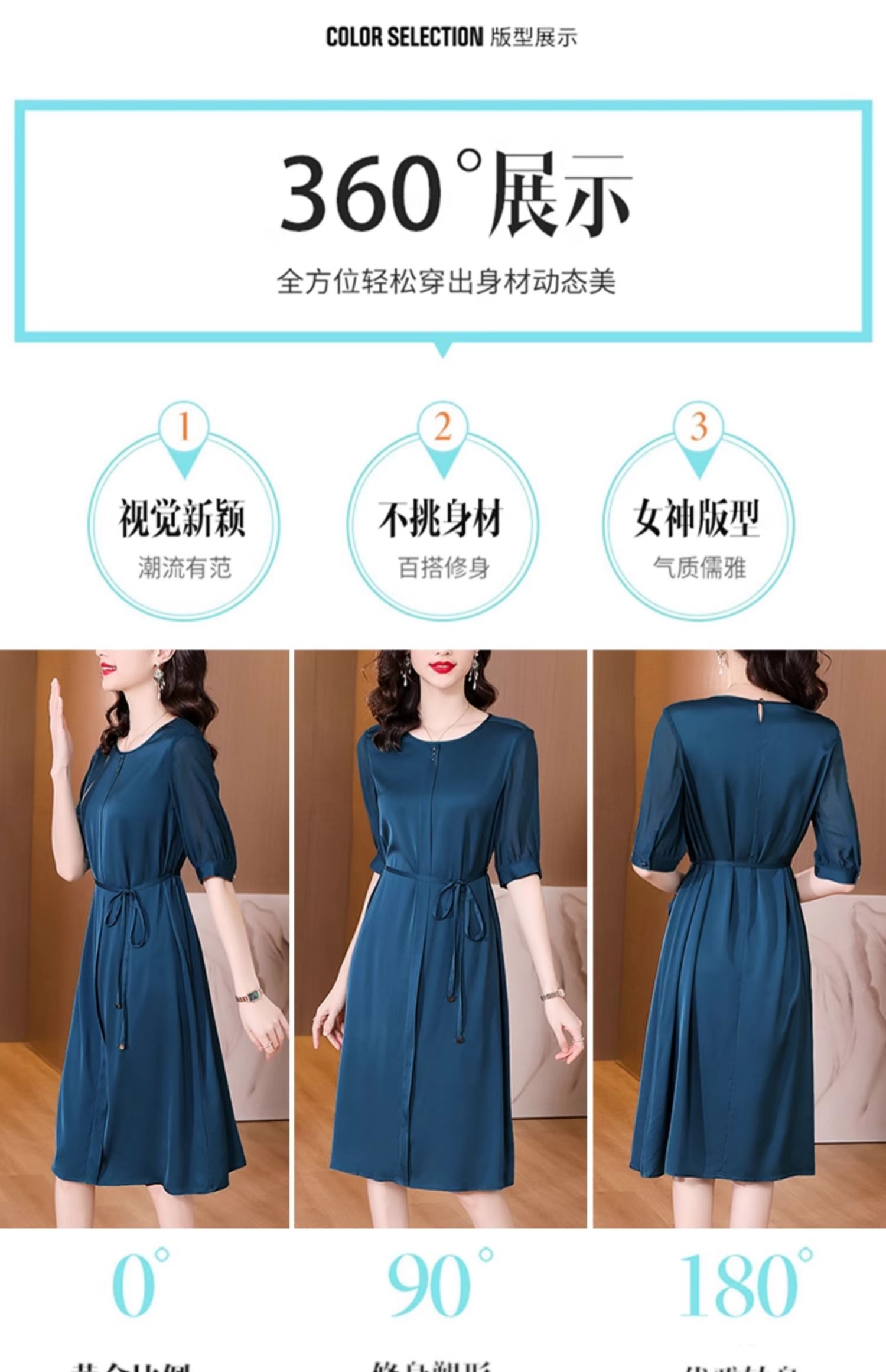 恒源祥彩羊杭州大牌真絲連衣裙女媽媽夏裝桑蠶絲高級感中老年純色