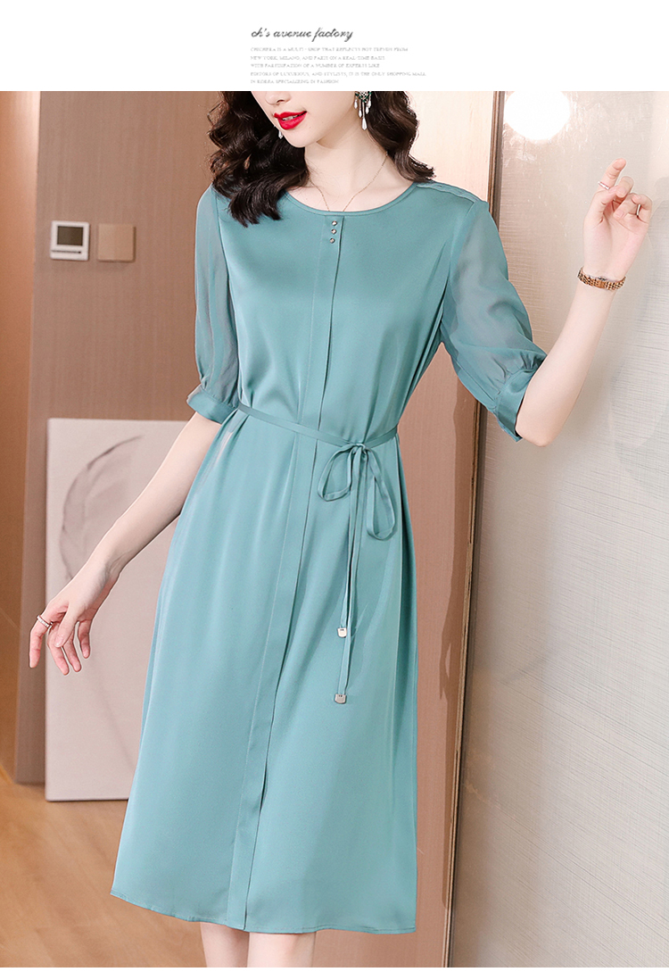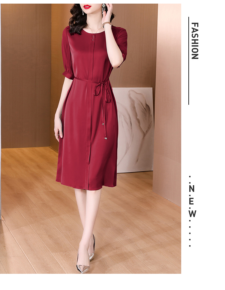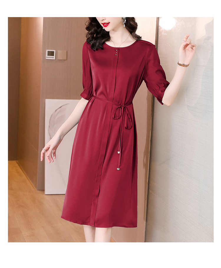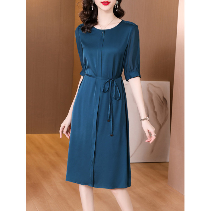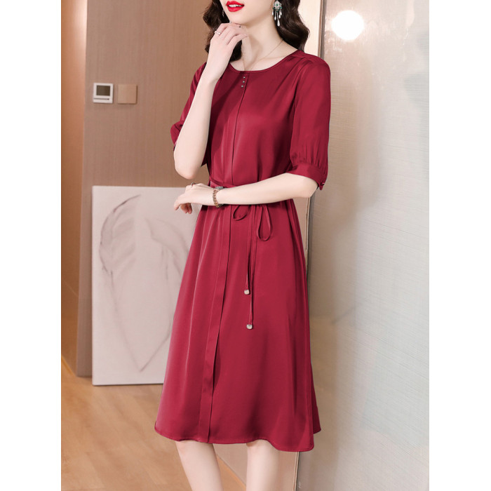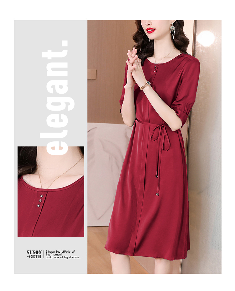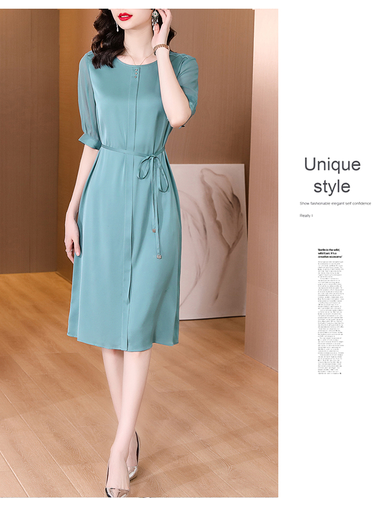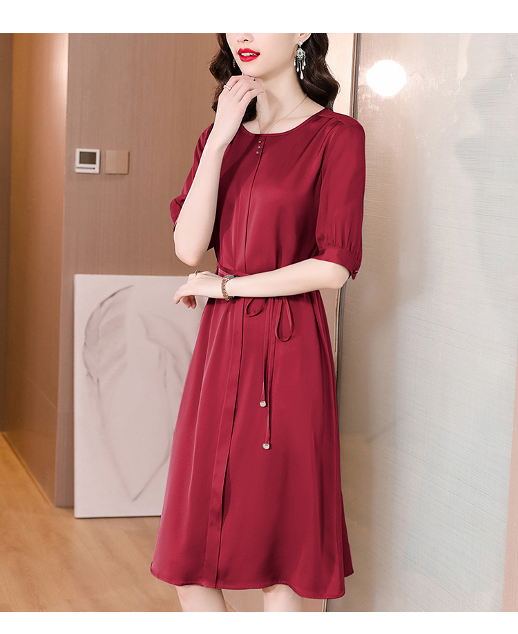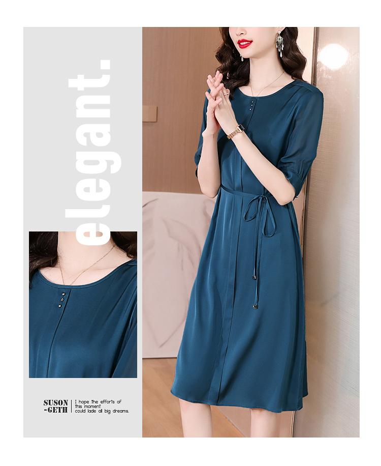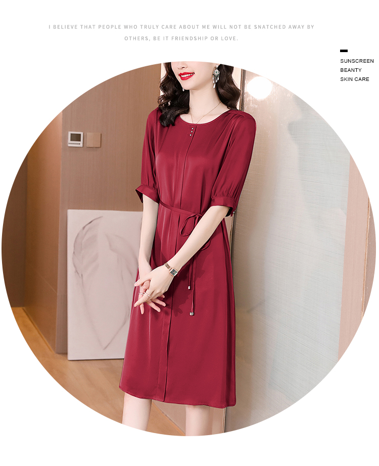 恒源祥彩羊杭州大牌真絲連衣裙女媽媽夏裝桑蠶絲高級感中老年純色