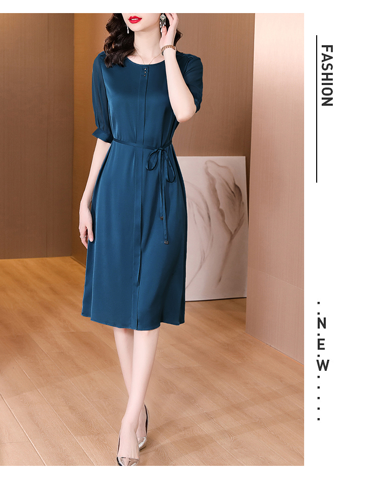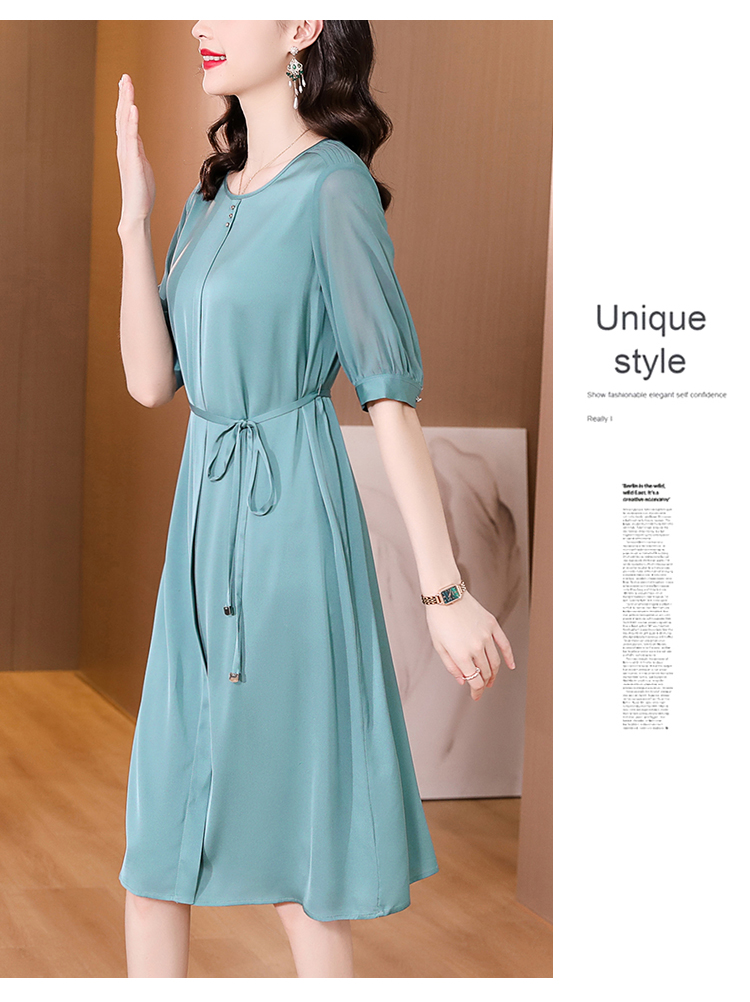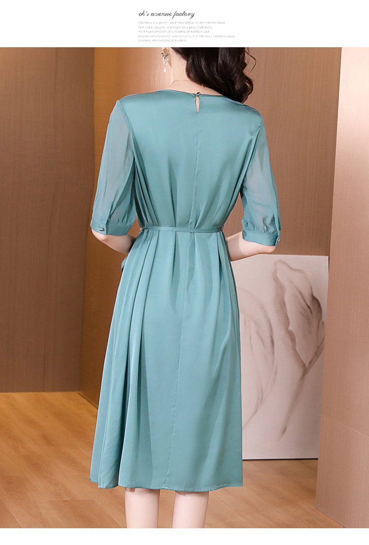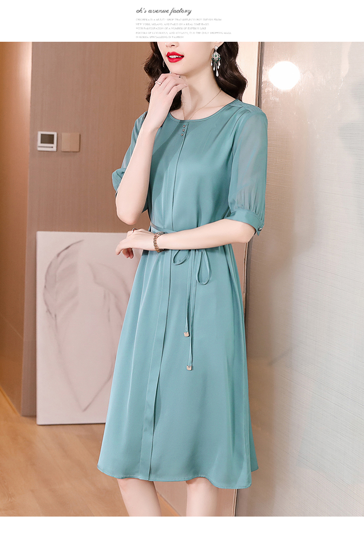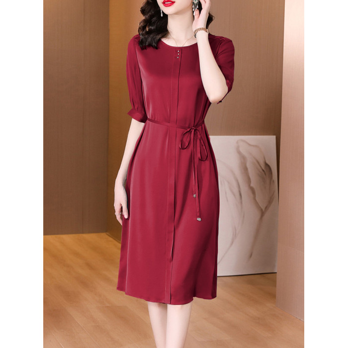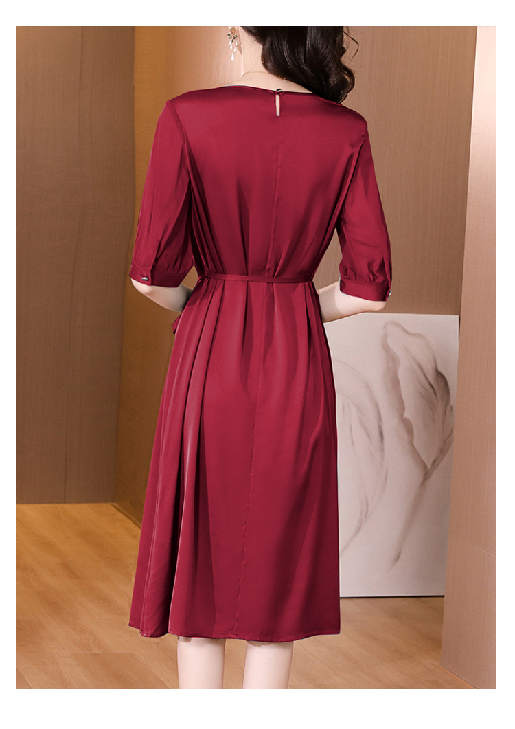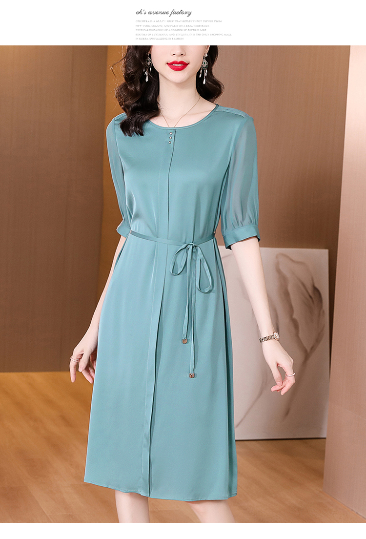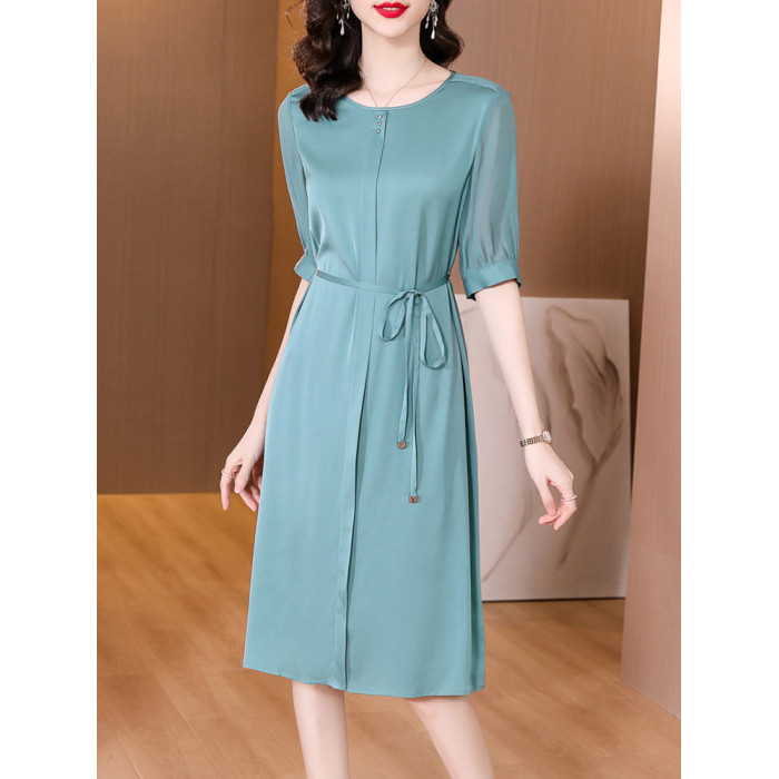 恒源祥彩羊杭州大牌真絲連衣裙女媽媽夏裝桑蠶絲高級感中老年純色