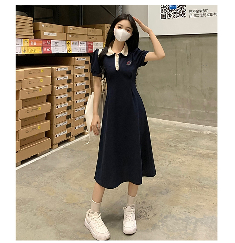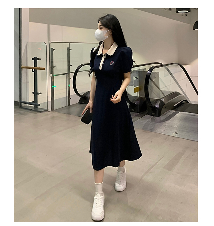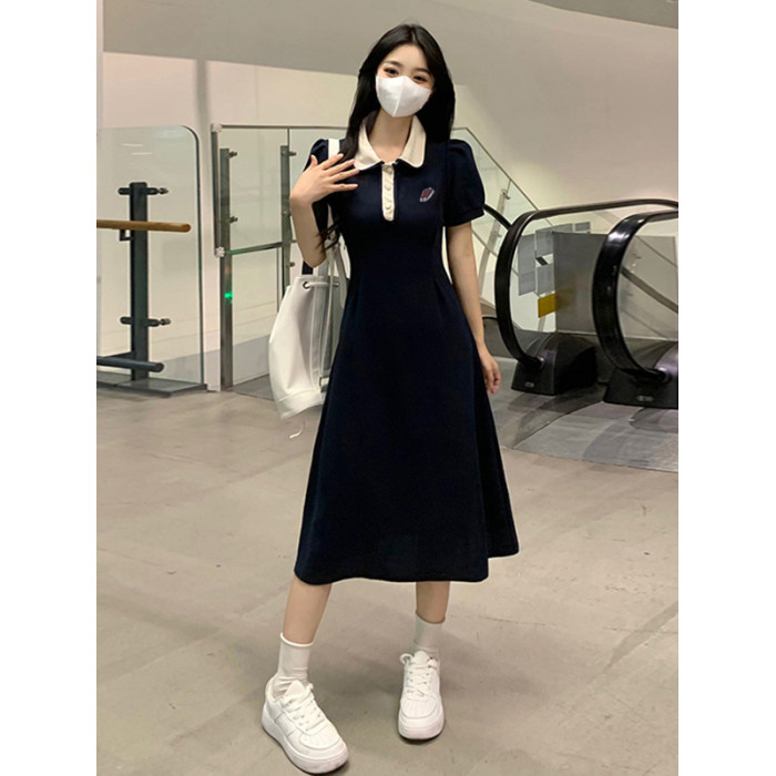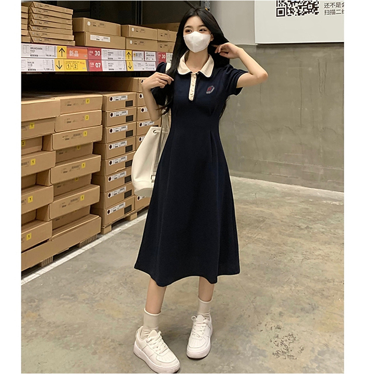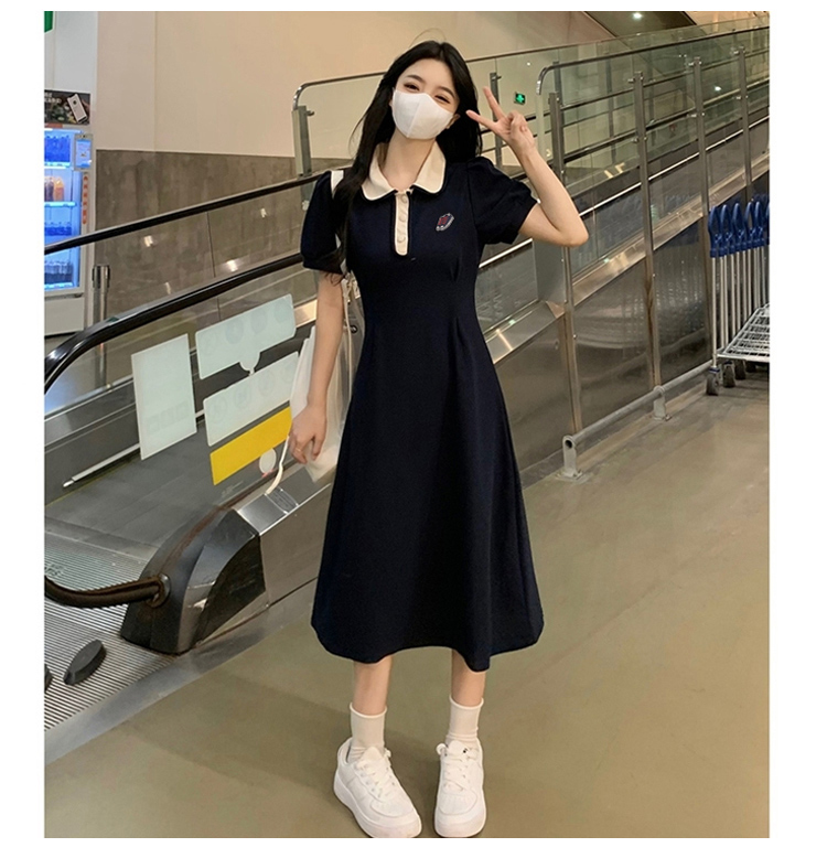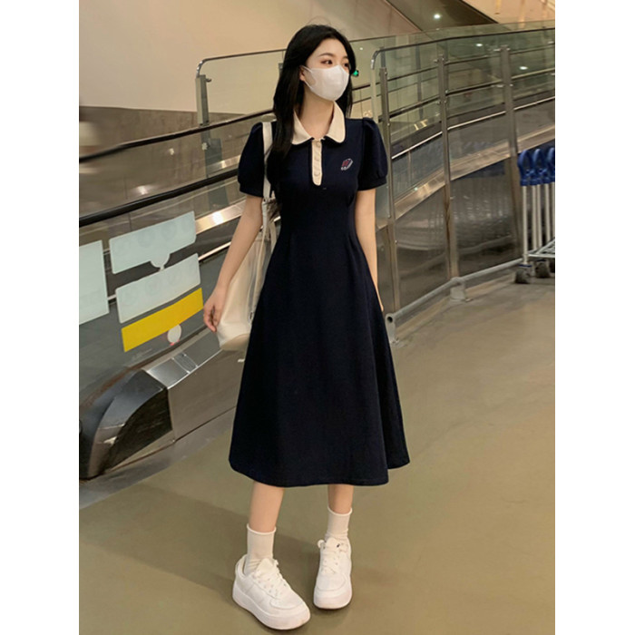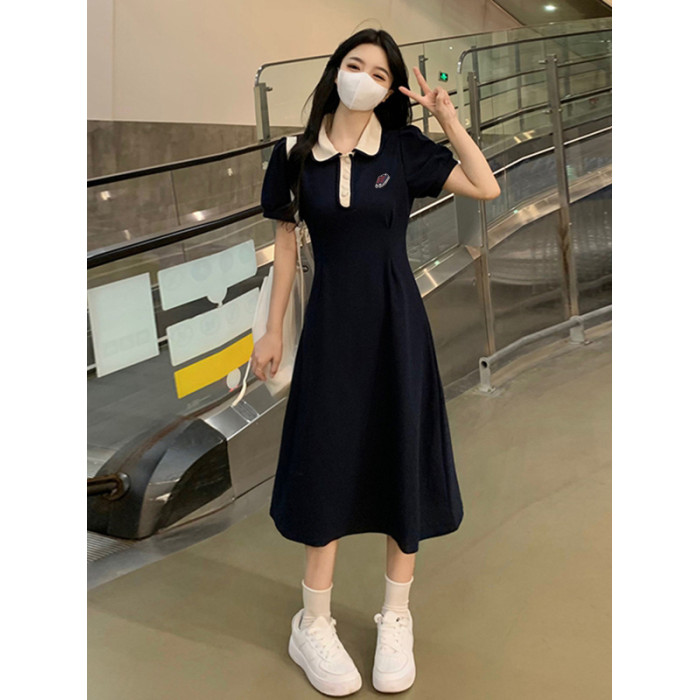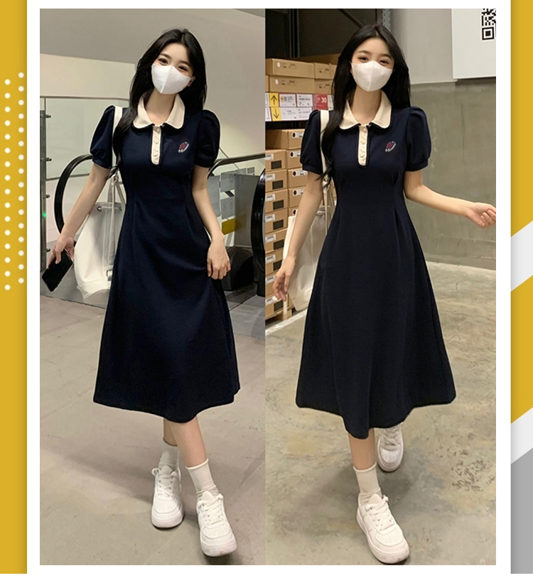 polo領連衣裙少女夏裝2025新款初中高中學生學院風運動收腰長裙子