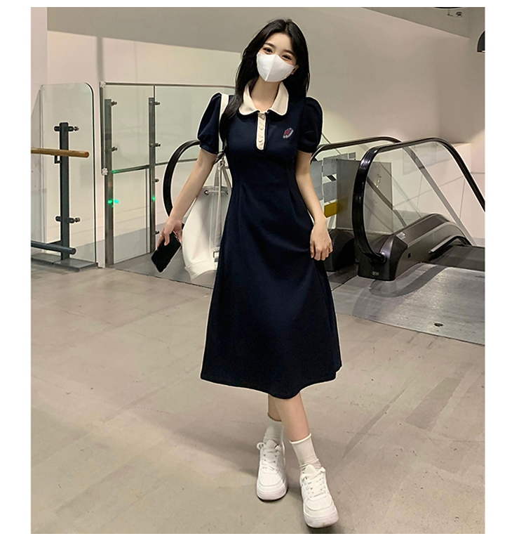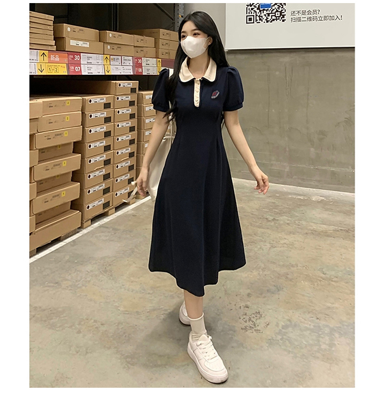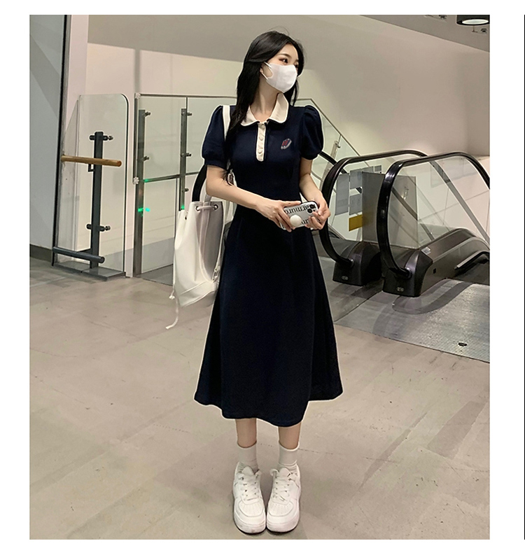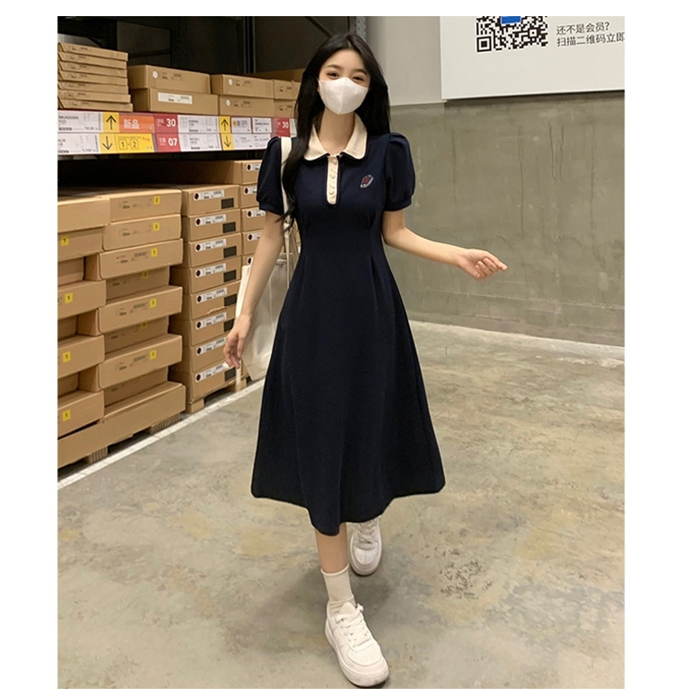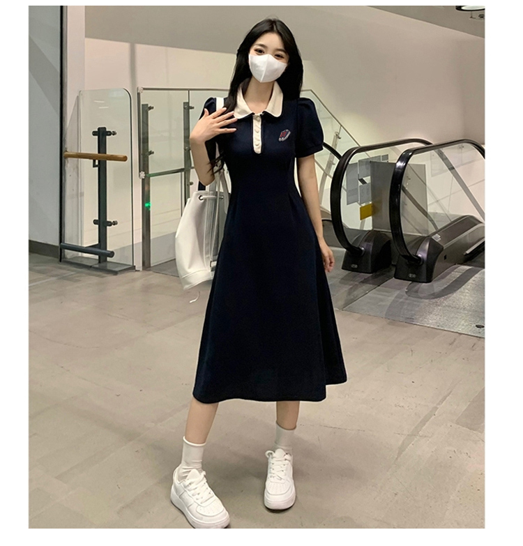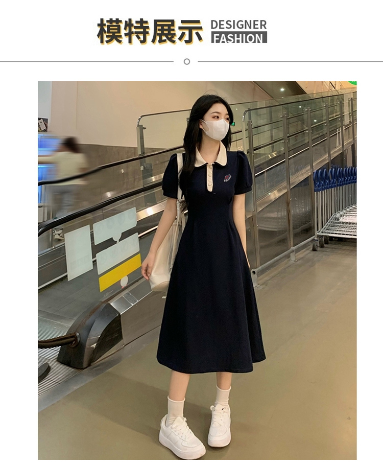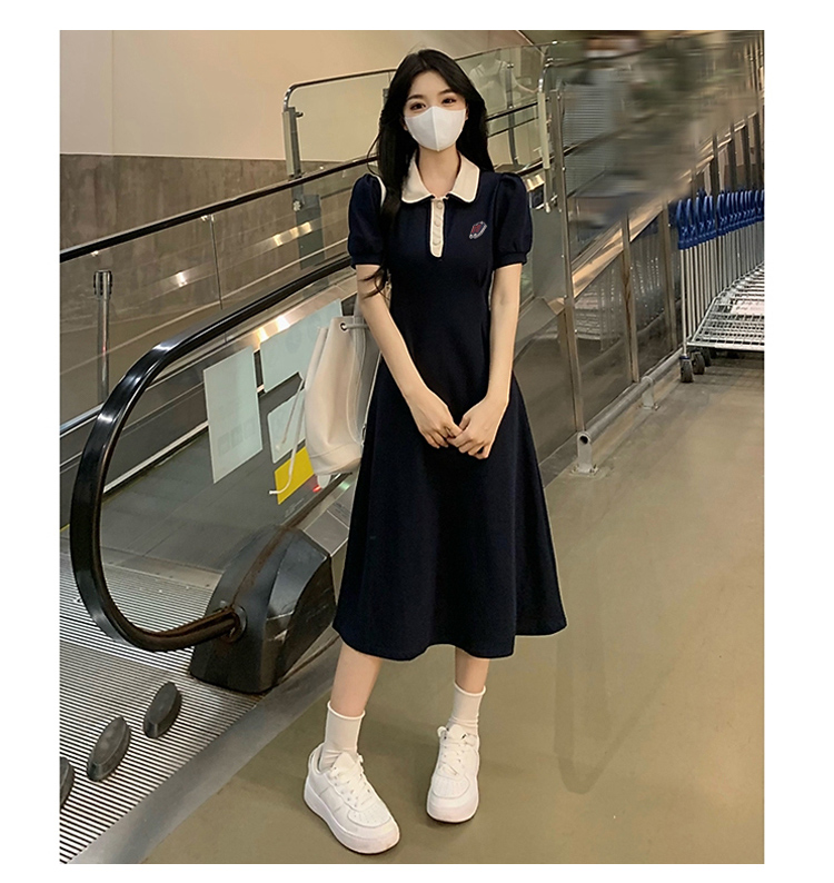 polo領連衣裙少女夏裝2025新款初中高中學生學院風運動收腰長裙子