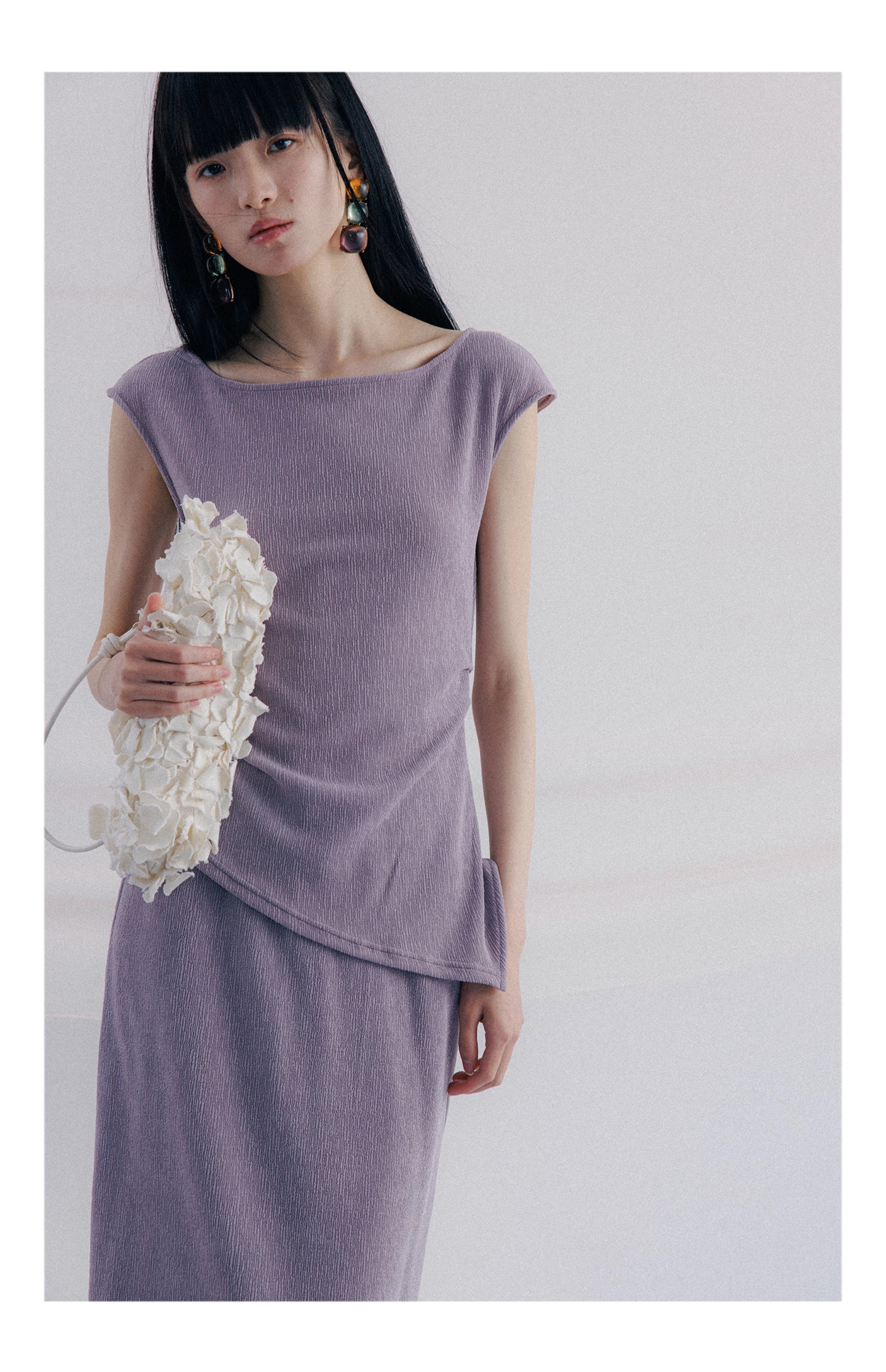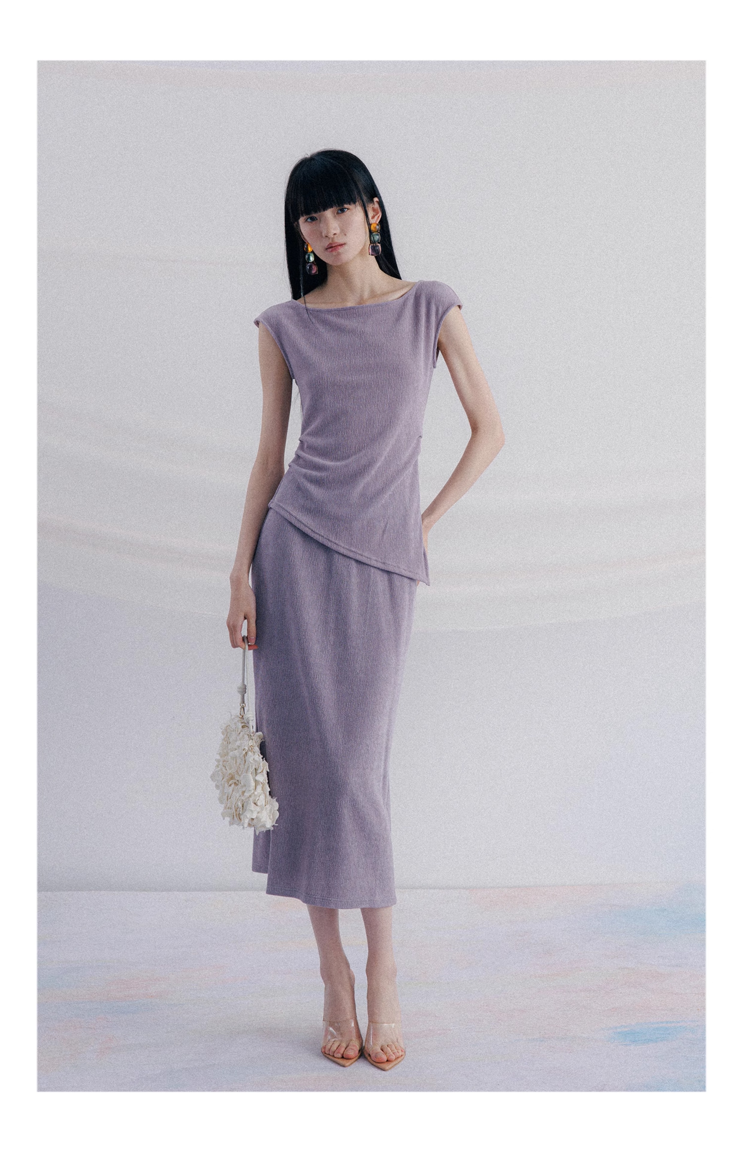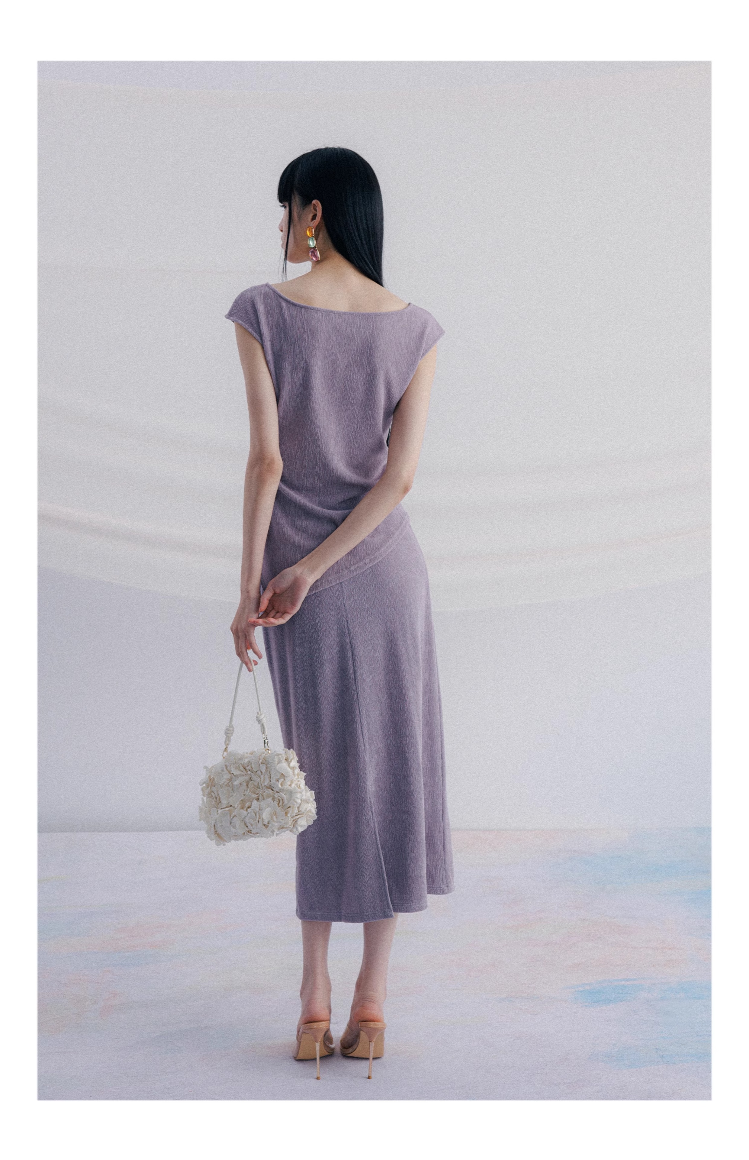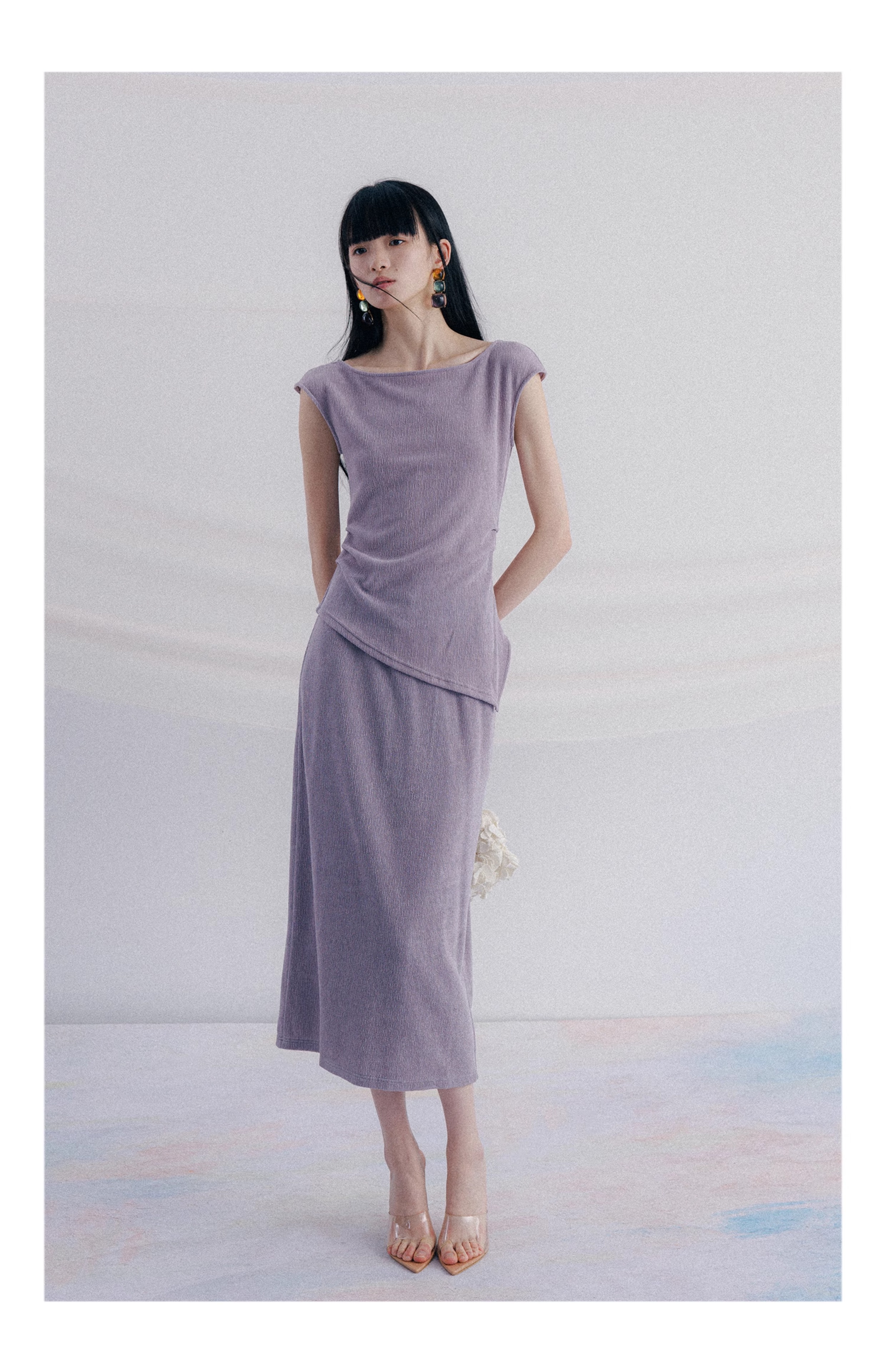 SOTHEMOS 25SS 紫色鳶尾 極簡清冷感真醋酸針織套裝連衣裙夏