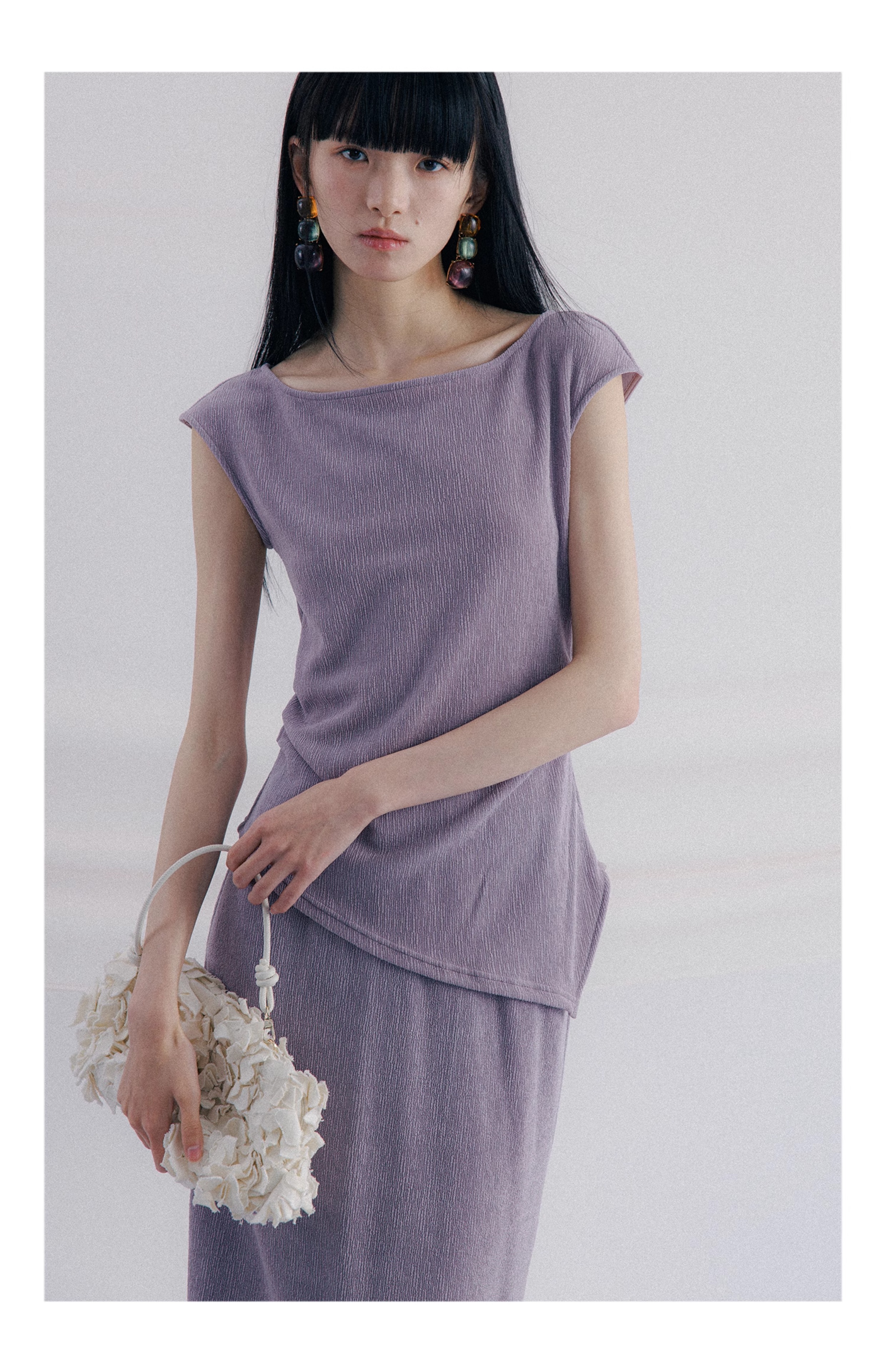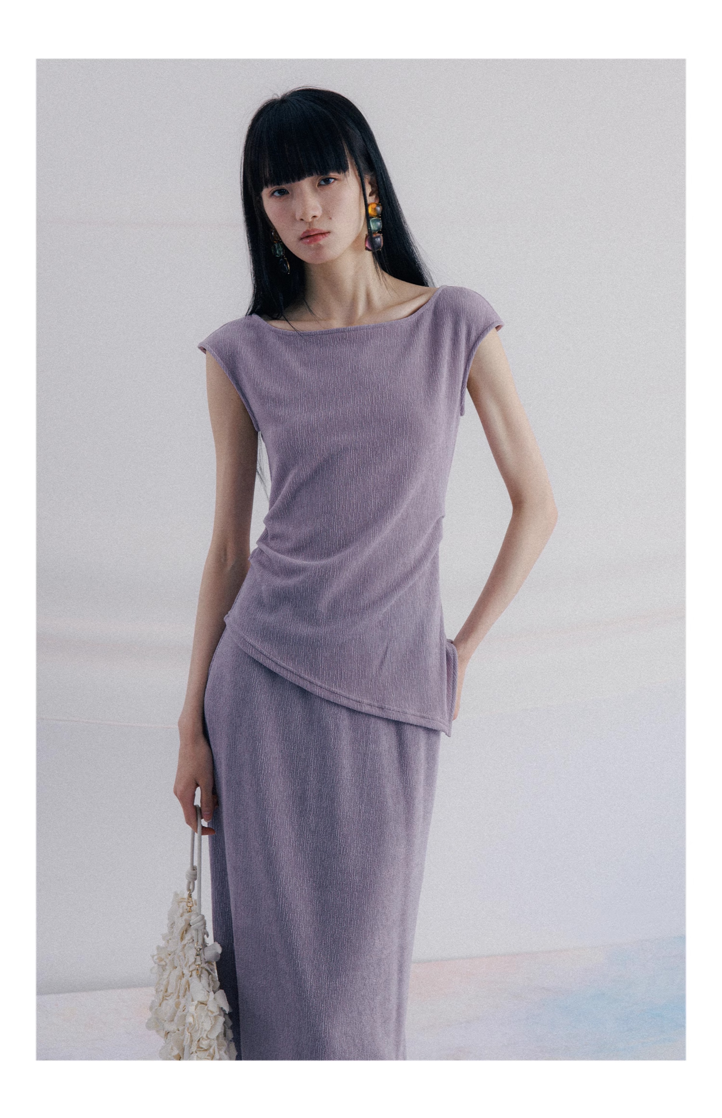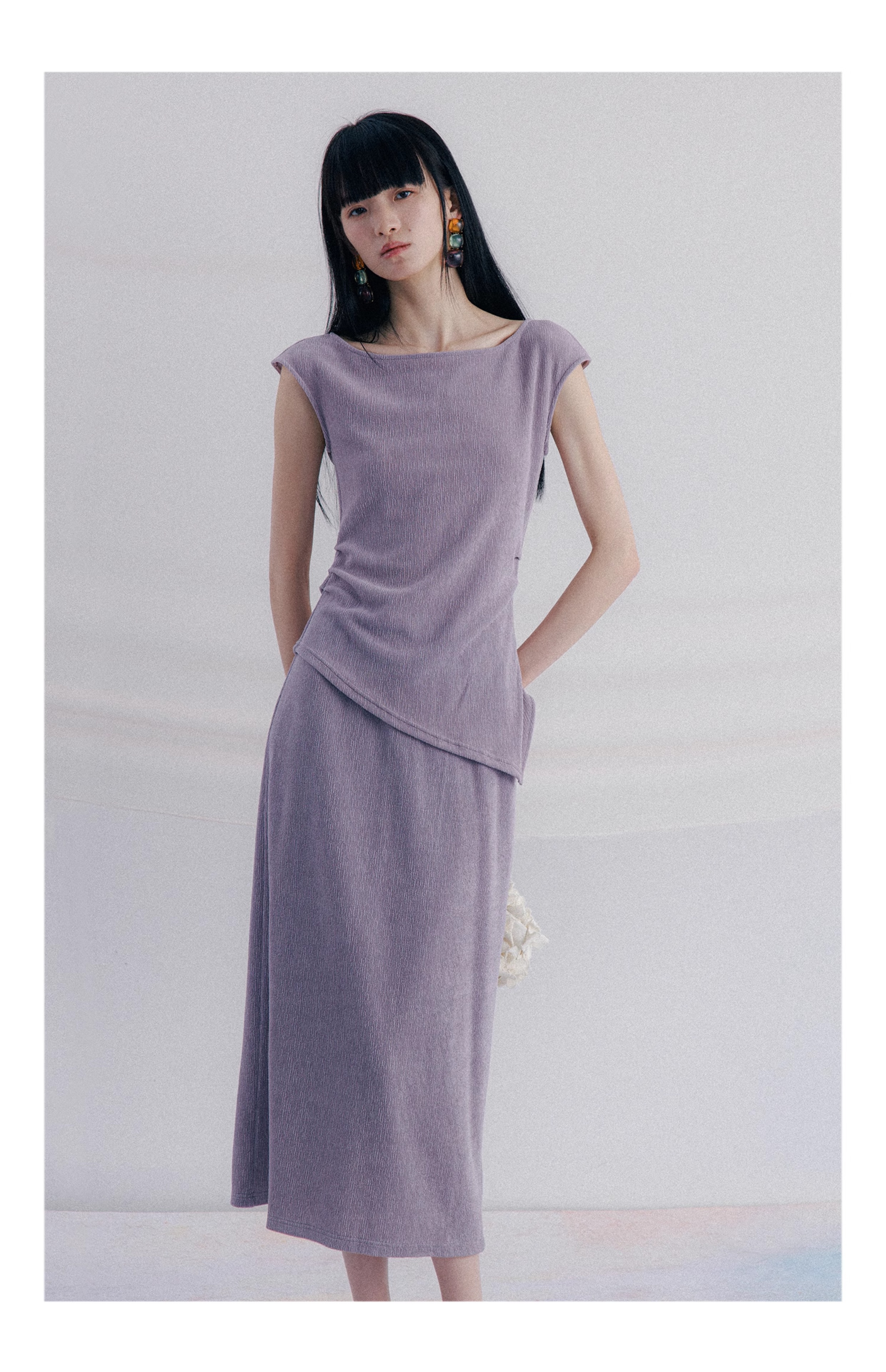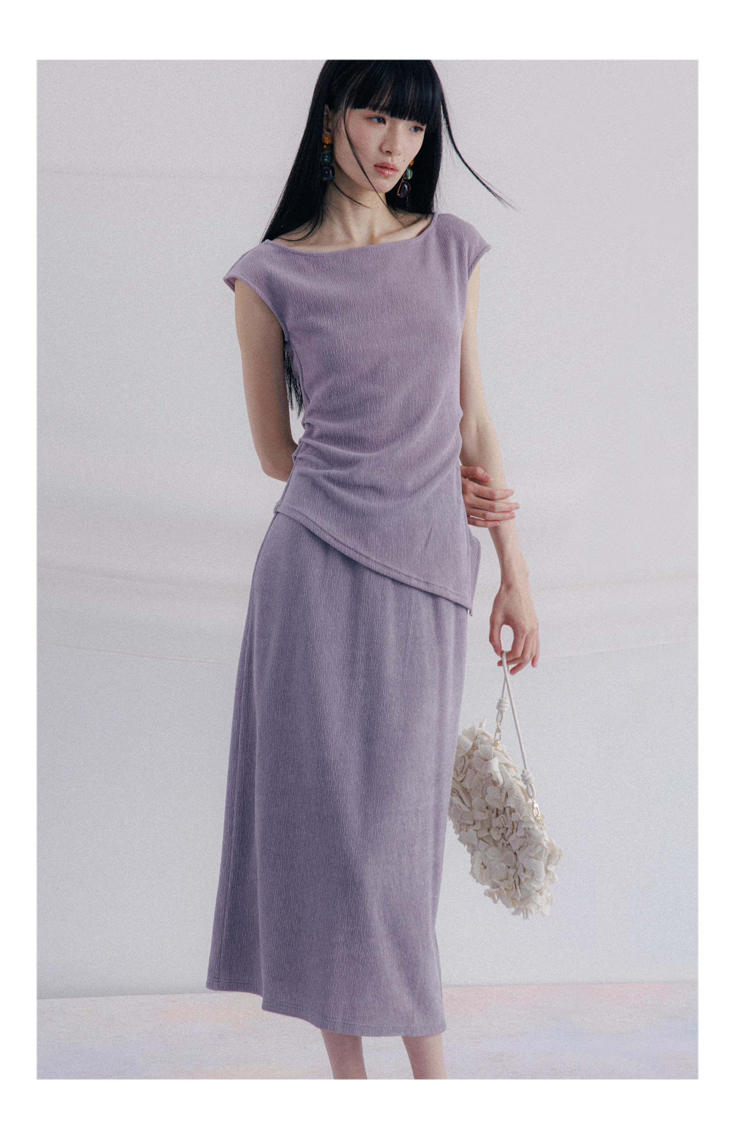 SOTHEMOS 25SS 紫色鳶尾 極簡清冷感真醋酸針織套裝連衣裙夏
