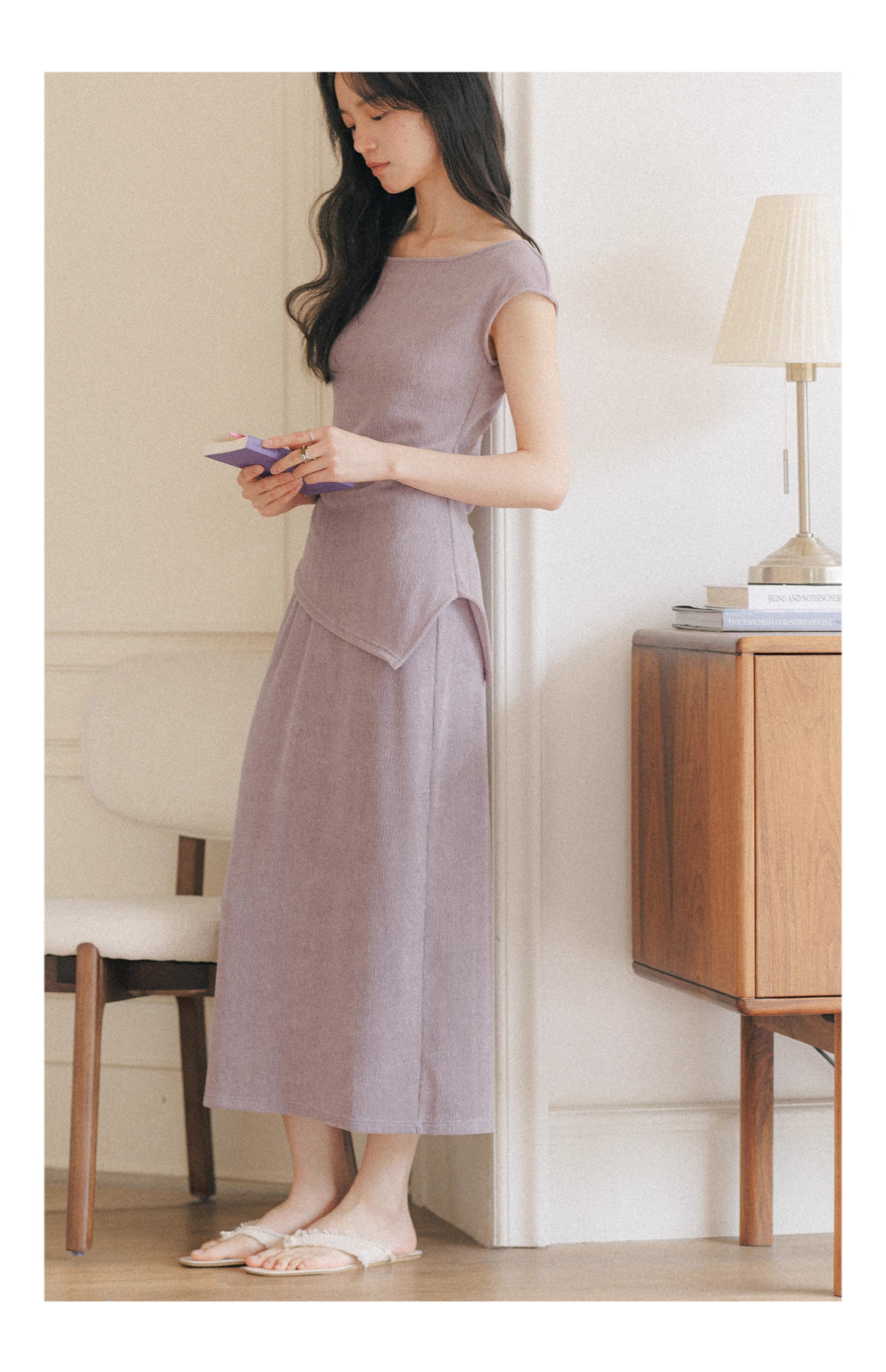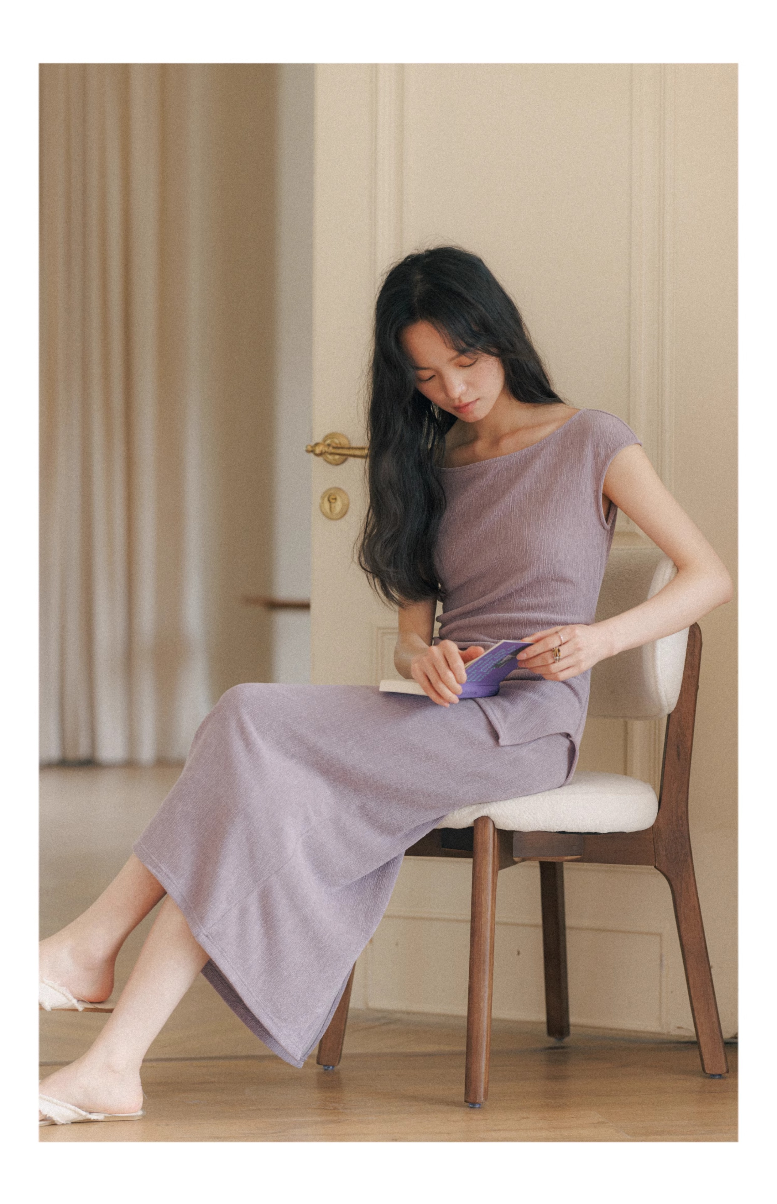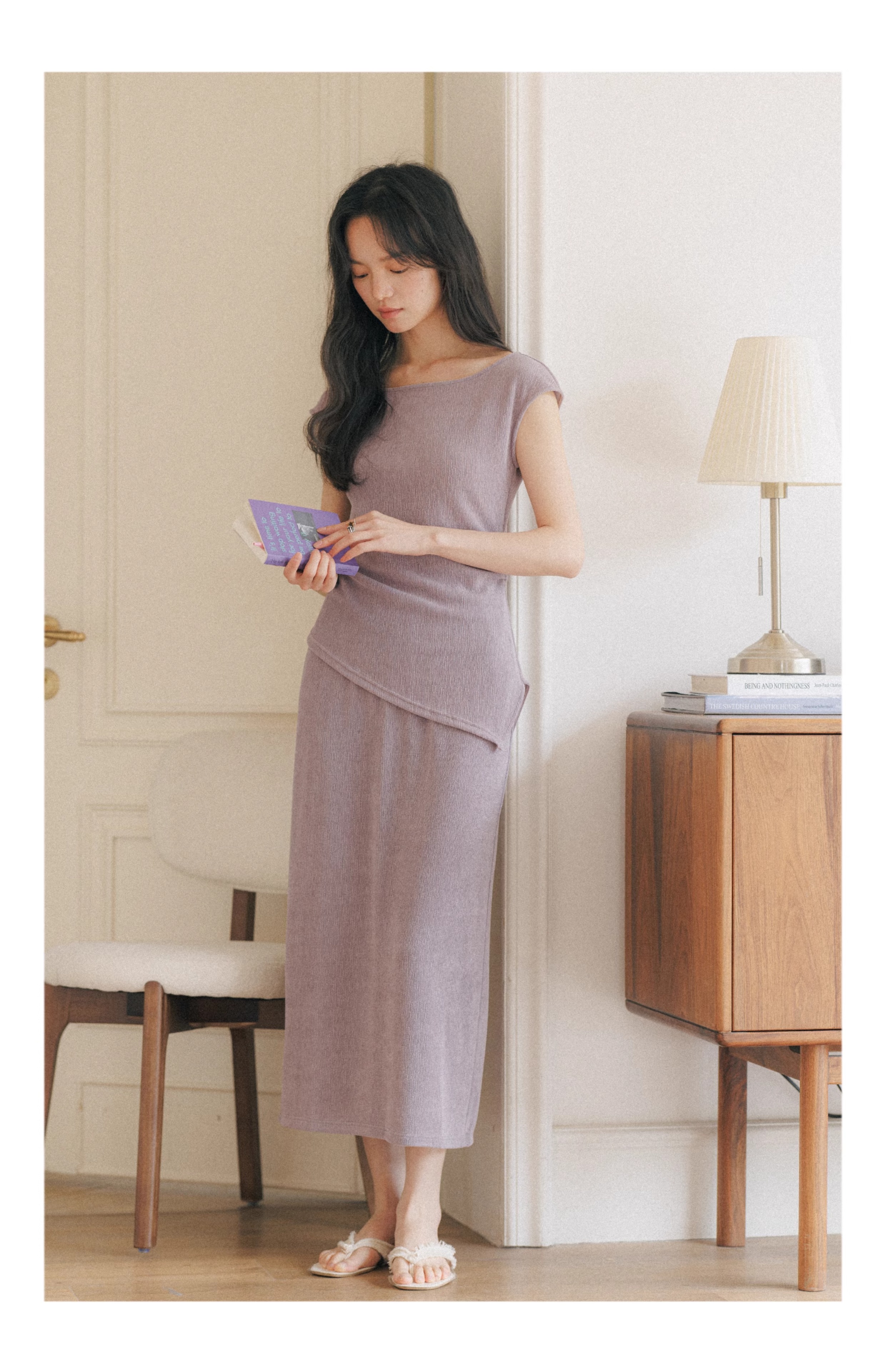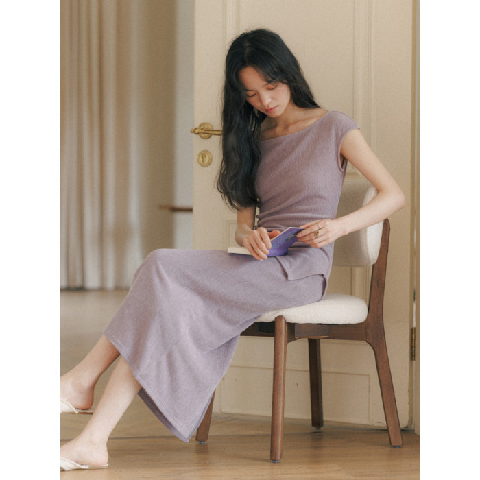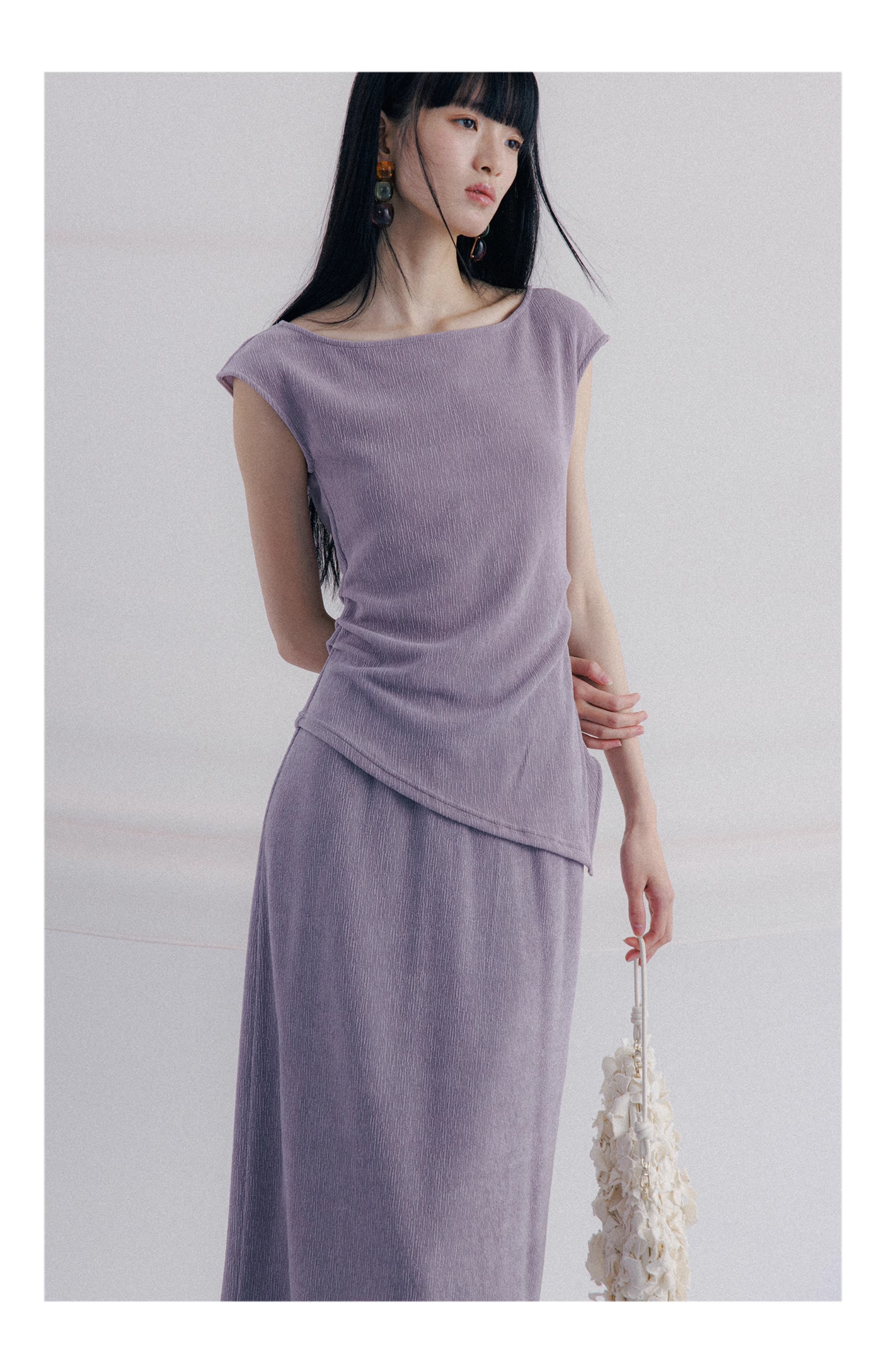 SOTHEMOS 25SS 紫色鳶尾 極簡清冷感真醋酸針織套裝連衣裙夏