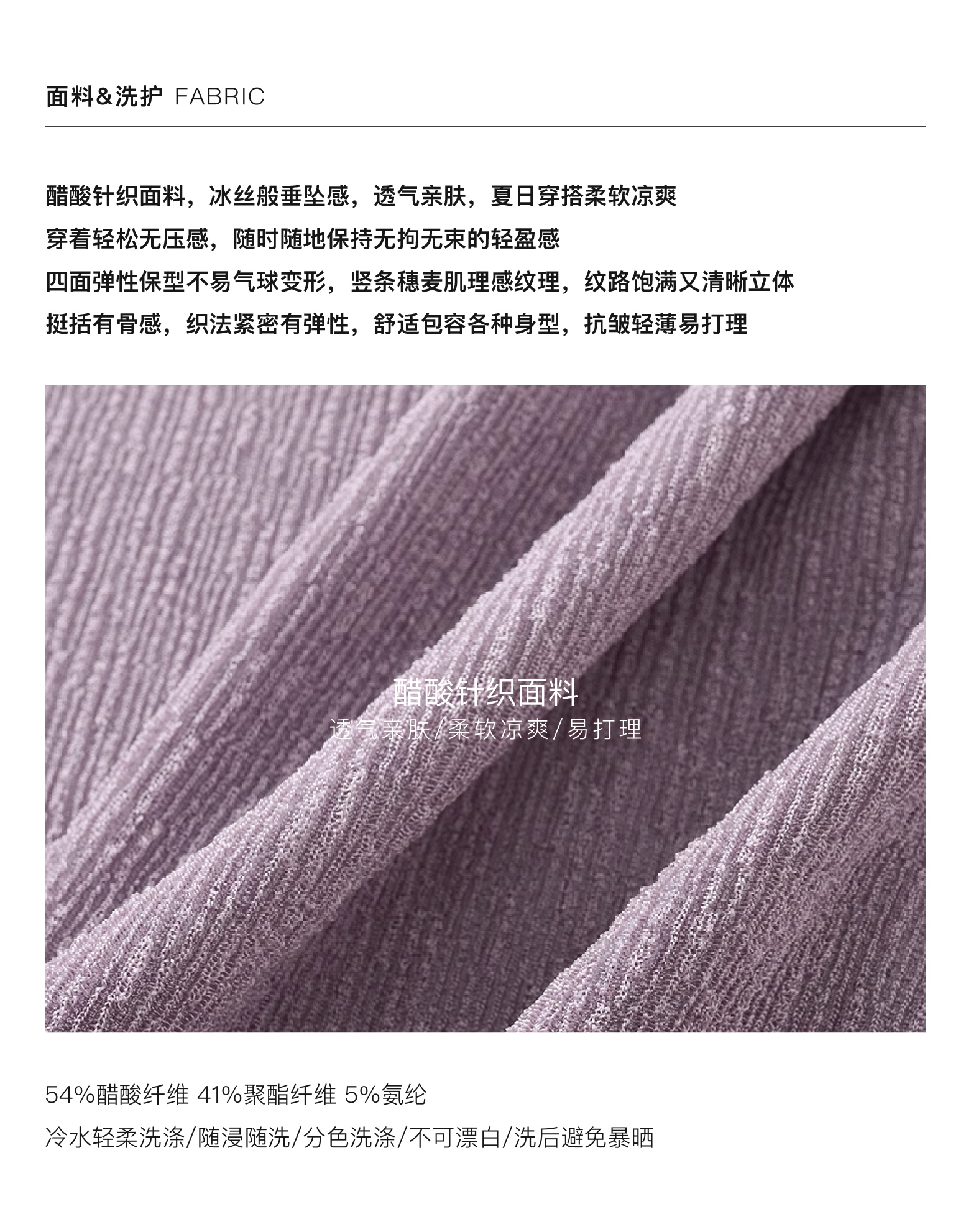 材質成分 醋酯纖維(醋纖)54% 聚對苯二甲酸乙二酯(滌綸)41% 聚氨酯彈性纖維(氨綸)5%
