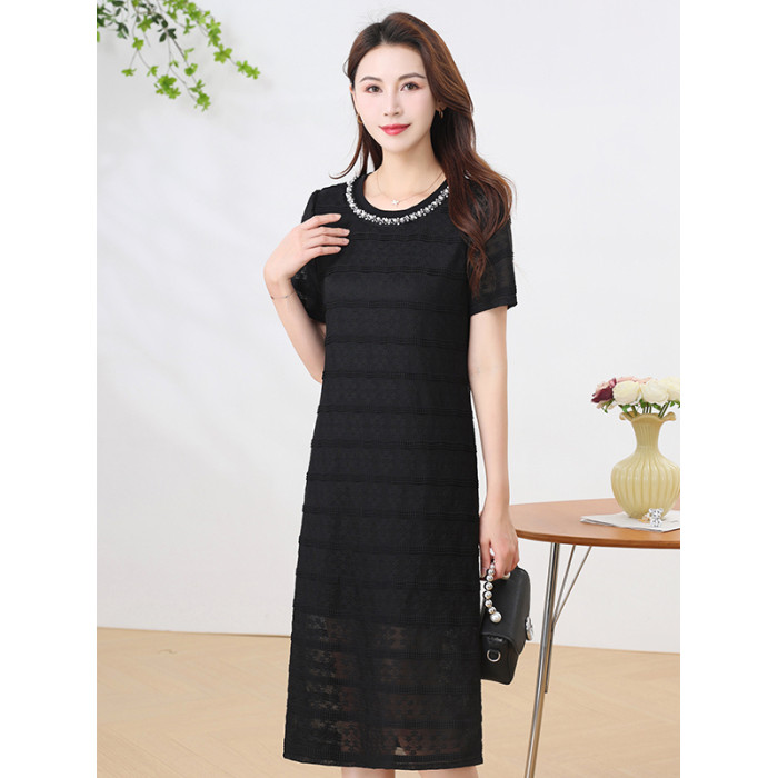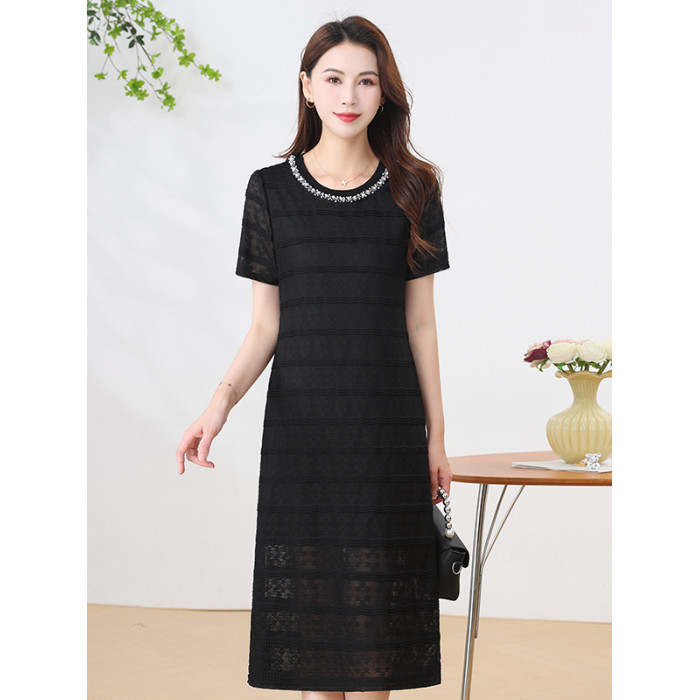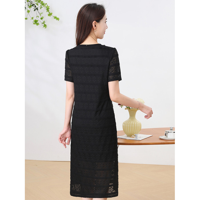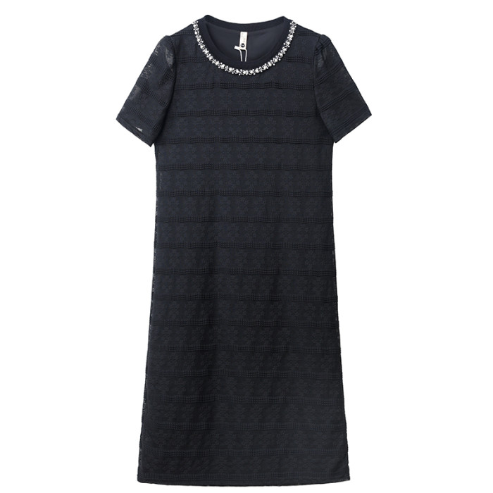 短袖蕾絲胖mm連衣裙女2025夏季新款時尚休閒氣質顯瘦直筒小黑裙子