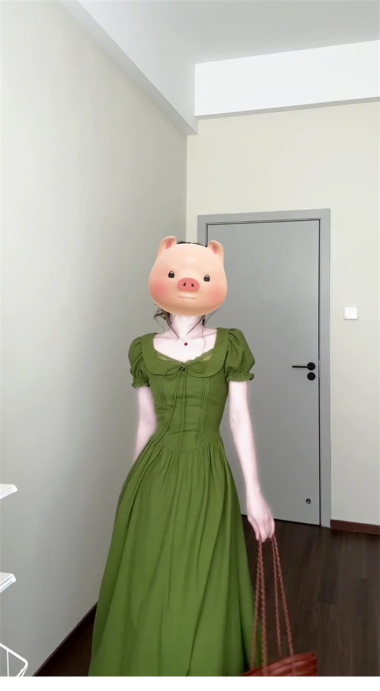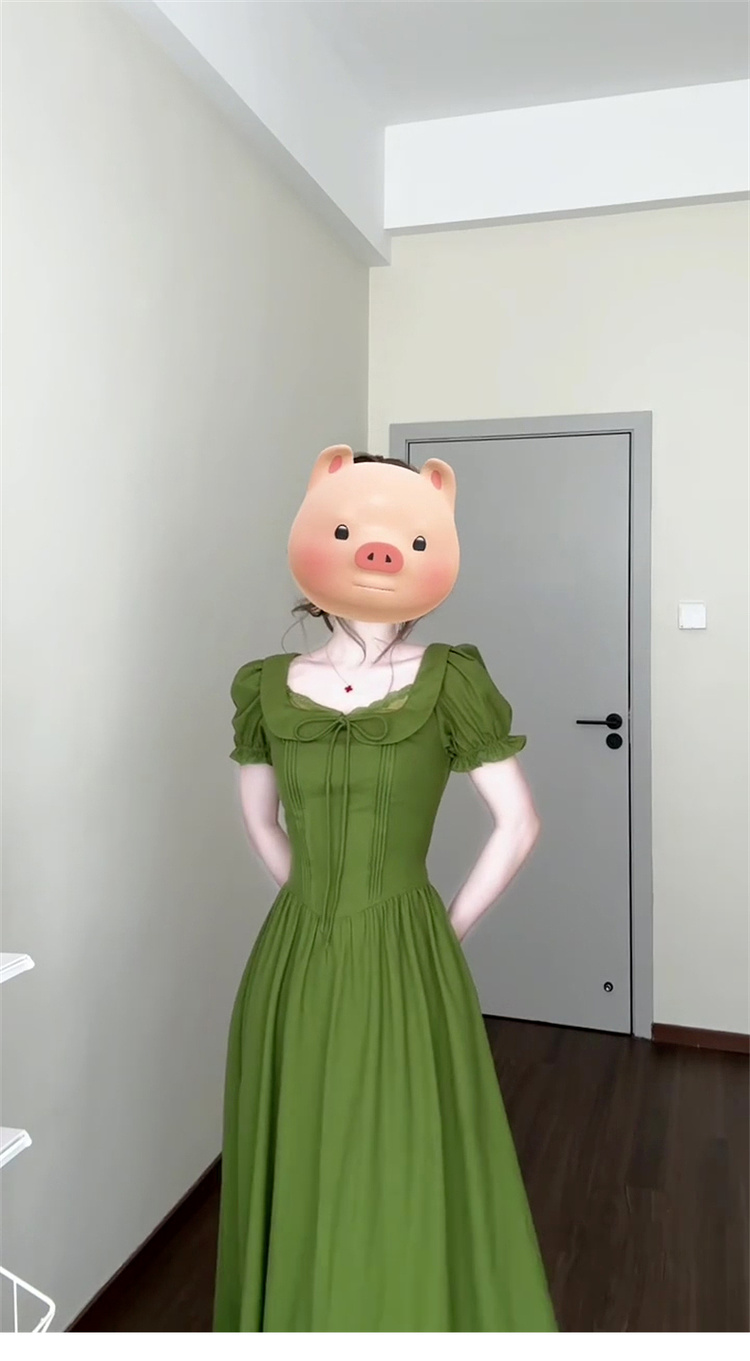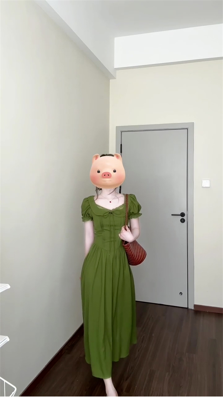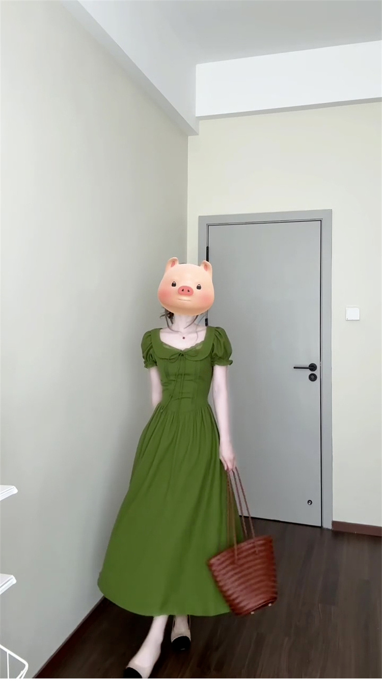 法式復古綠色收腰連衣裙子女裝夏季2025新款今年流行爆款氣質長裙