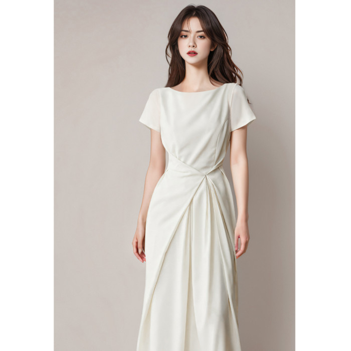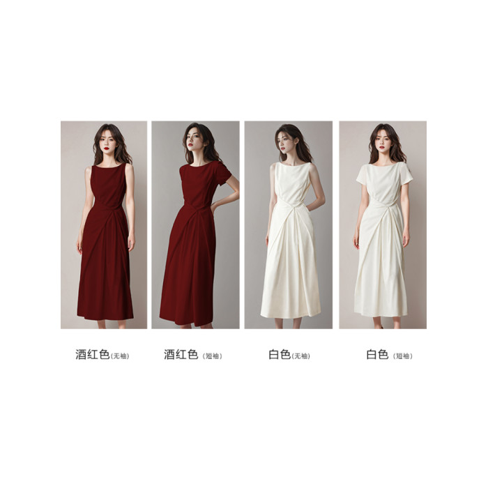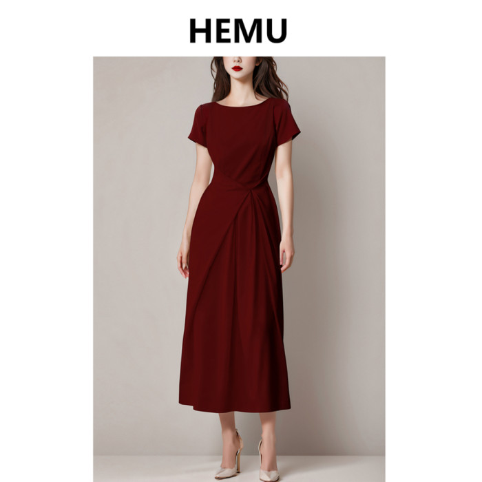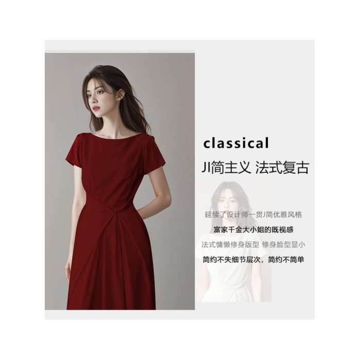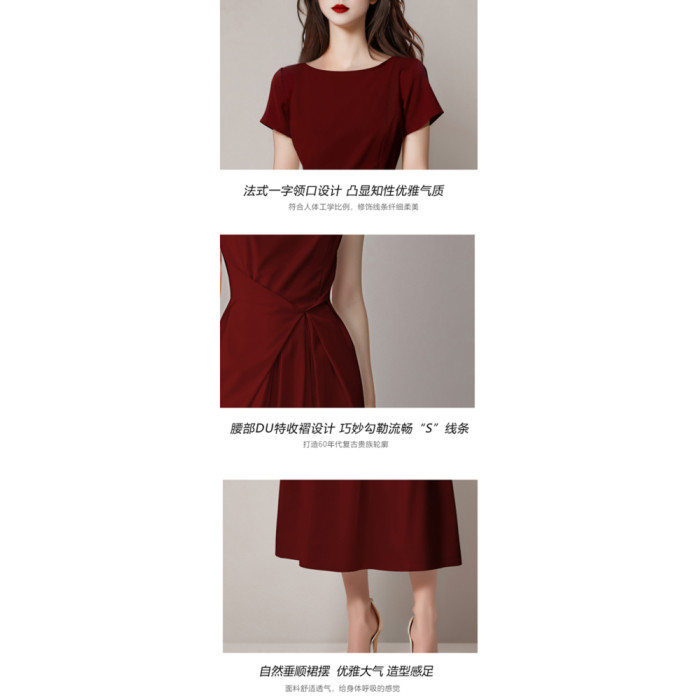 紅色連衣裙女法式小衆設計短袖訂婚宴會禮服收腰長裙日常可穿春夏