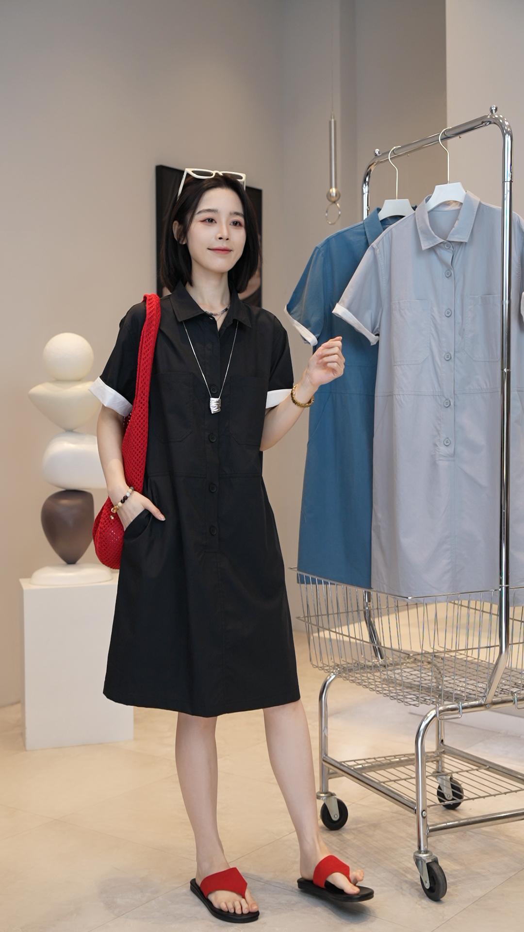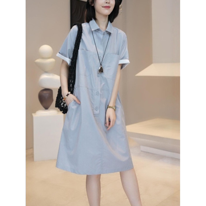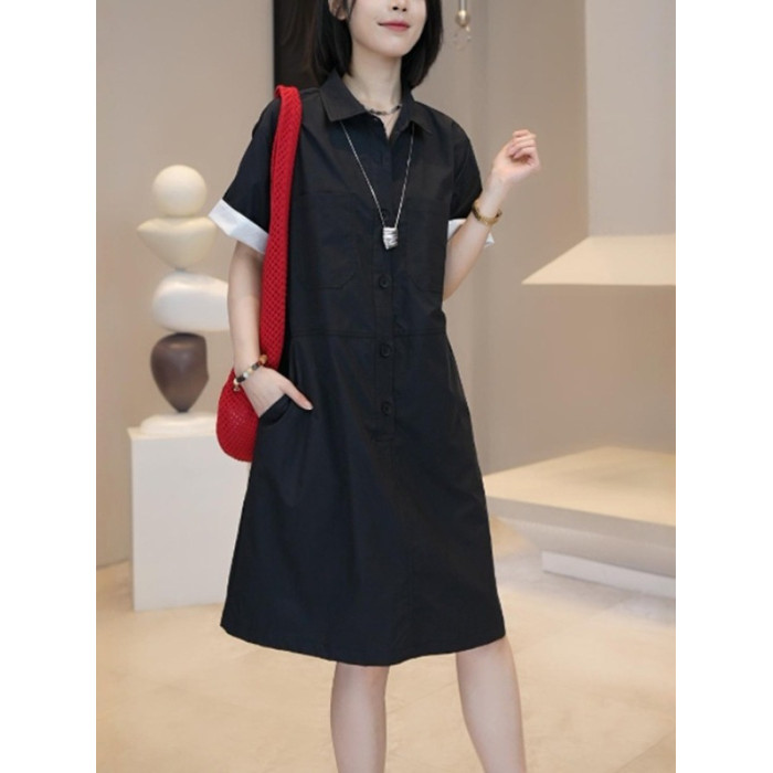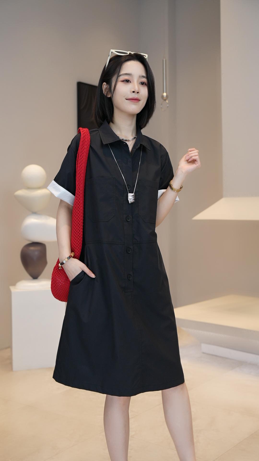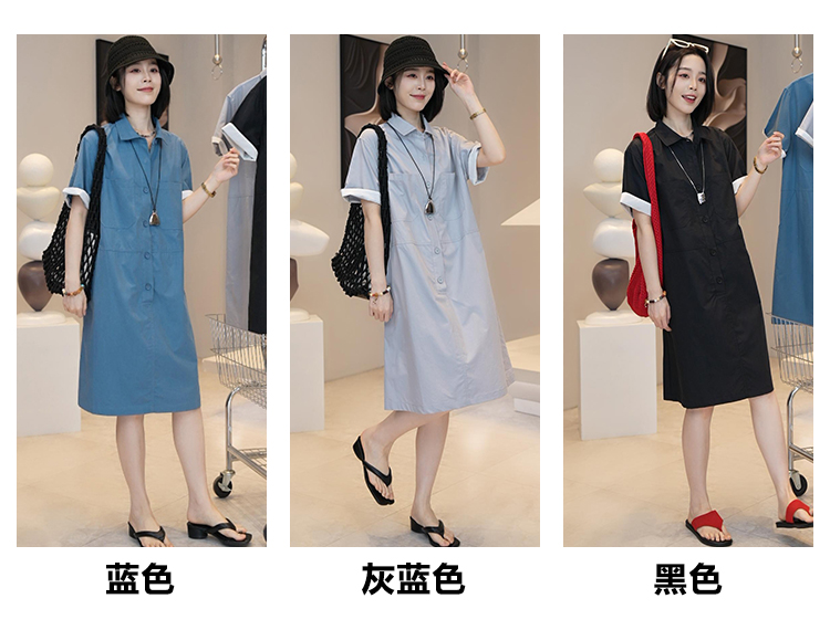 法式polo領短袖襯衫連衣裙女夏季寬松休閒連身裙小個子工裝直筒裙