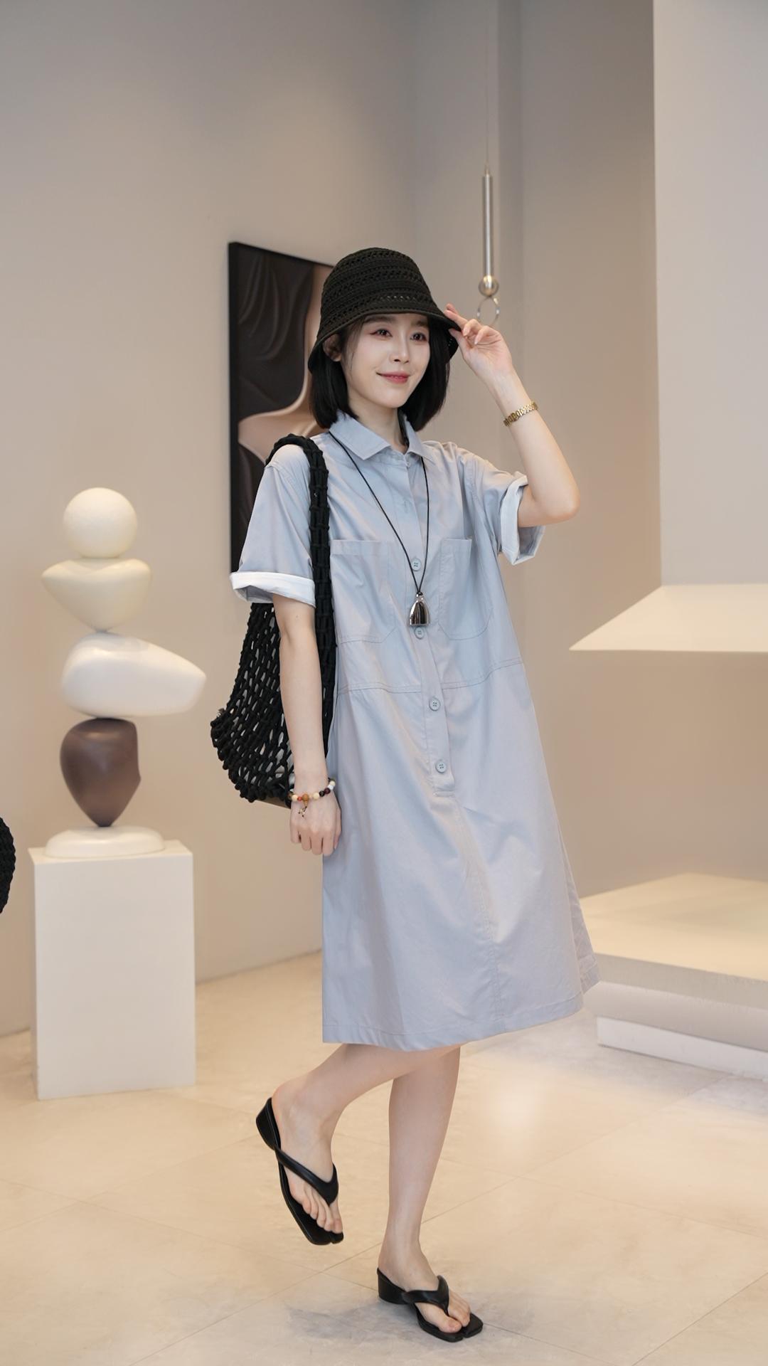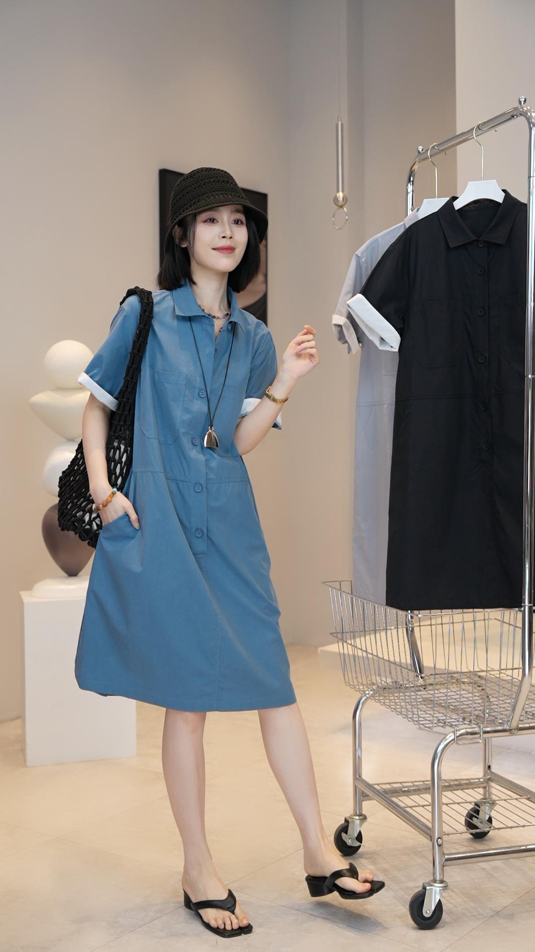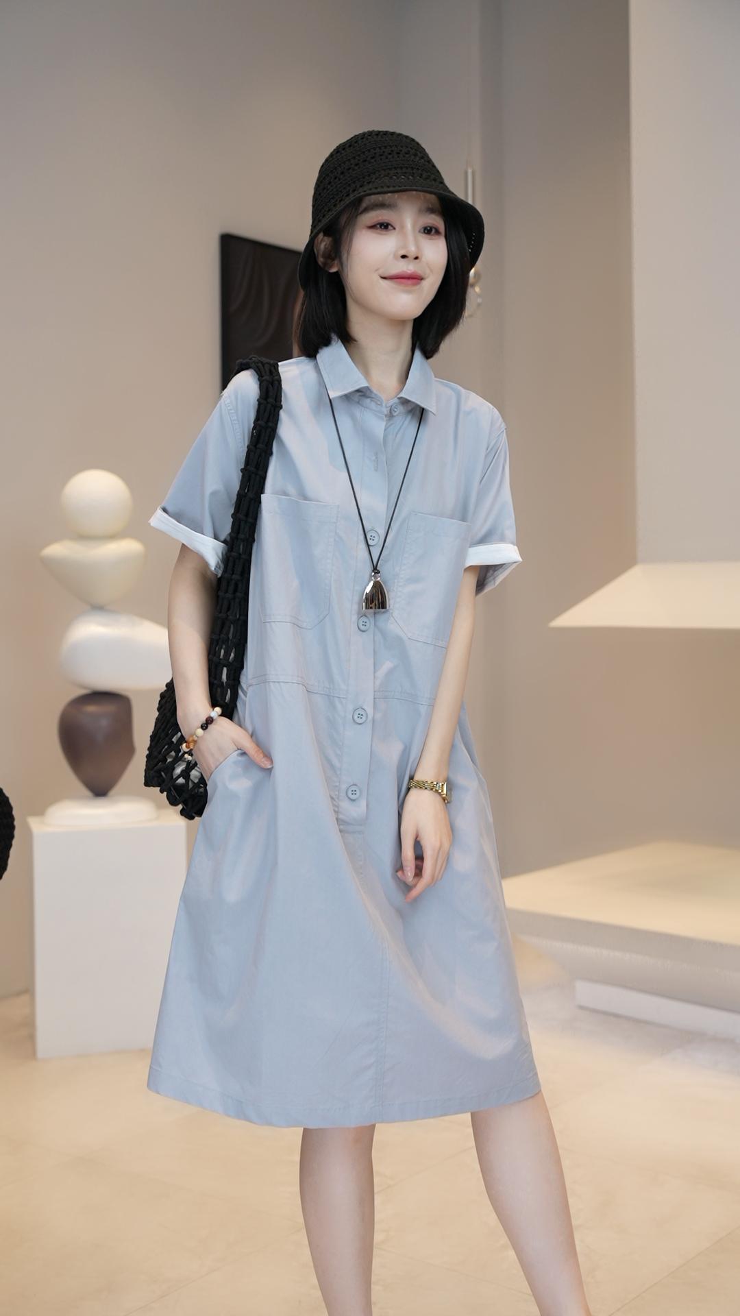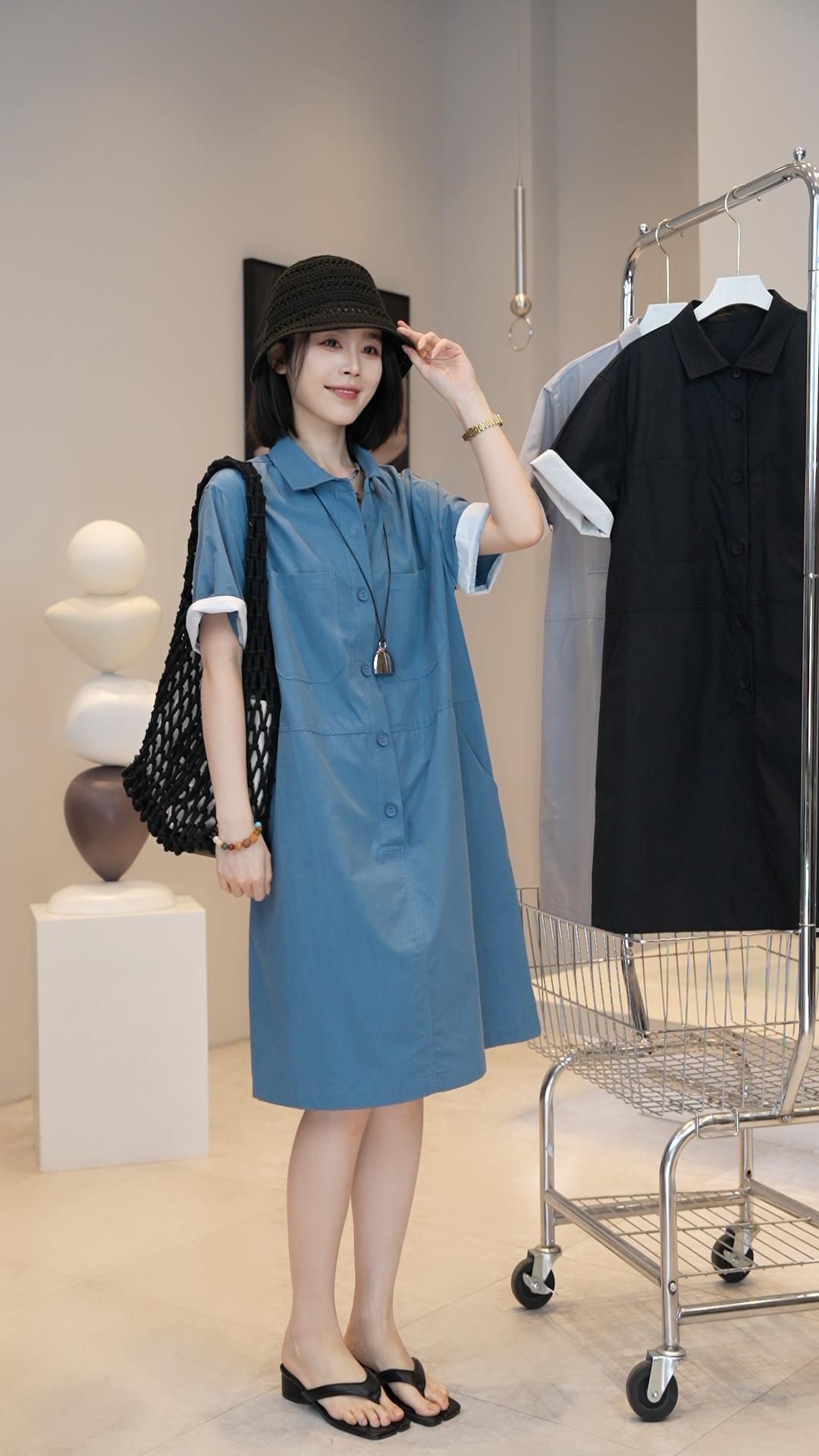 法式polo領短袖襯衫連衣裙女夏季寬松休閒連身裙小個子工裝直筒裙