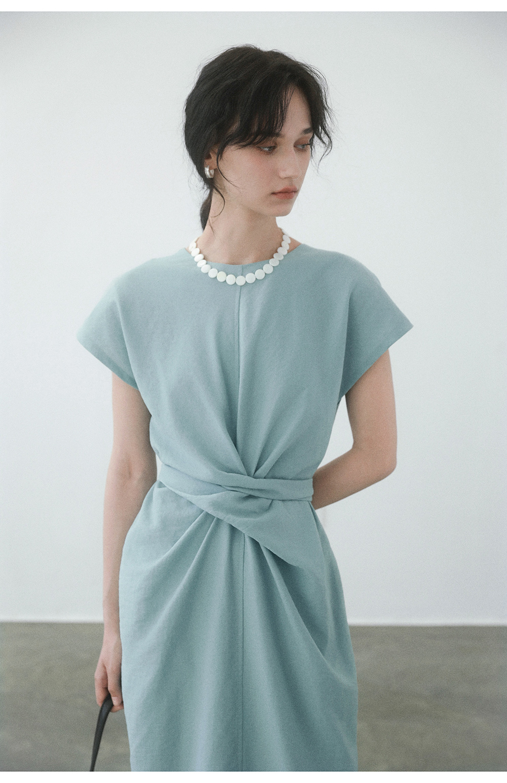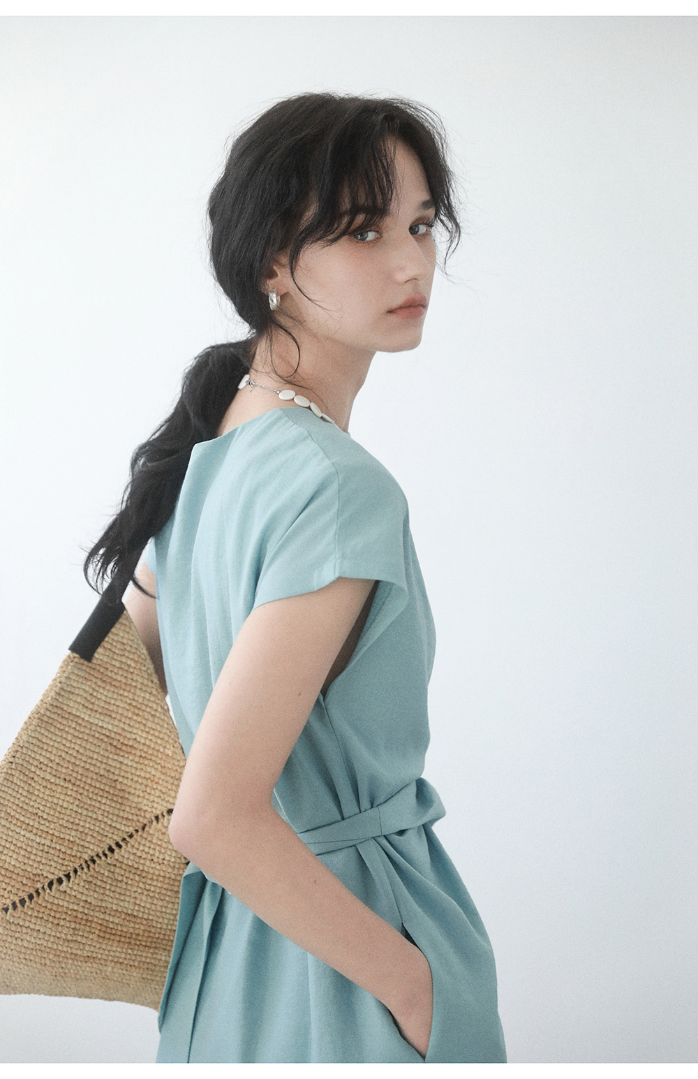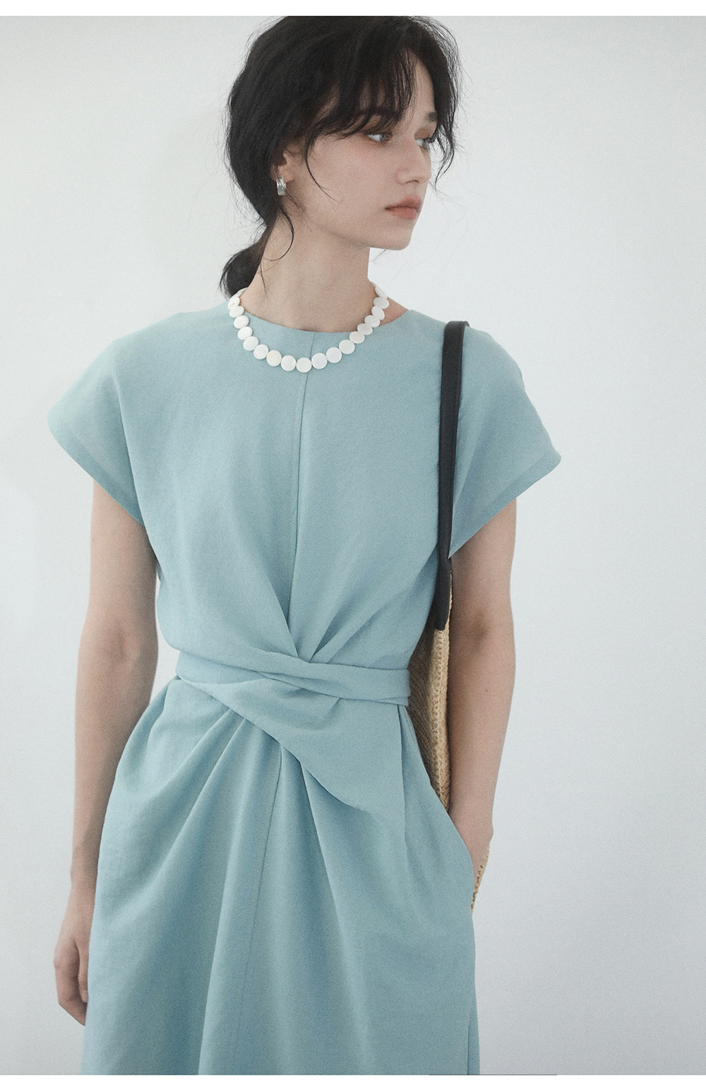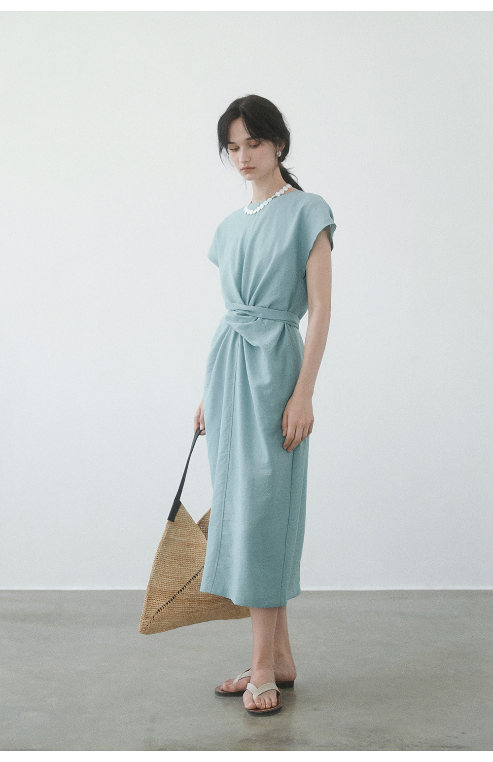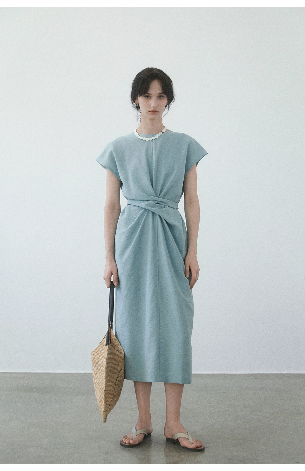 InPoet英珀 2025夏【亞麻】棉風信藍扭結綁帶連衣裙 簡約優雅淡人