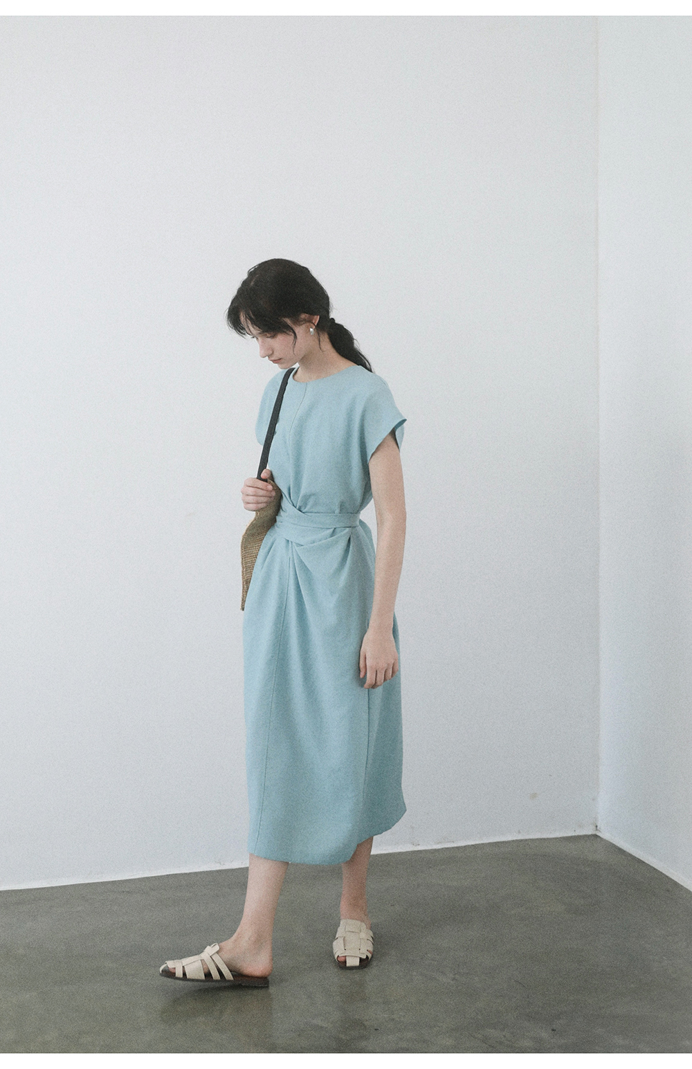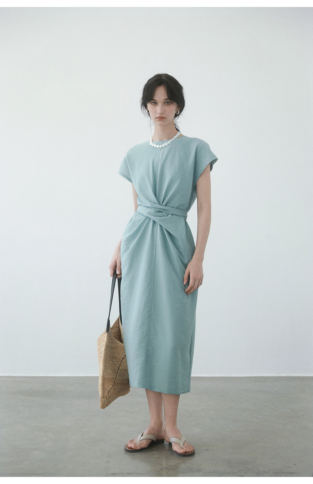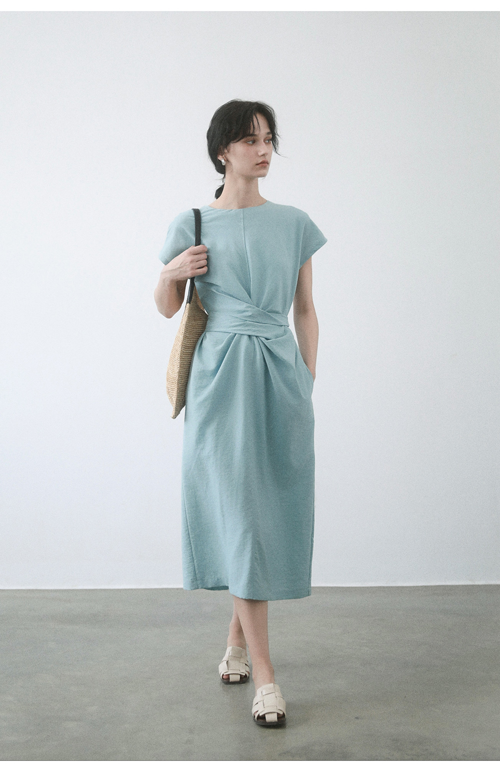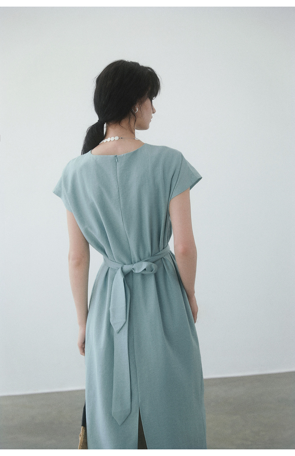 InPoet英珀 2025夏【亞麻】棉風信藍扭結綁帶連衣裙 簡約優雅淡人