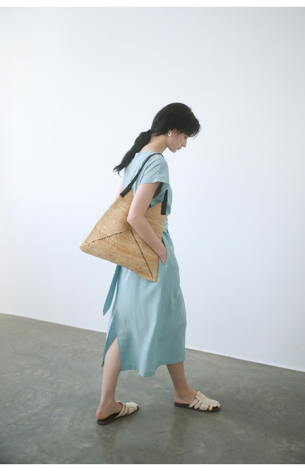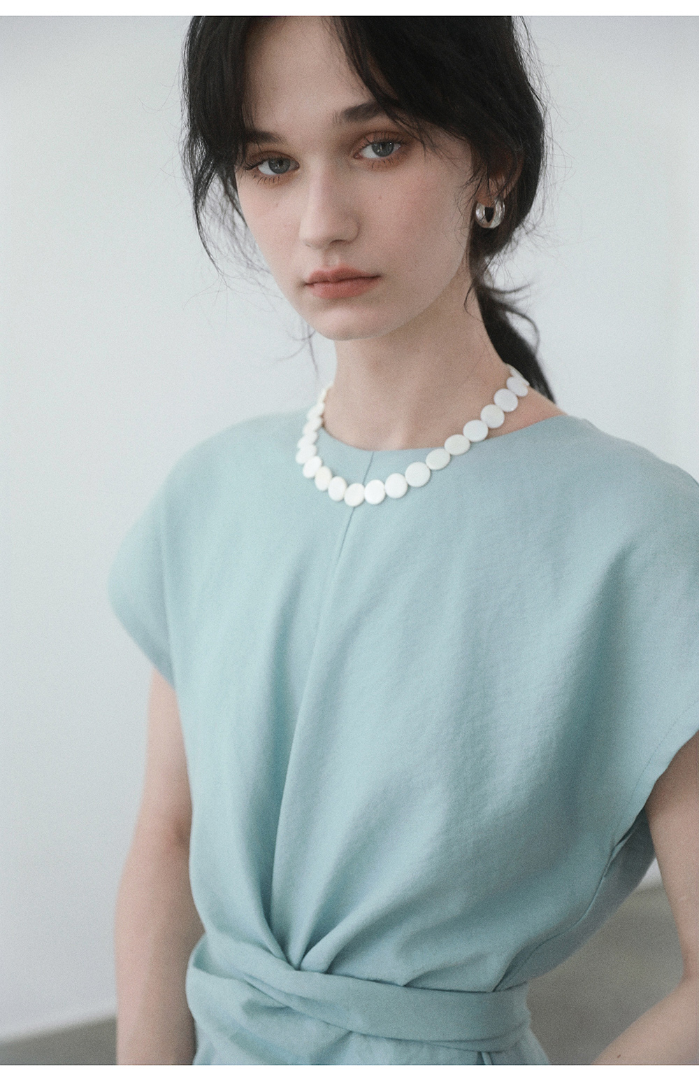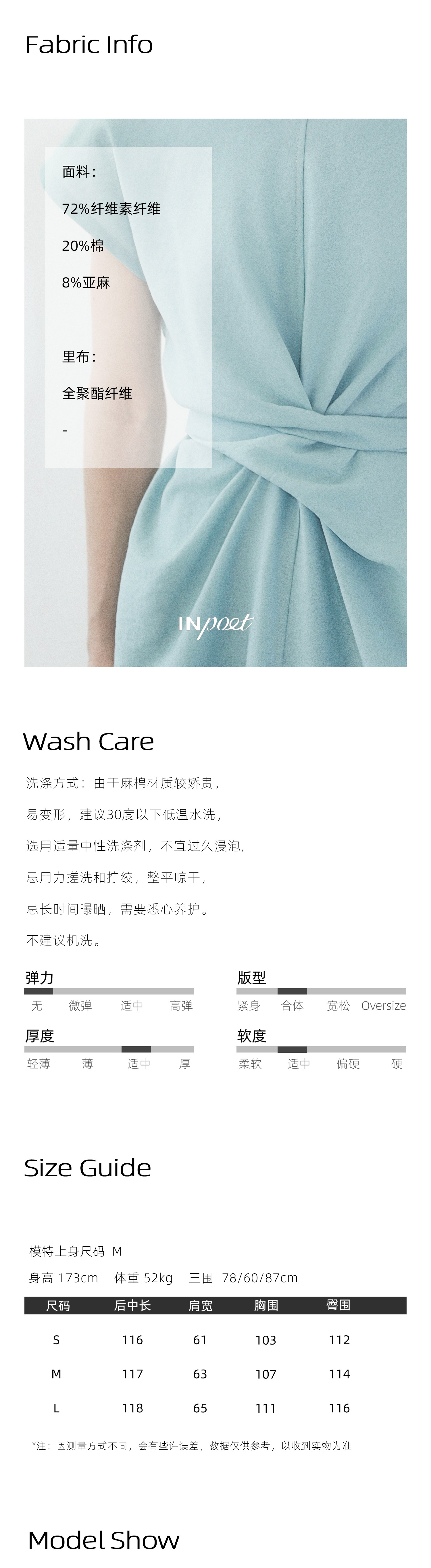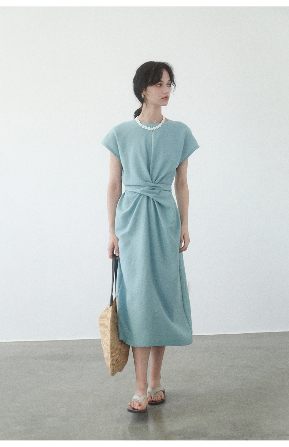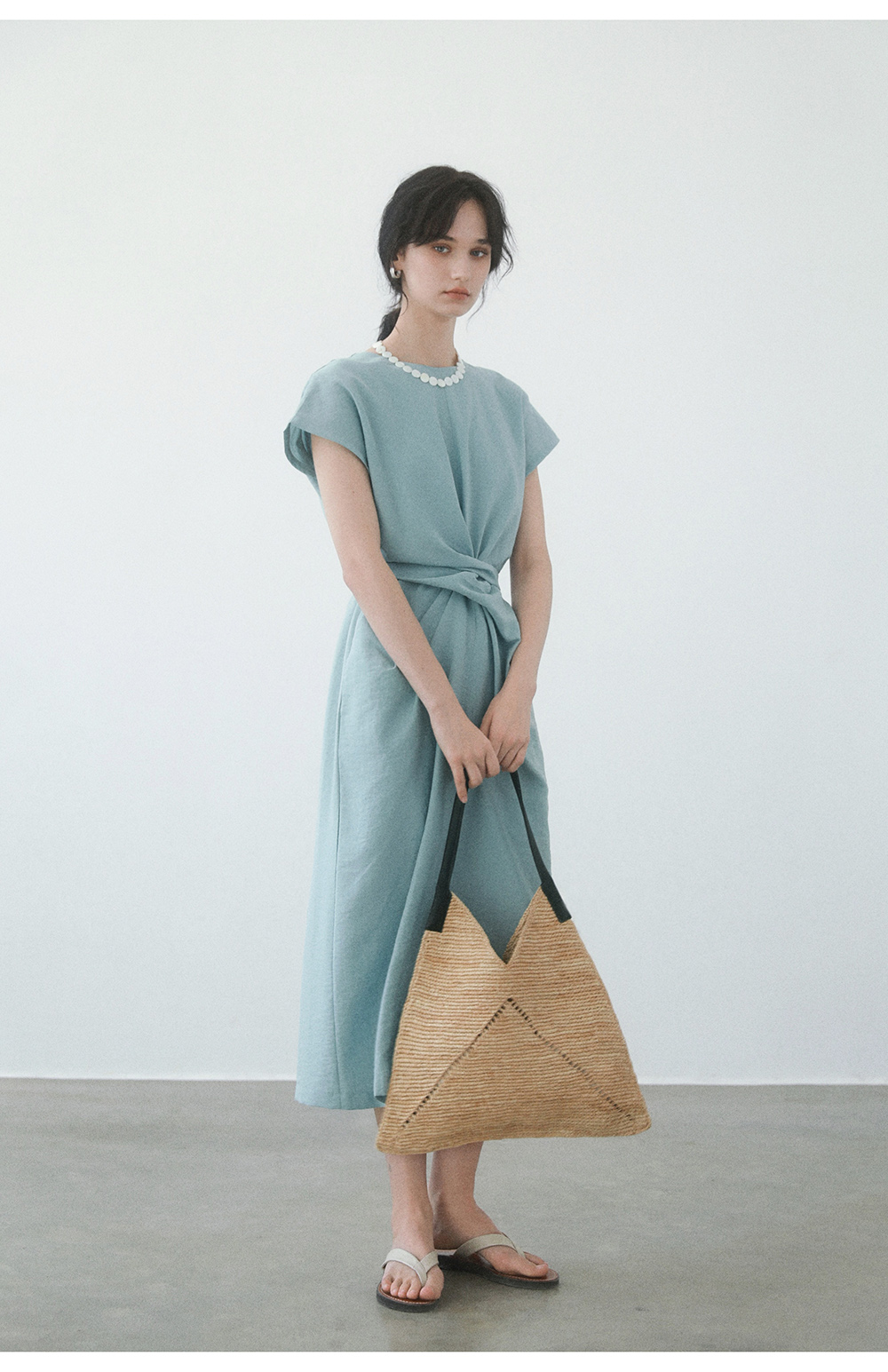 InPoet英珀 2025夏【亞麻】棉風信藍扭結綁帶連衣裙 簡約優雅淡人