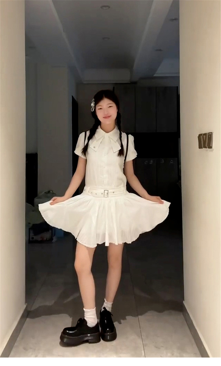 小個子夏日絕美白色短袖襯衫連衣裙子女裝夏季2025新款巨好看短裙