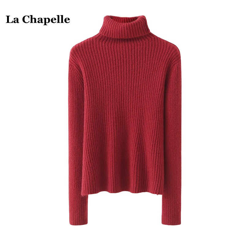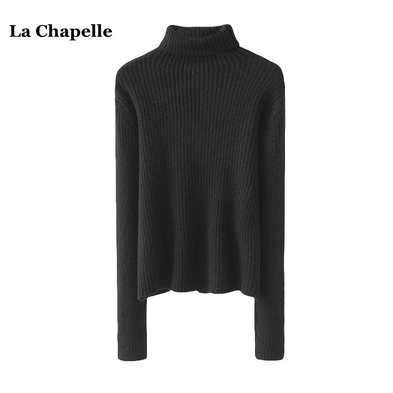 拉夏貝爾/La Chapelle冬季新款高領針織打底衫女修身顯瘦內搭毛衣